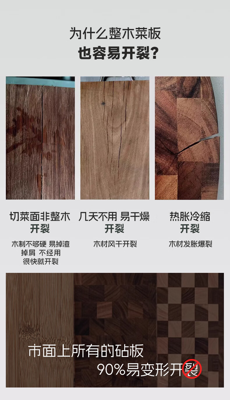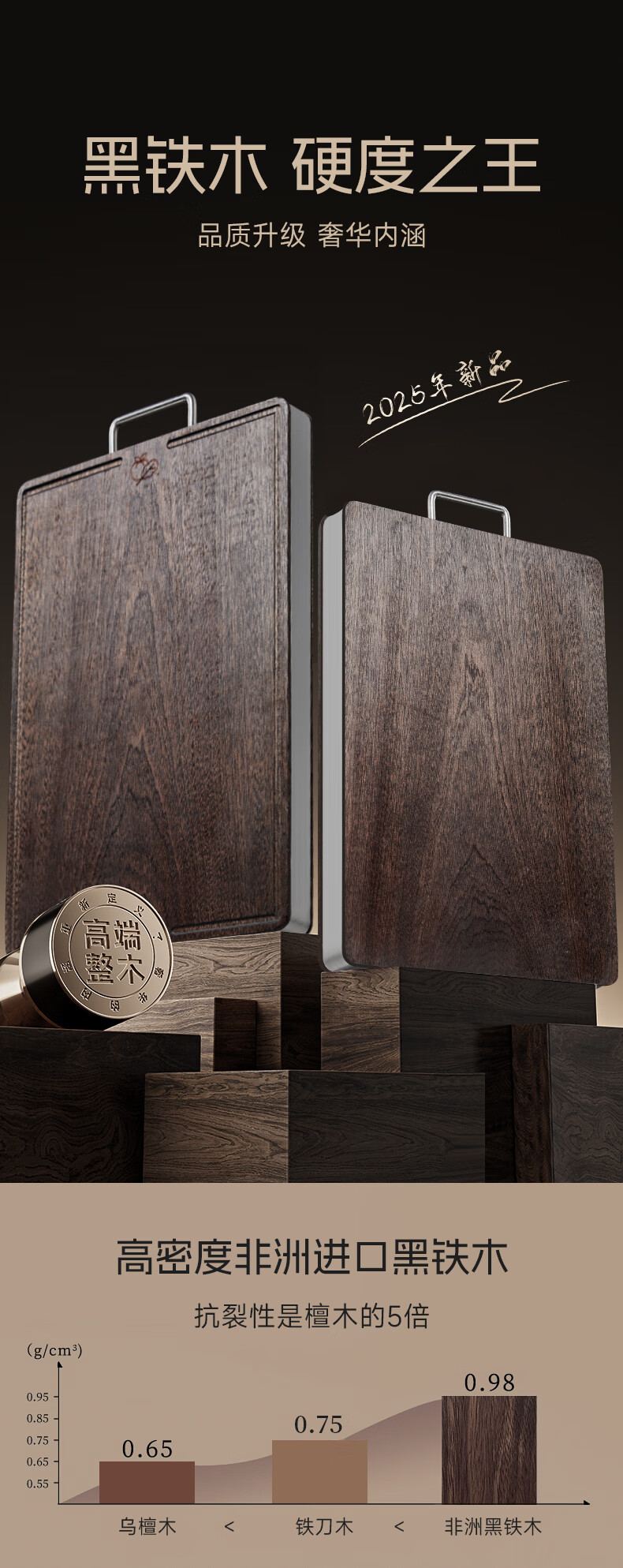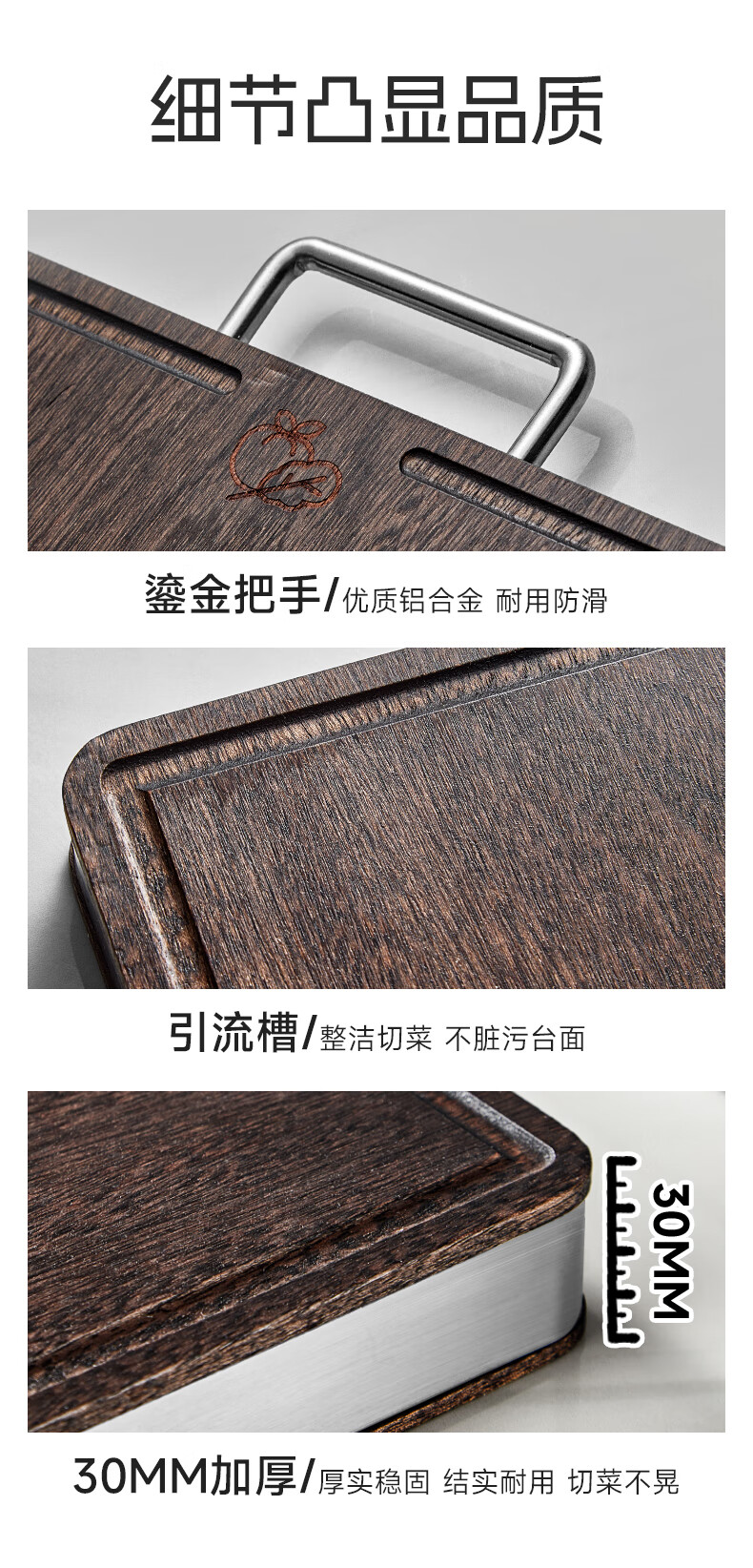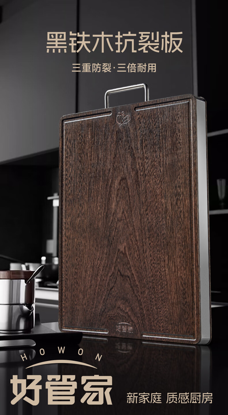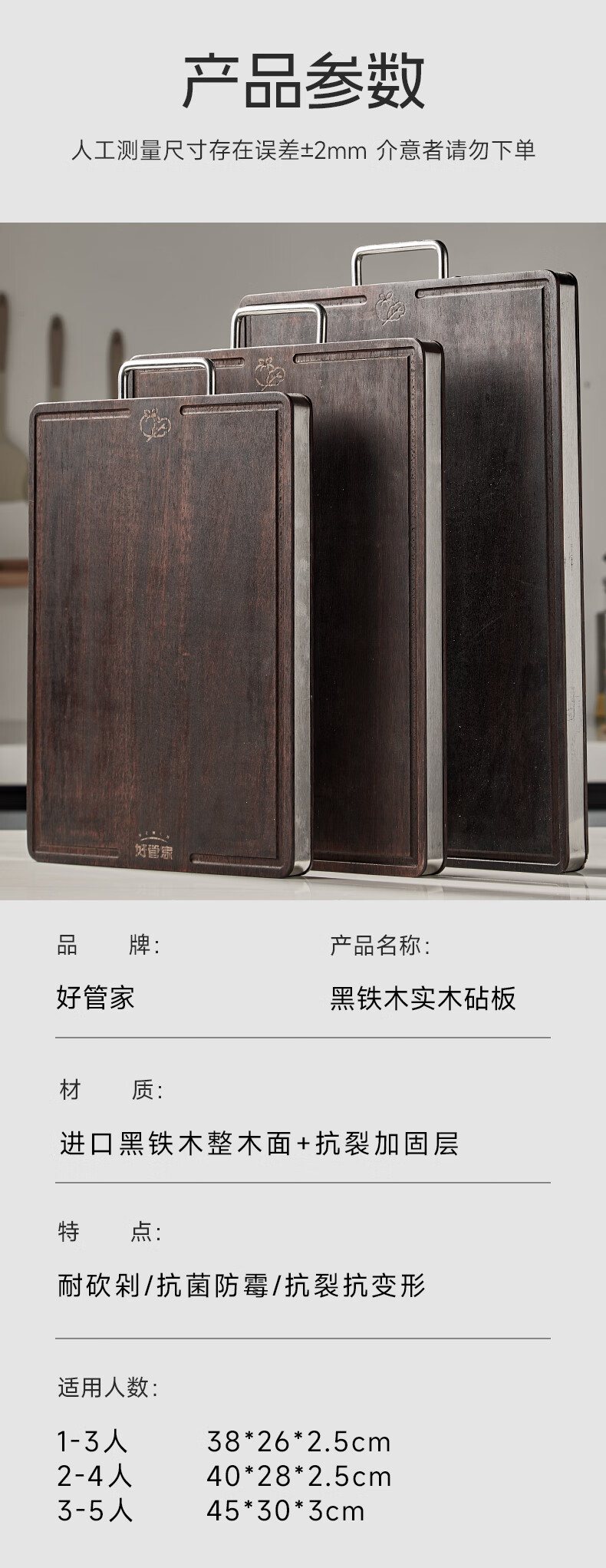好管家菜板铁木砧板家用实木案板防霉切菜板抗菌面板45*32*2.6cm