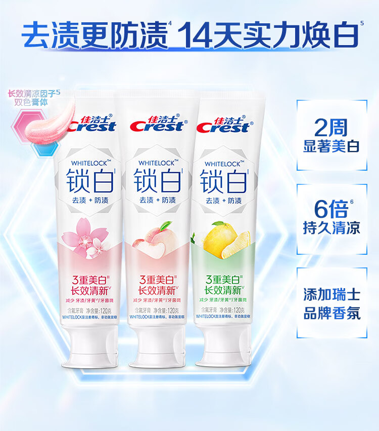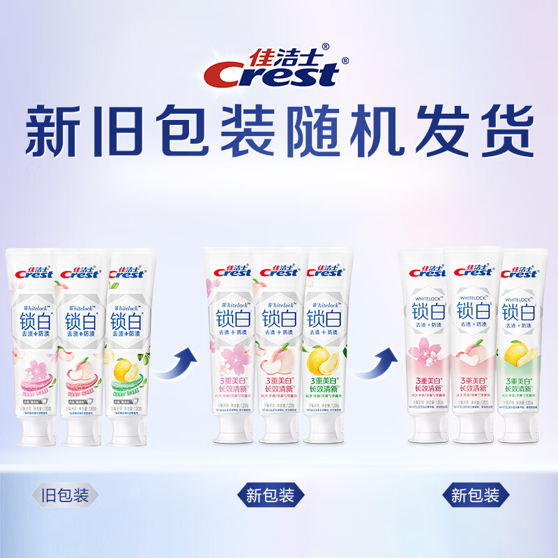 佳洁士锁白牙膏清新去渍美白3支共360g丁禹兮同款京东自营新老包装混发