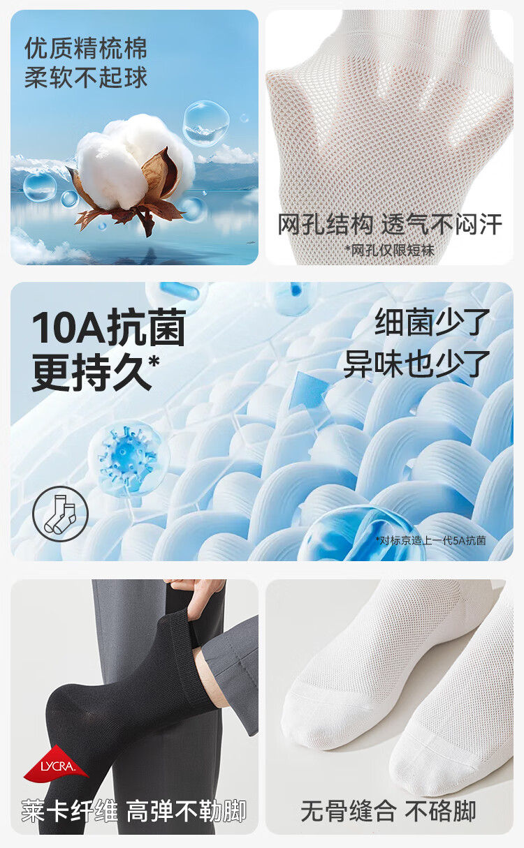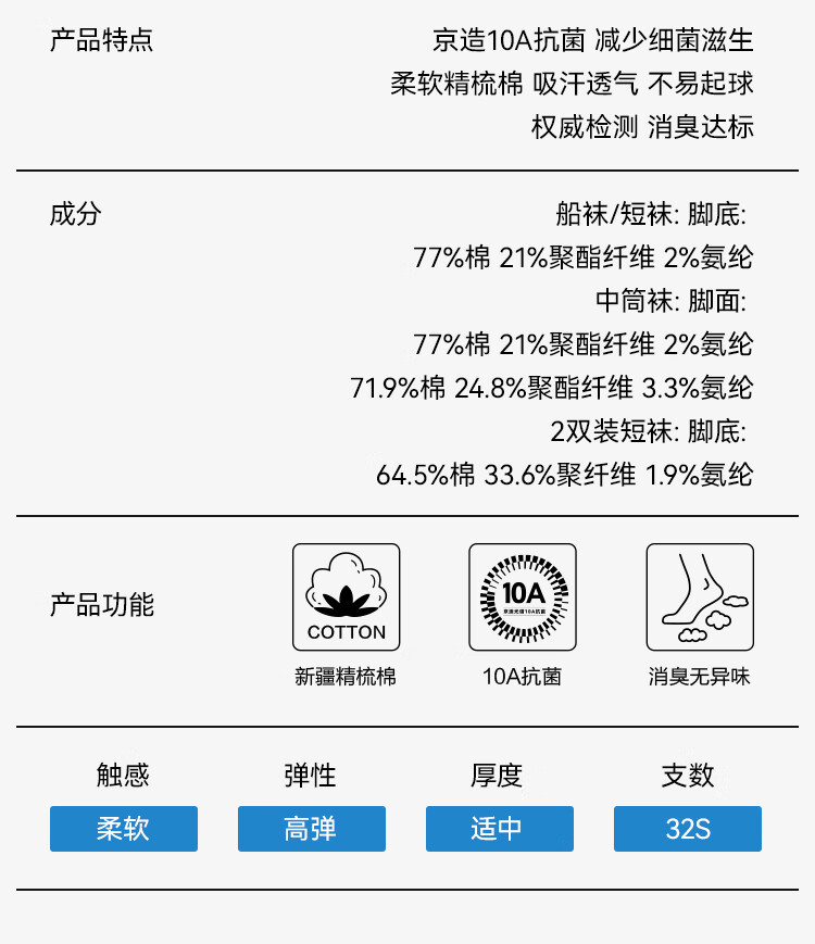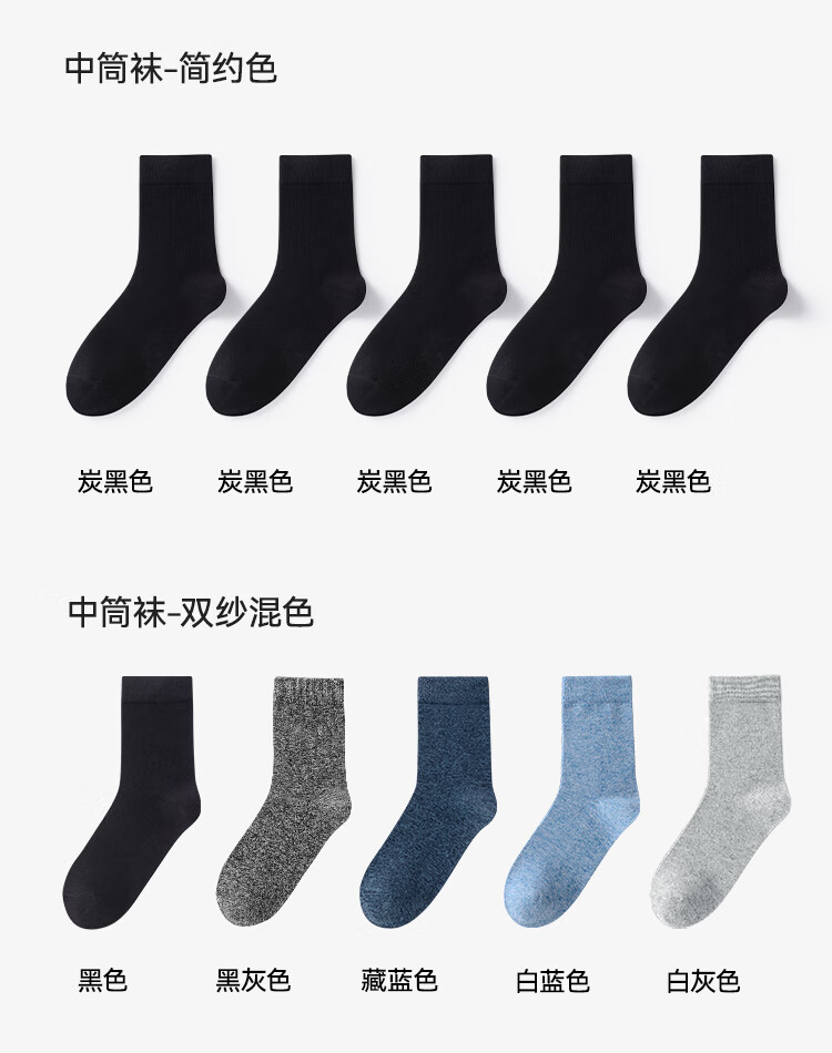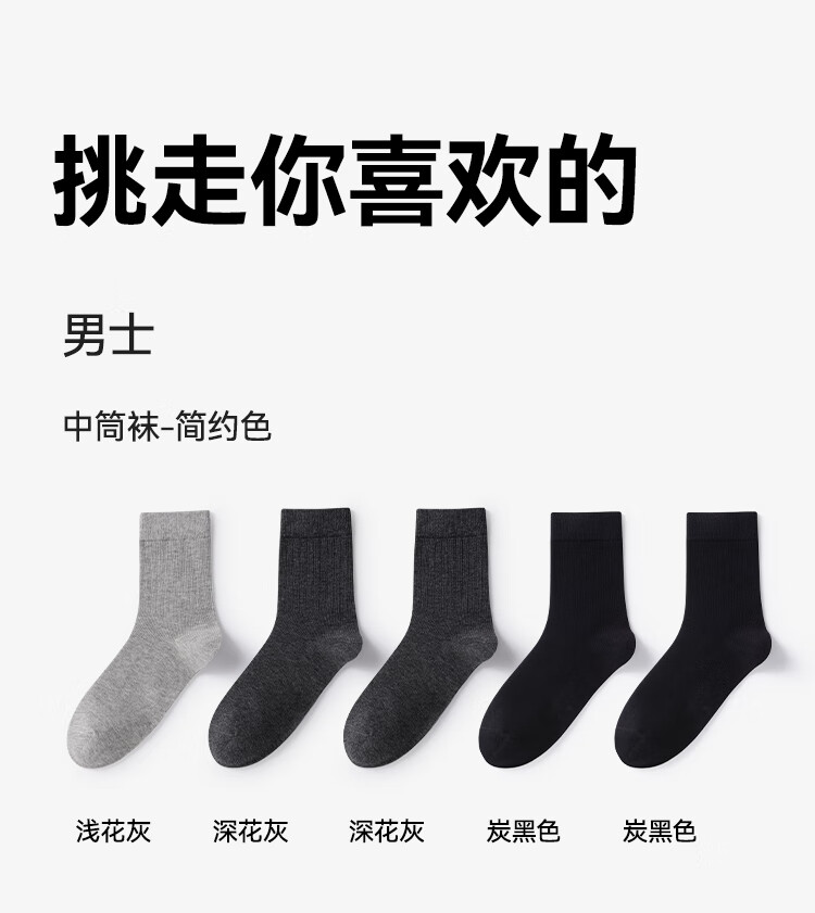 京东京造【7A抑菌】新疆棉四季春吸汗男休闲袜中筒袜透气