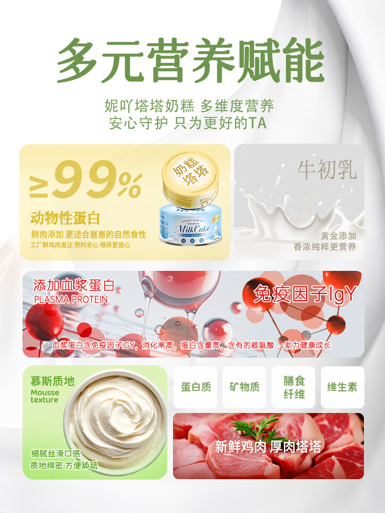 妮吖全价主食幼猫奶糕罐拌食酱全阶段成猫零食绵绵维他犬奶糕塔塔 奶糕塔塔鸽肉罐(猫用) 85g*六罐