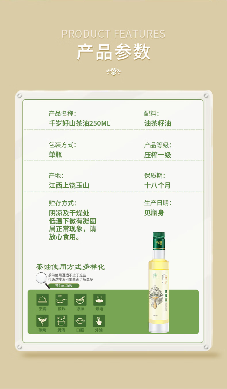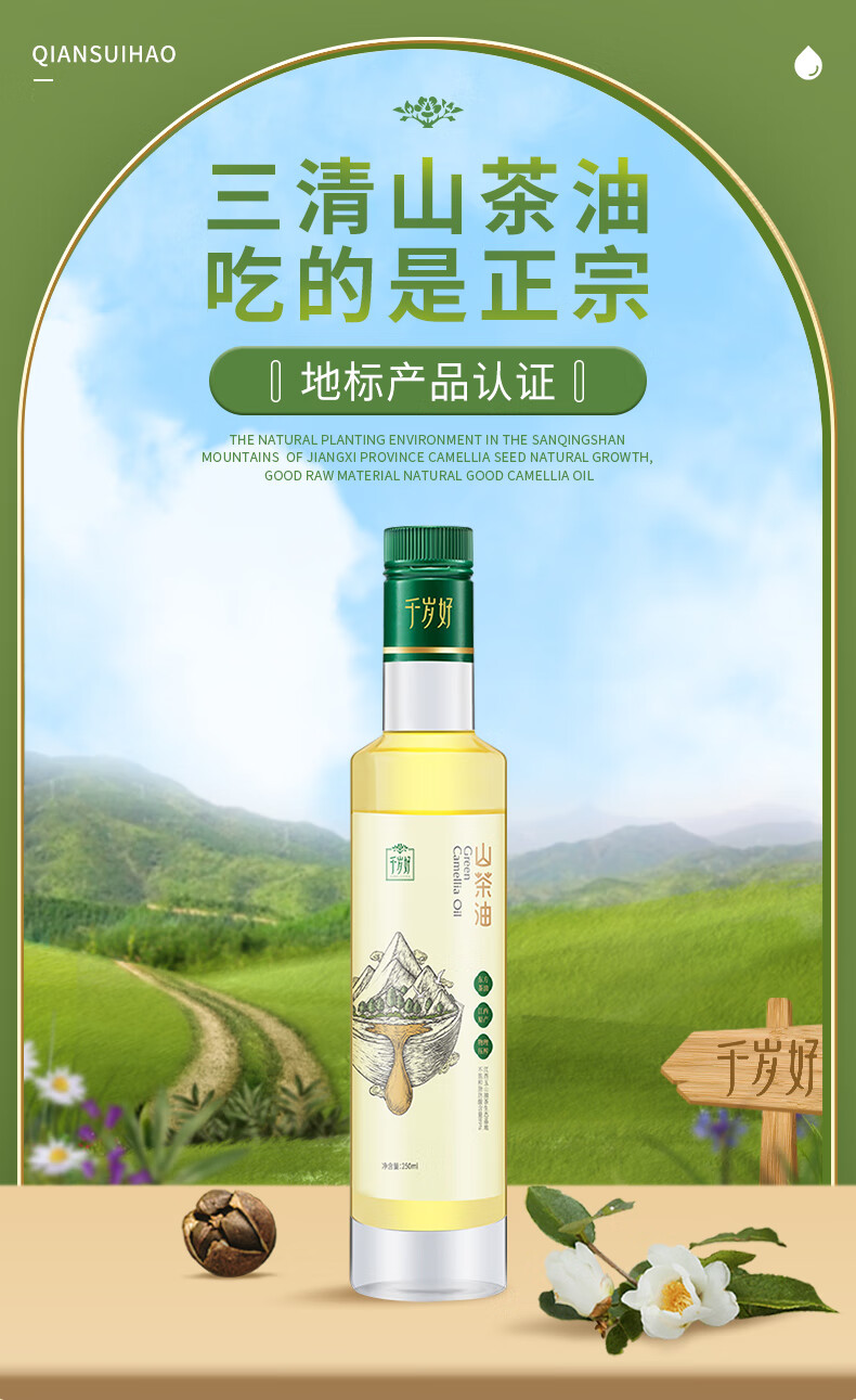 千岁好山茶油250ml 油茶籽油 压榨一级食用油(农产品地理标志产品)