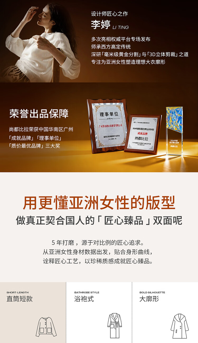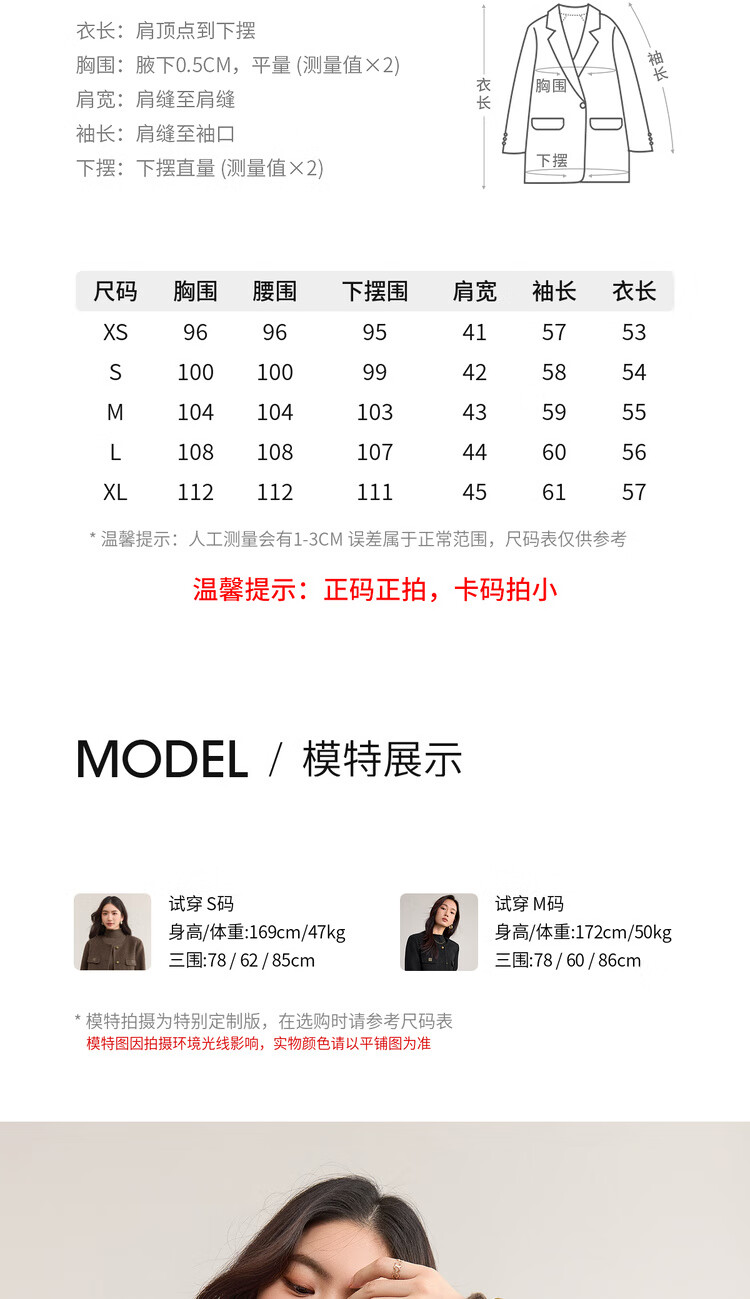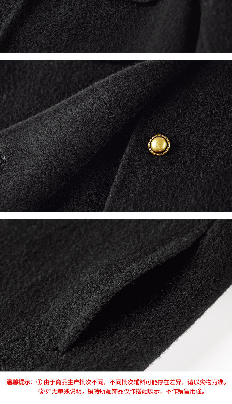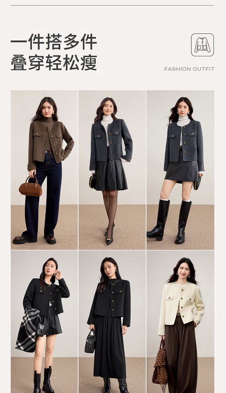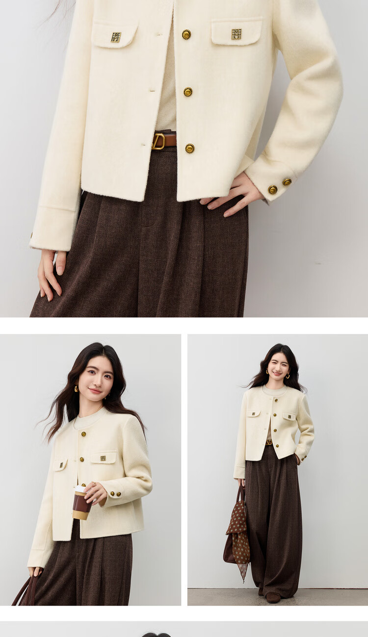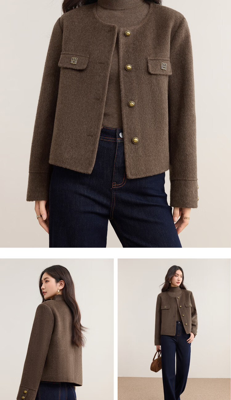 尚都比拉纯羊毛英伦风毛呢大衣女冬季保暖短款厚双面呢外套圆领长袖上衣