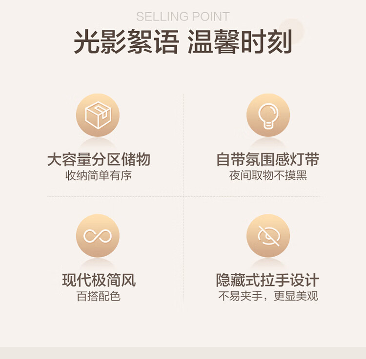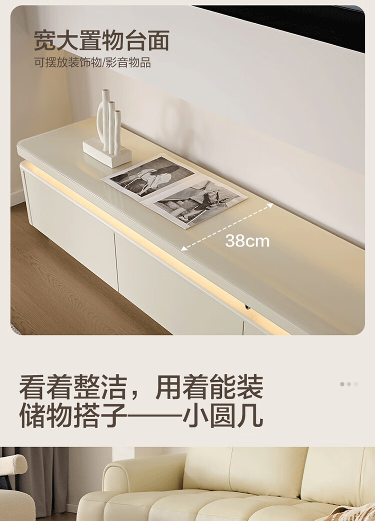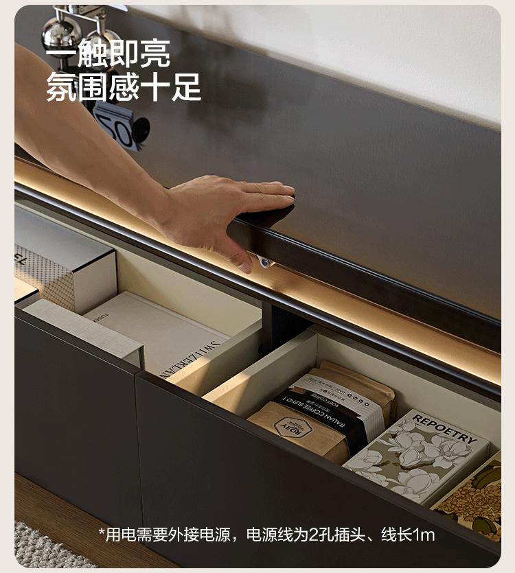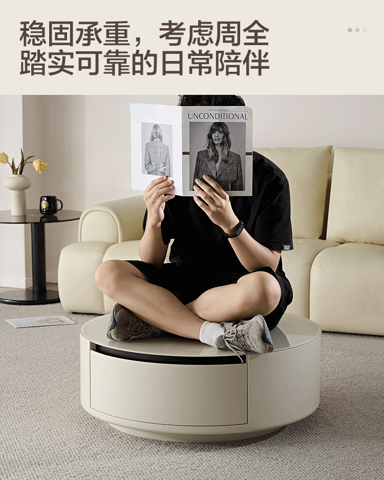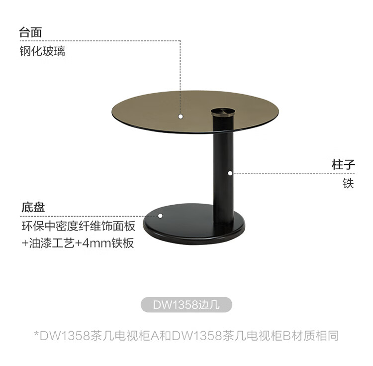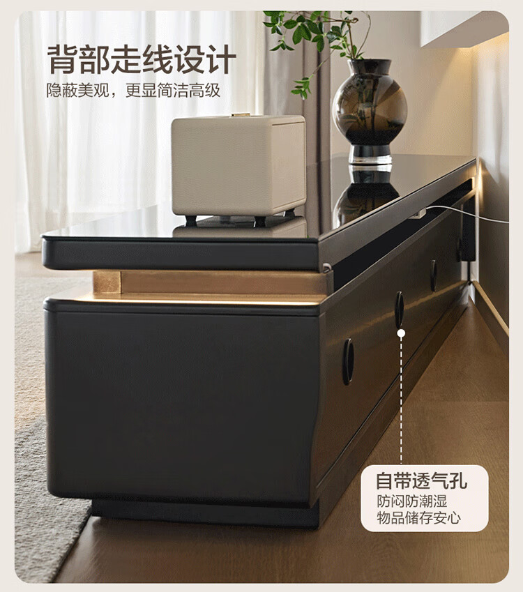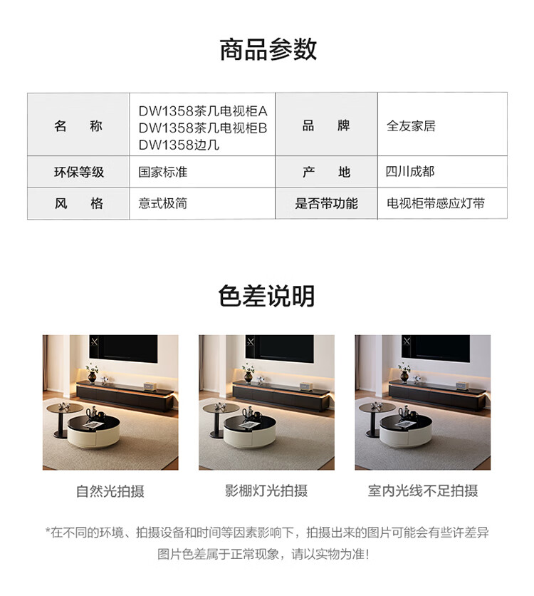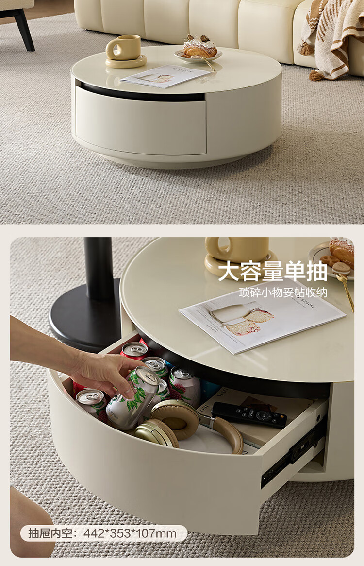 全友家居意式极简茶几客厅收纳储物柜子矮柜茶几电视柜组合套装家具 白色台面茶几+黑色边几 玻璃台面+氛围灯+隐藏式拉手