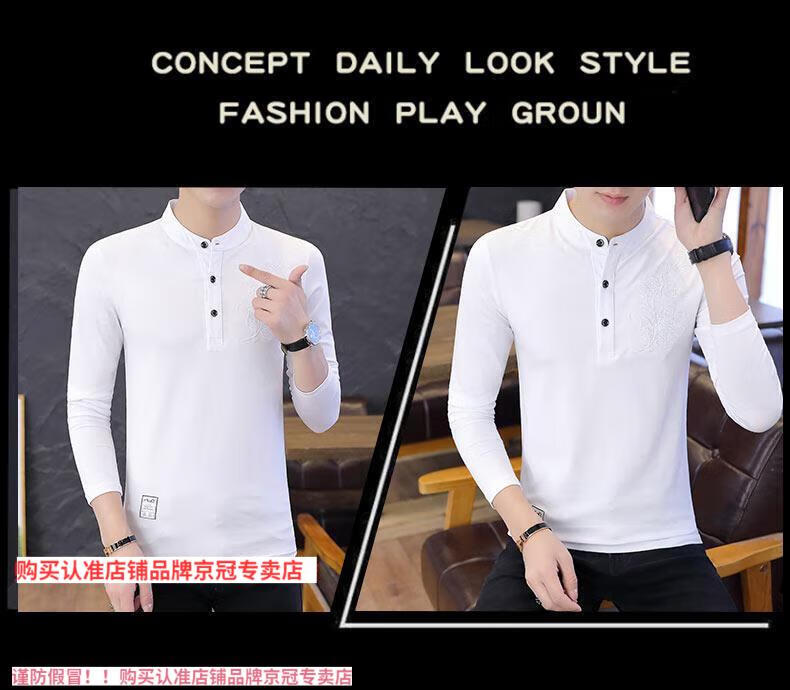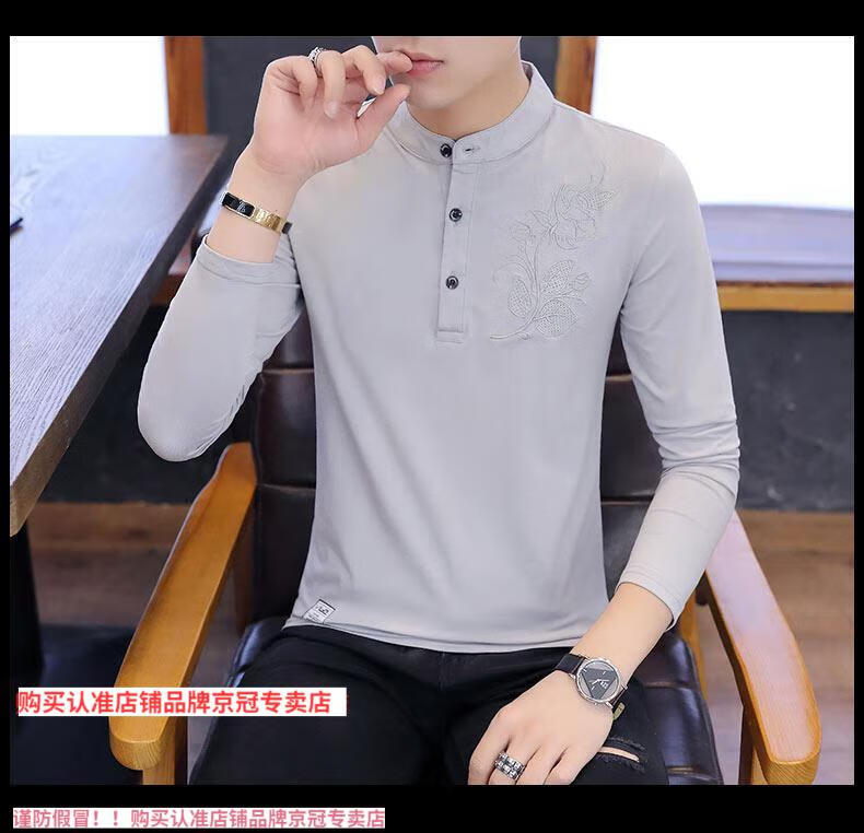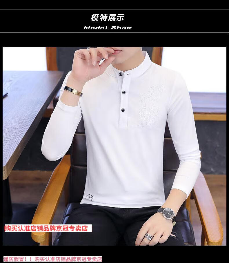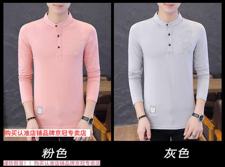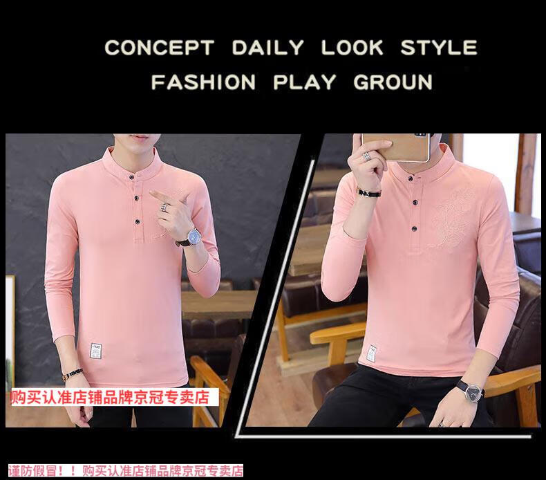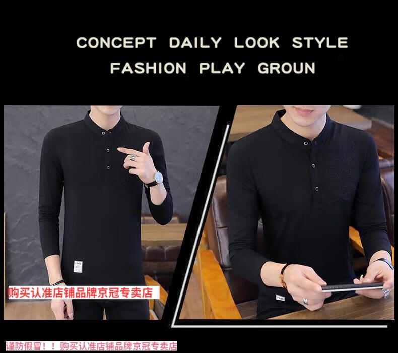 啄木鸟(TUCANO)男士长袖t恤立领polo韩版秋衣纯棉上衣服春秋秋打底衫潮男装 97005卡其色 170/L