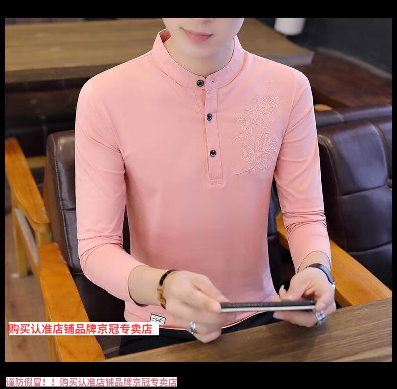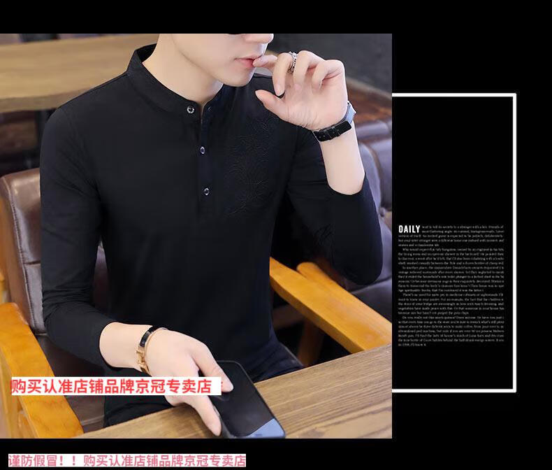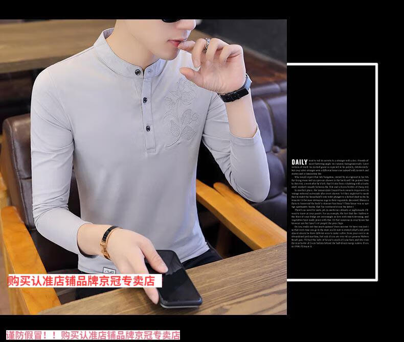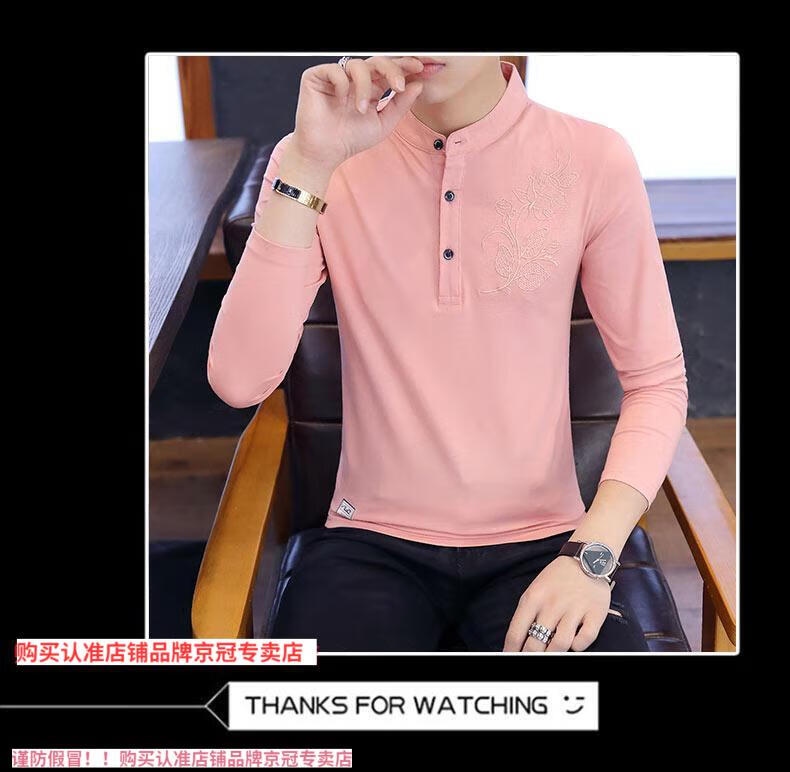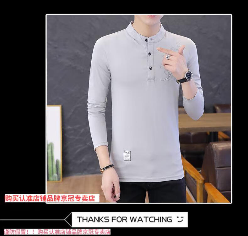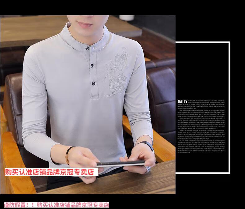 啄木鸟(TUCANO)男士长袖t恤立领polo韩版秋衣纯棉上衣服春秋秋打底衫潮男装 97005卡其色 170/L