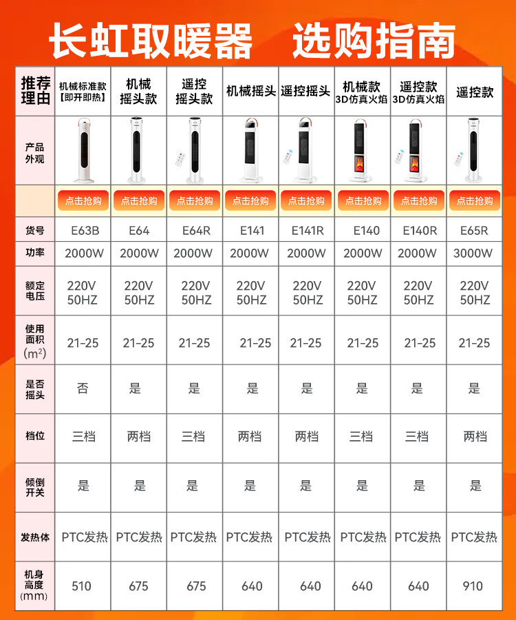 长虹(CHANGHONG)取暖器暖风机电暖气电暖器家用热风机小太阳塔式立式广角办公室卧室 遥控款3000W高度91厘米 1