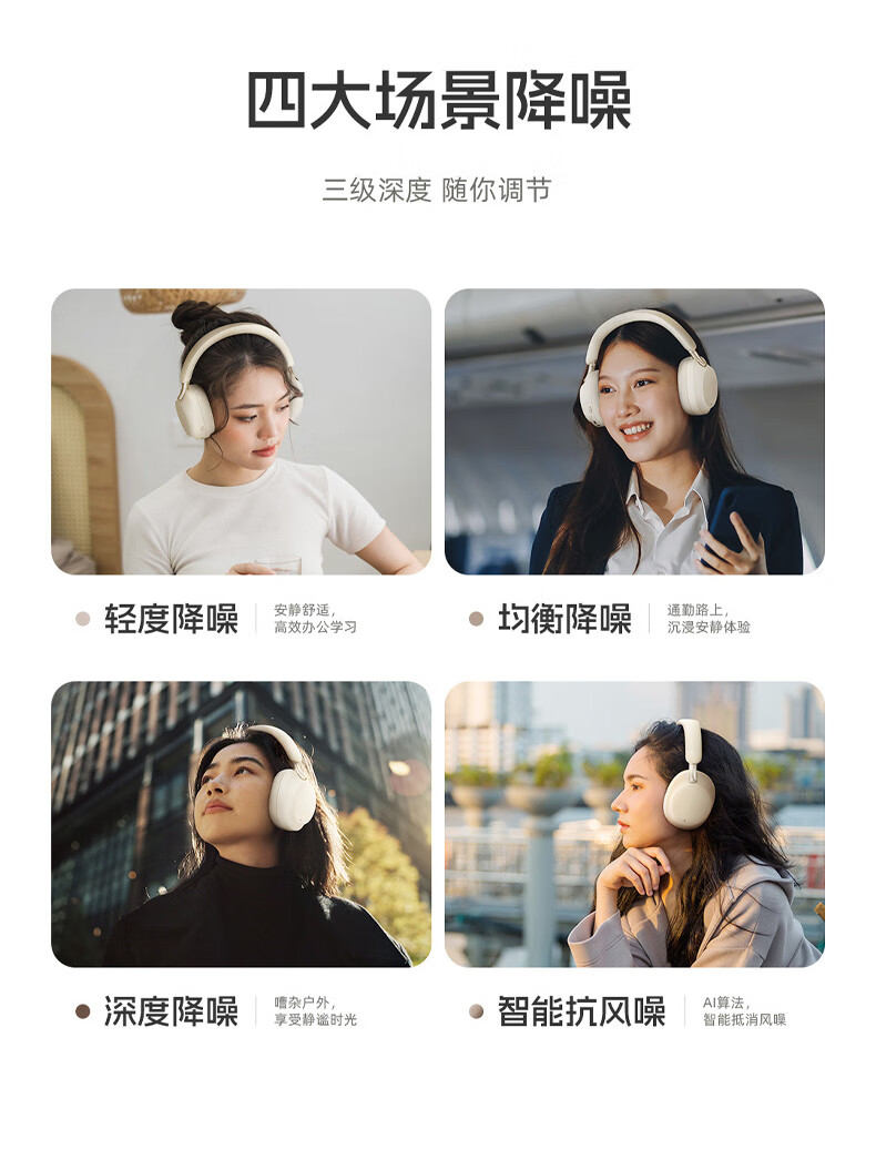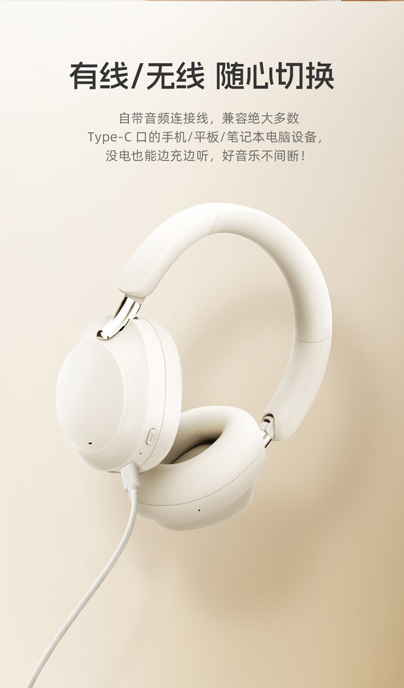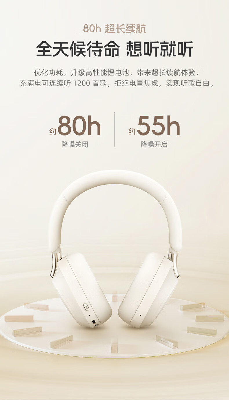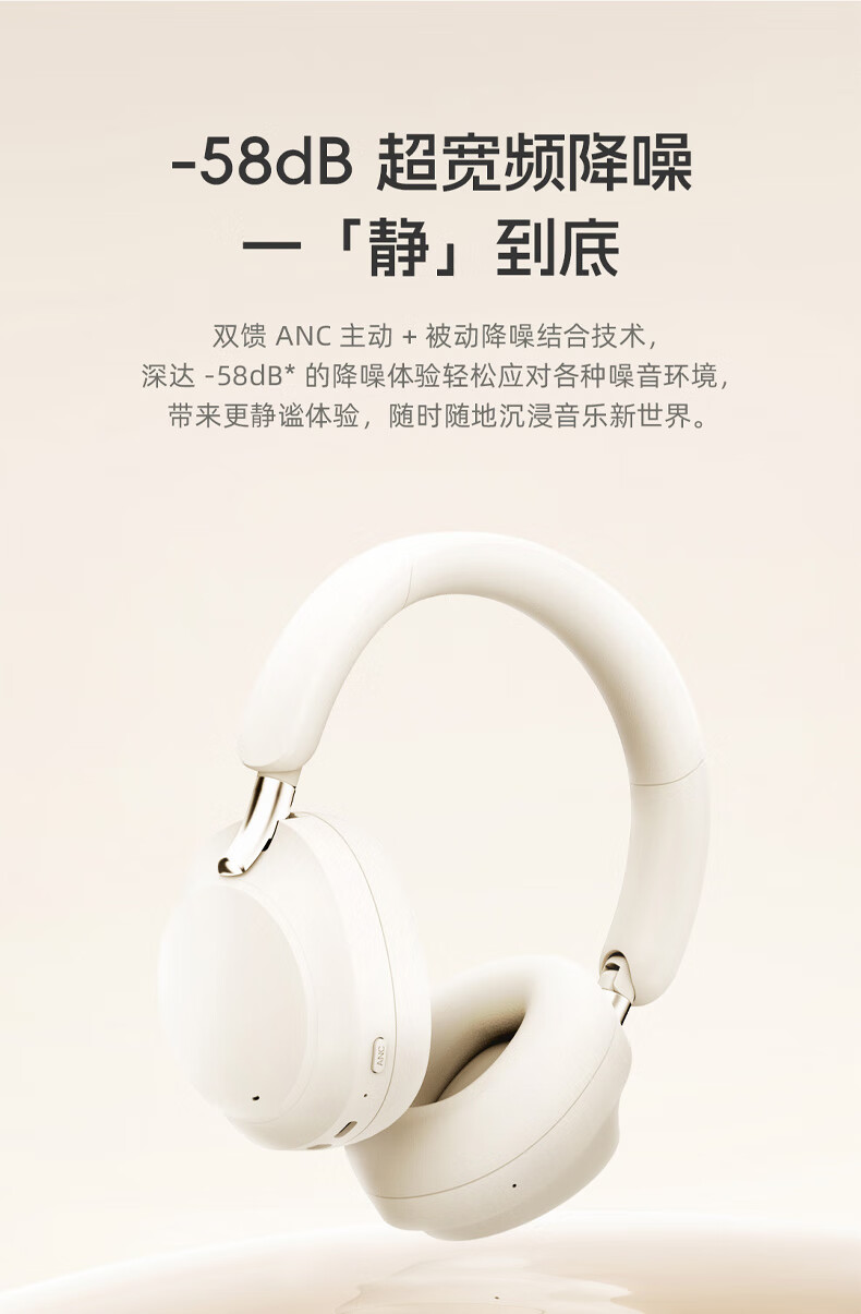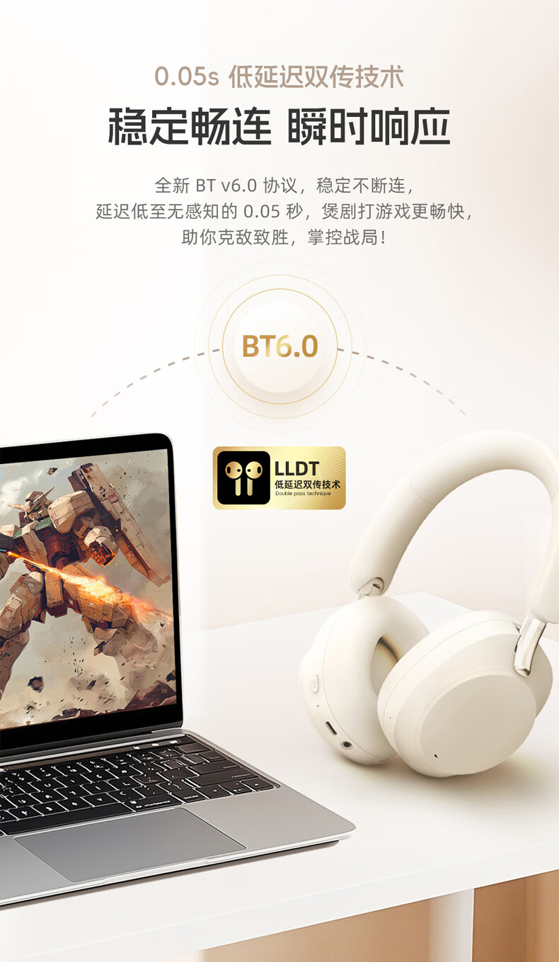 lifeme魅蓝H1 Pro头戴式蓝牙耳机-58dB降噪 80h长续航+APP调节 云感耳罩 蓝牙6.0低延迟 适用于魅族苹果 【-58dB降噪】影院音效