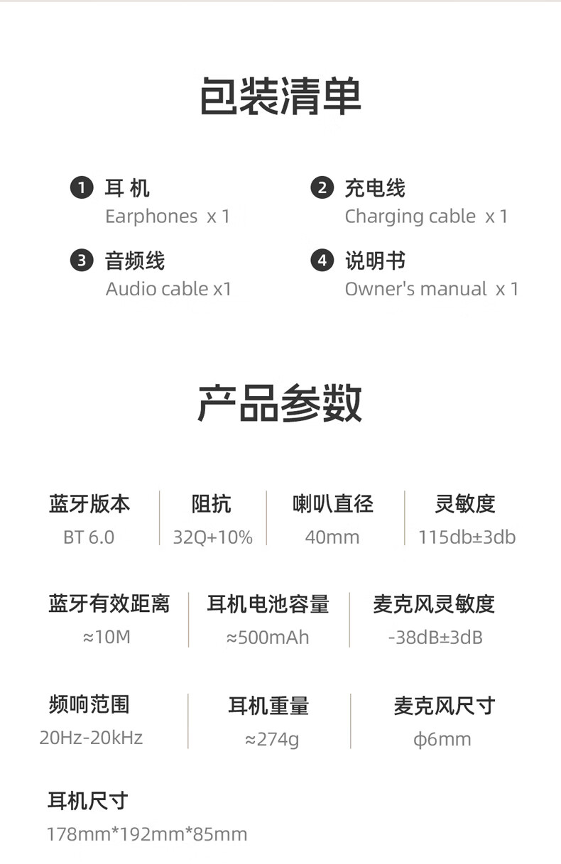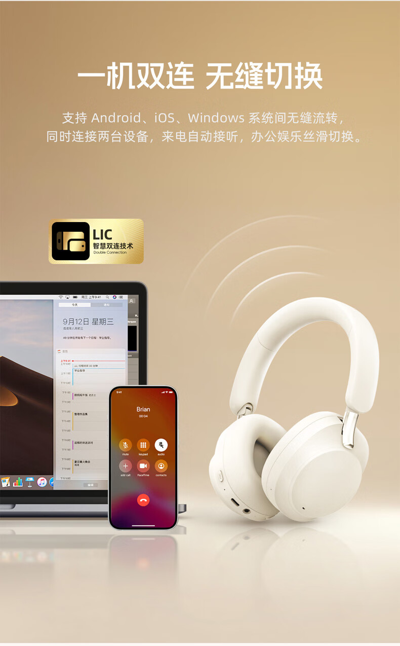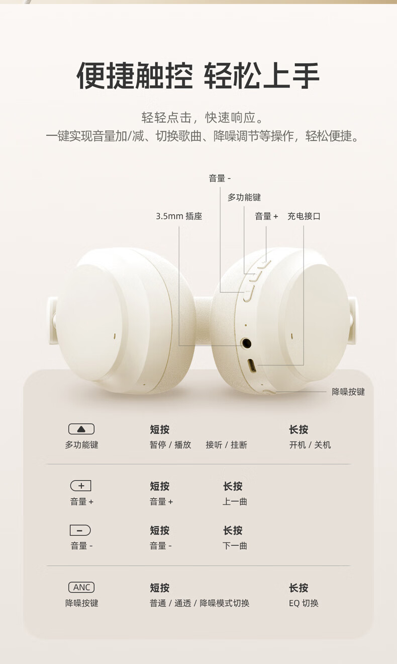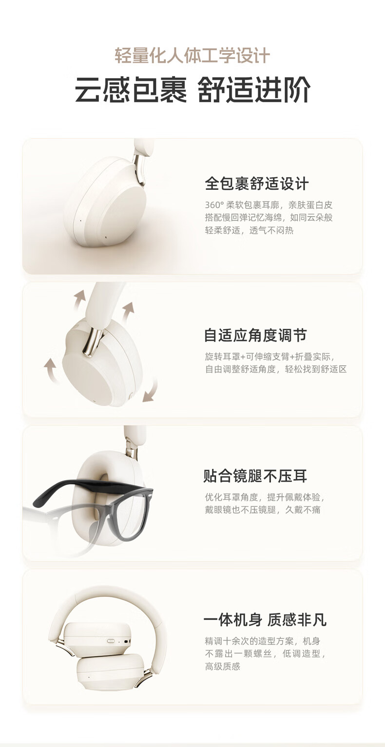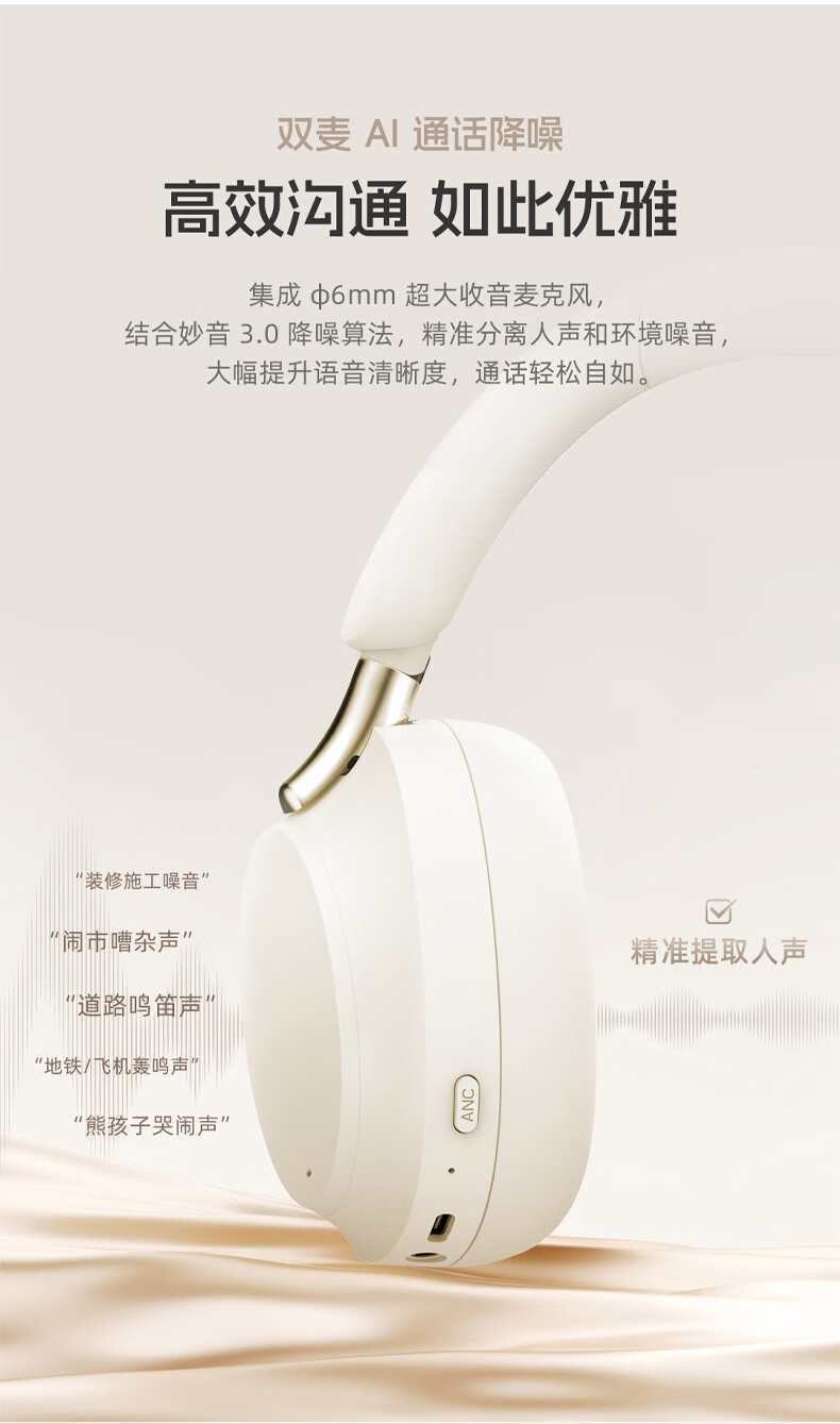 lifeme魅蓝H1 Pro头戴式蓝牙耳机-58dB降噪 80h长续航+APP调节 云感耳罩 蓝牙6.0低延迟 适用于魅族苹果 【-58dB降噪】影院音效