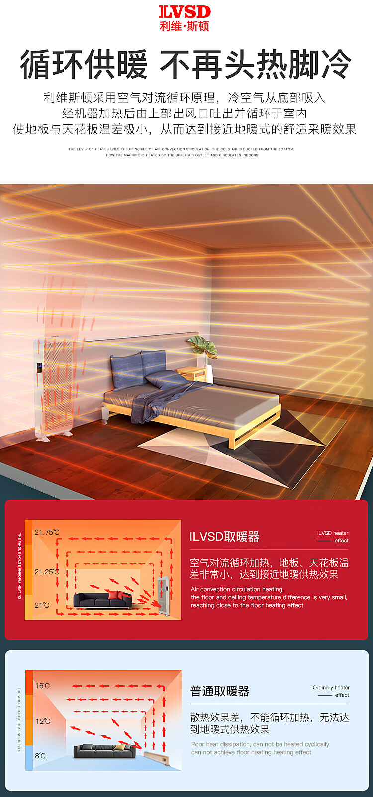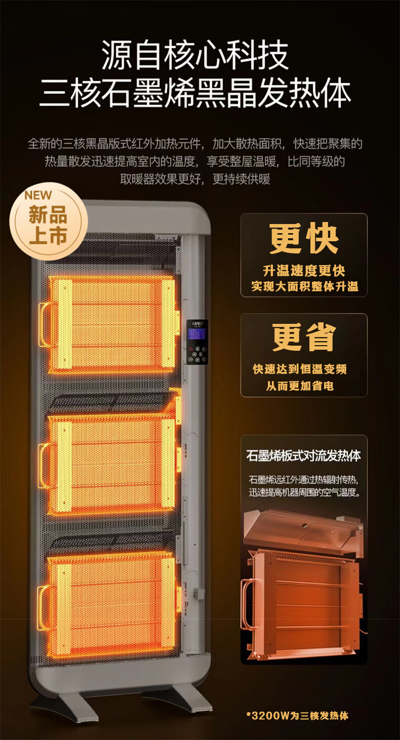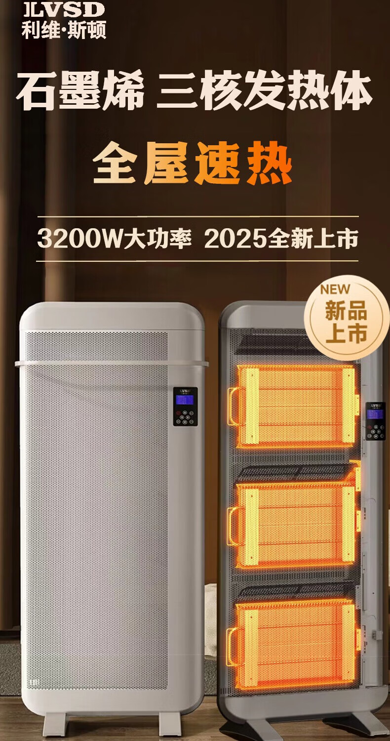 利维斯顿(ILVSD)石墨烯取暖器家用大面积全屋速热电暖器客厅浴室壁挂式电暖气片电采暖加热器壁炉电烤炉取暖炉 2200W【10-20㎡】 恒温变频【涡轮速热款】