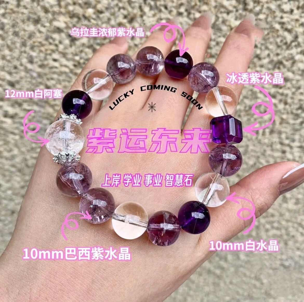 非菲梵2025蛇年限定手串超七紫水晶手链九离紫火串珠白水晶饰品轻奢手饰 超七水晶九紫离火 珠经-12mm