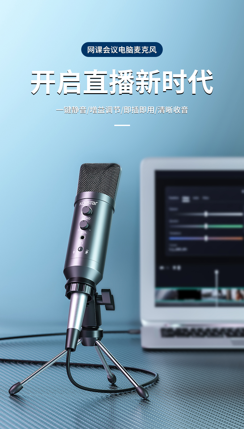 KO-STAR 麦克风电脑USB话筒有线台式机笔记本专用桌面会议网课学习游戏语音主播直播声卡设备录课 黑色【内置专业声卡】