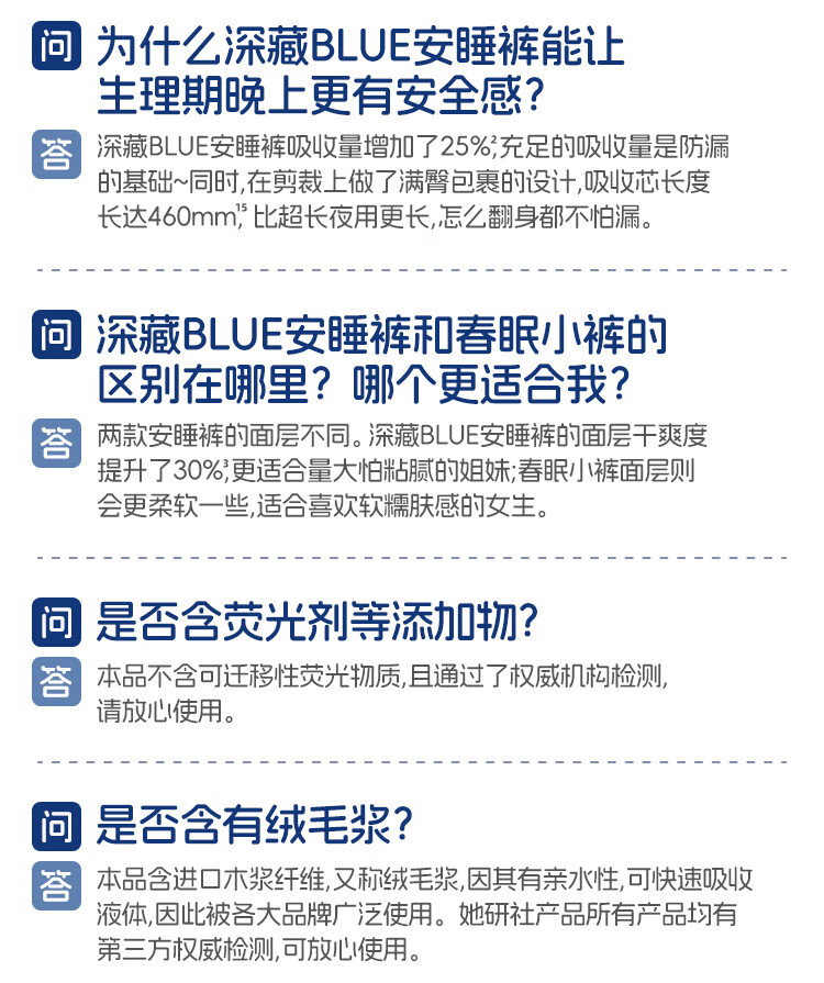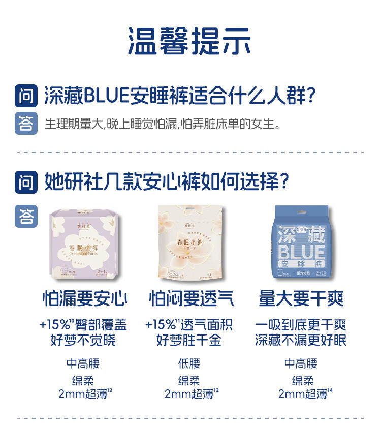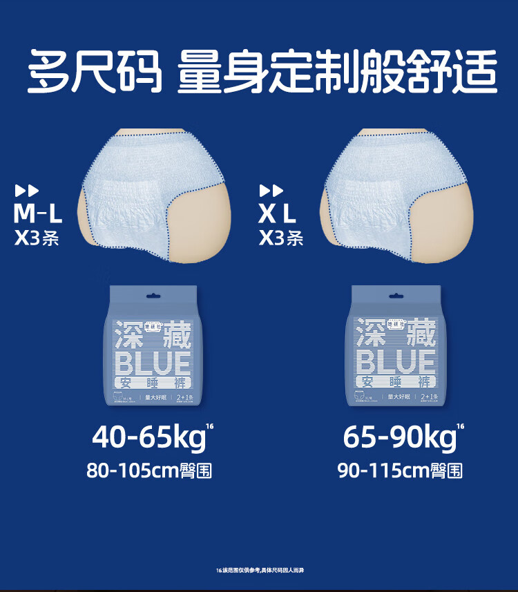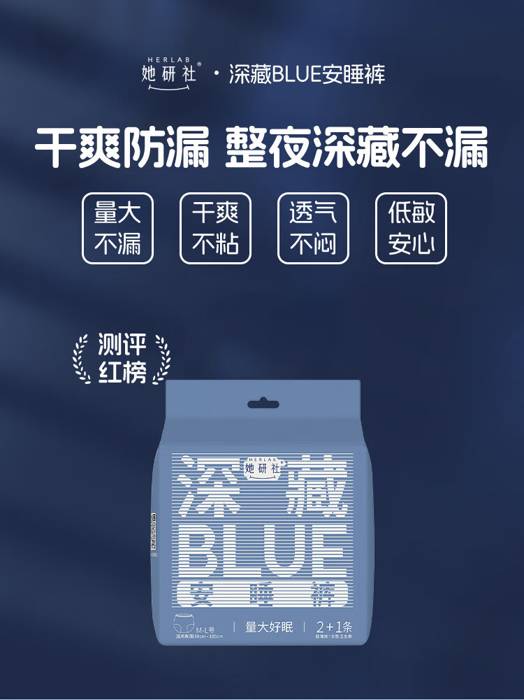 她研社安睡裤卫生巾整箱夜用安心裤夜安裤拉拉裤深藏blue裤子M-L码/XL码 M-L码 9条 80-110斤