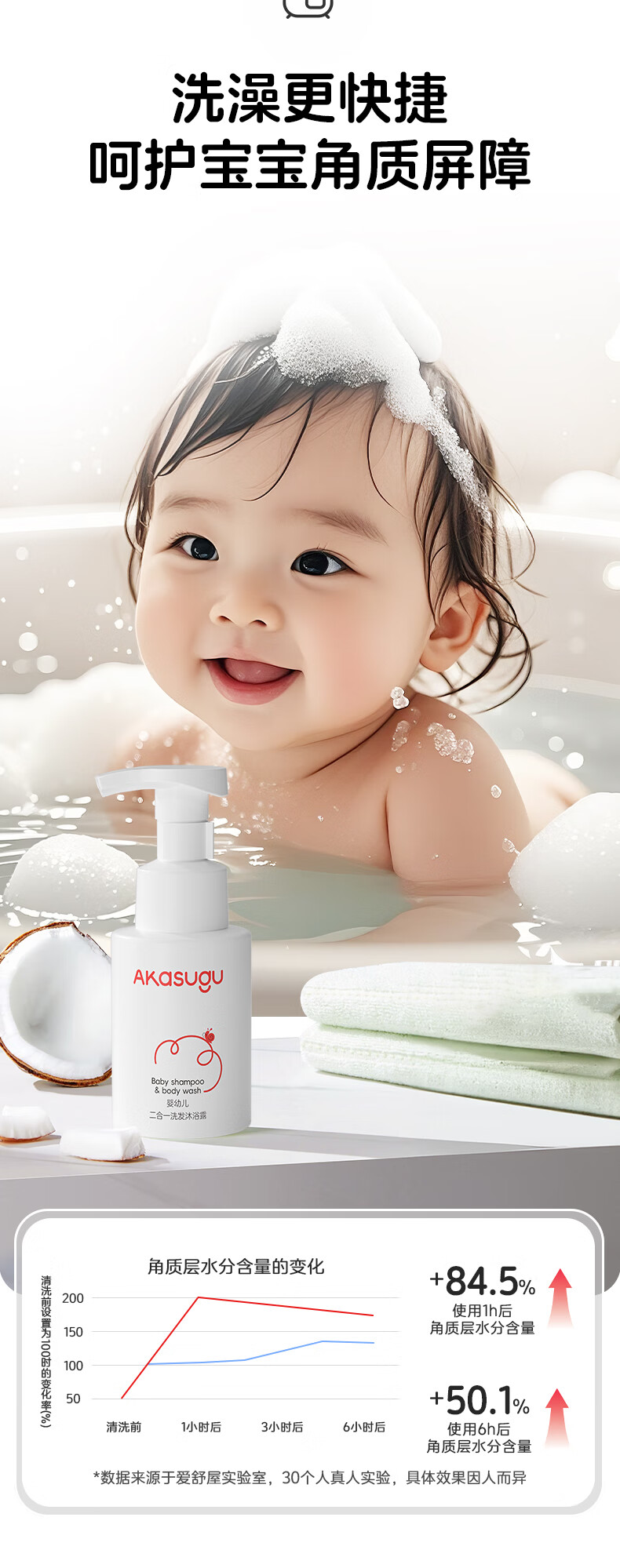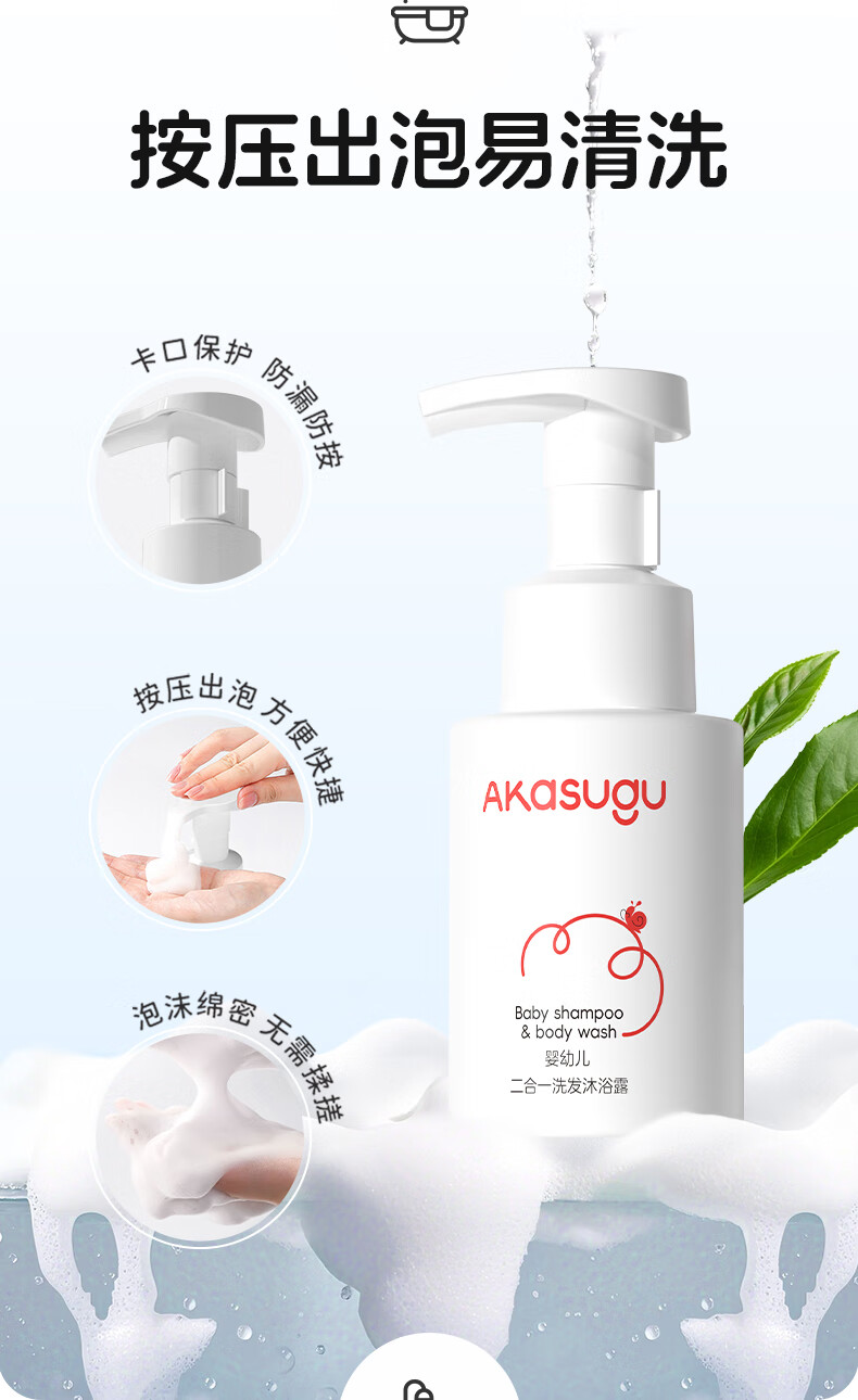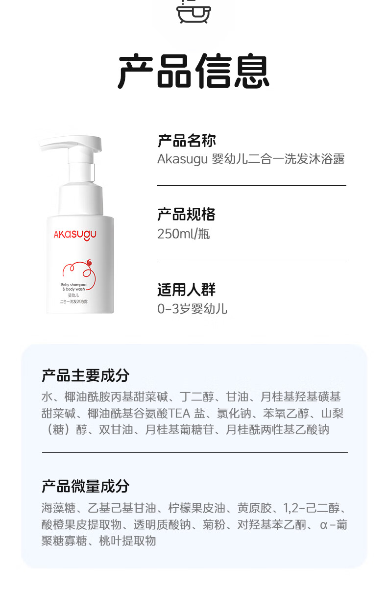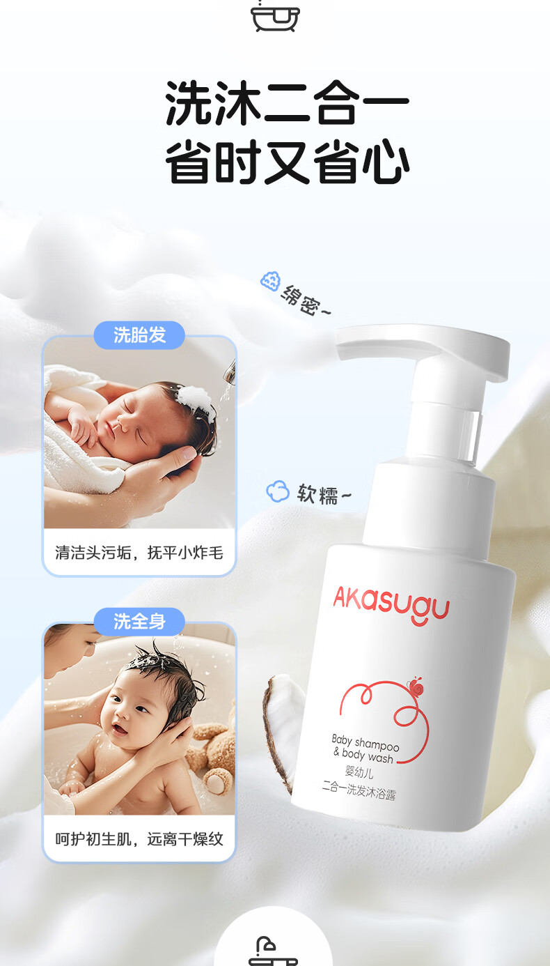 Akasugu爱舒屋婴儿沐浴露洗发水二合一250ml宝宝洗护儿童沐浴乳