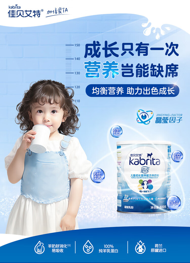佳贝艾特睛滢护眼学生儿童羊奶粉 4段(3岁以上)荷兰进口 1罐(咨询优惠)