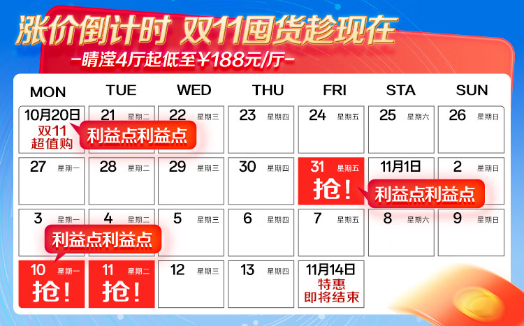 11月14日:安慕希香草味酸奶205g*10盒百亿26.9亓
