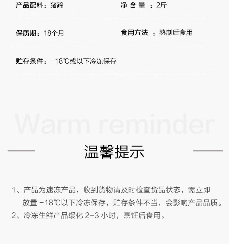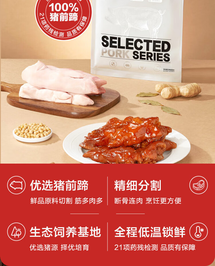 1号会员店精选带筋猪前蹄2斤 猪肉猪手猪脚 整蹄带蹄筋