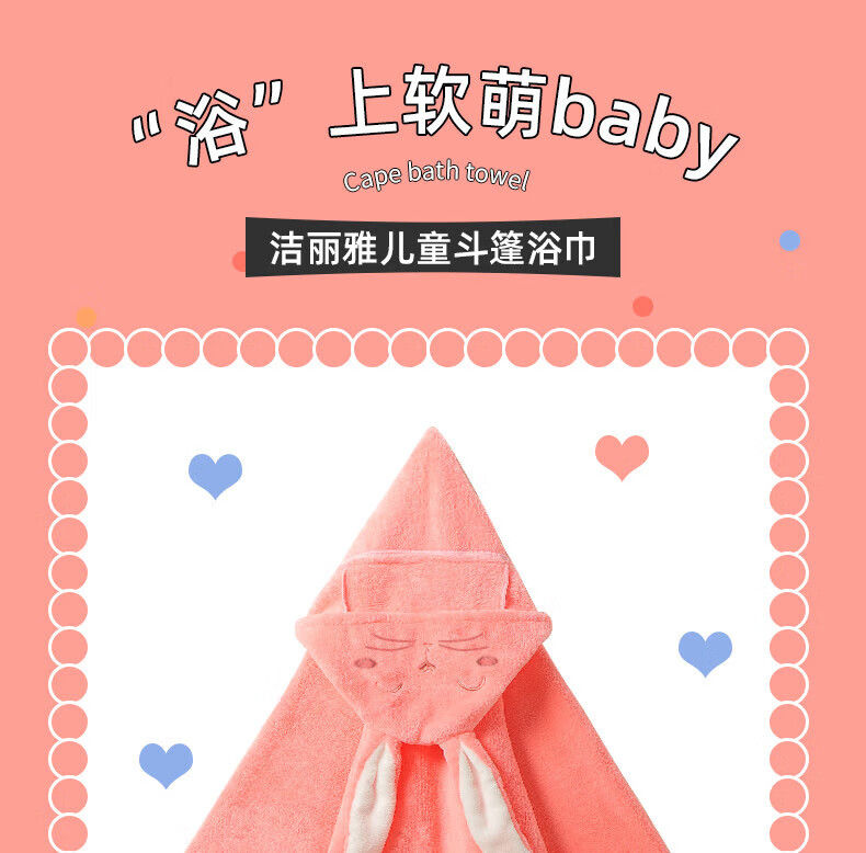 洁丽雅(Grace)A类浴巾儿童带帽斗篷浴袍超软吸水浴巾洗澡连帽包巾速干150*80cm
