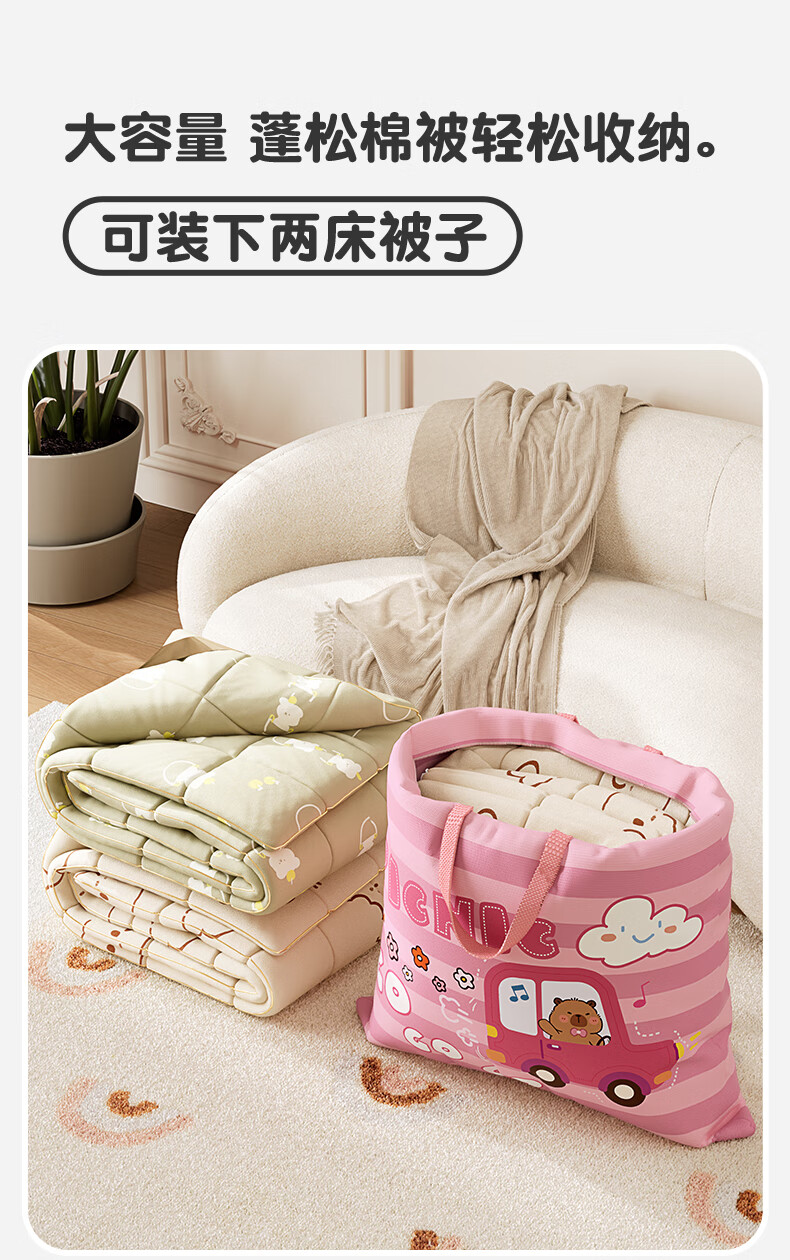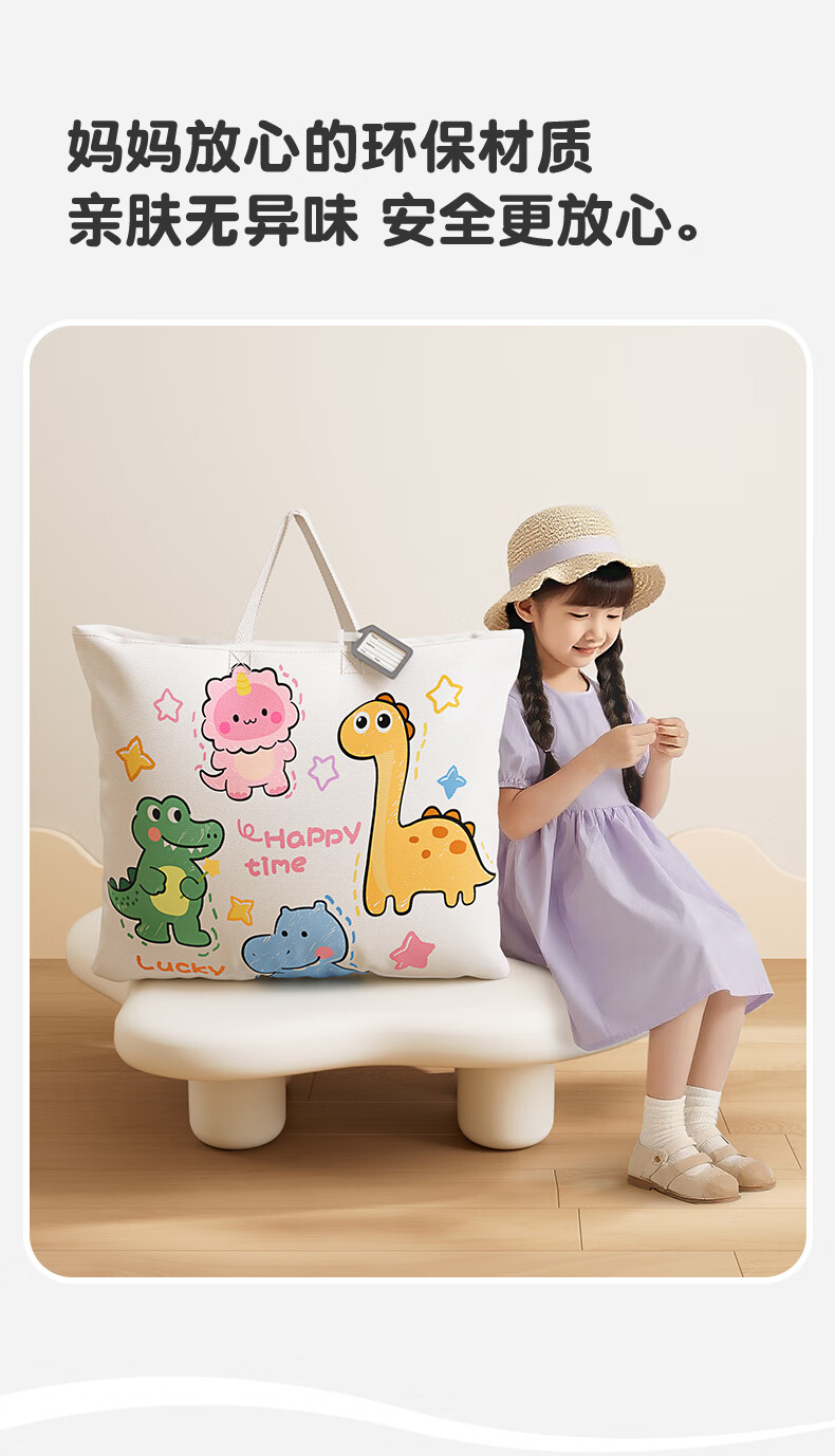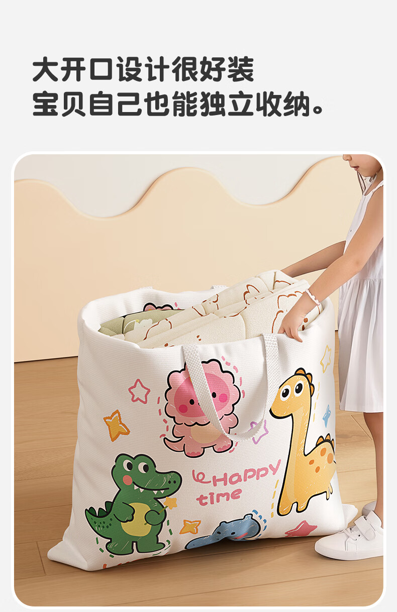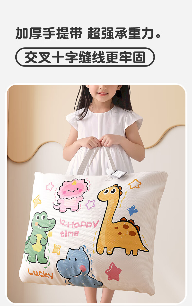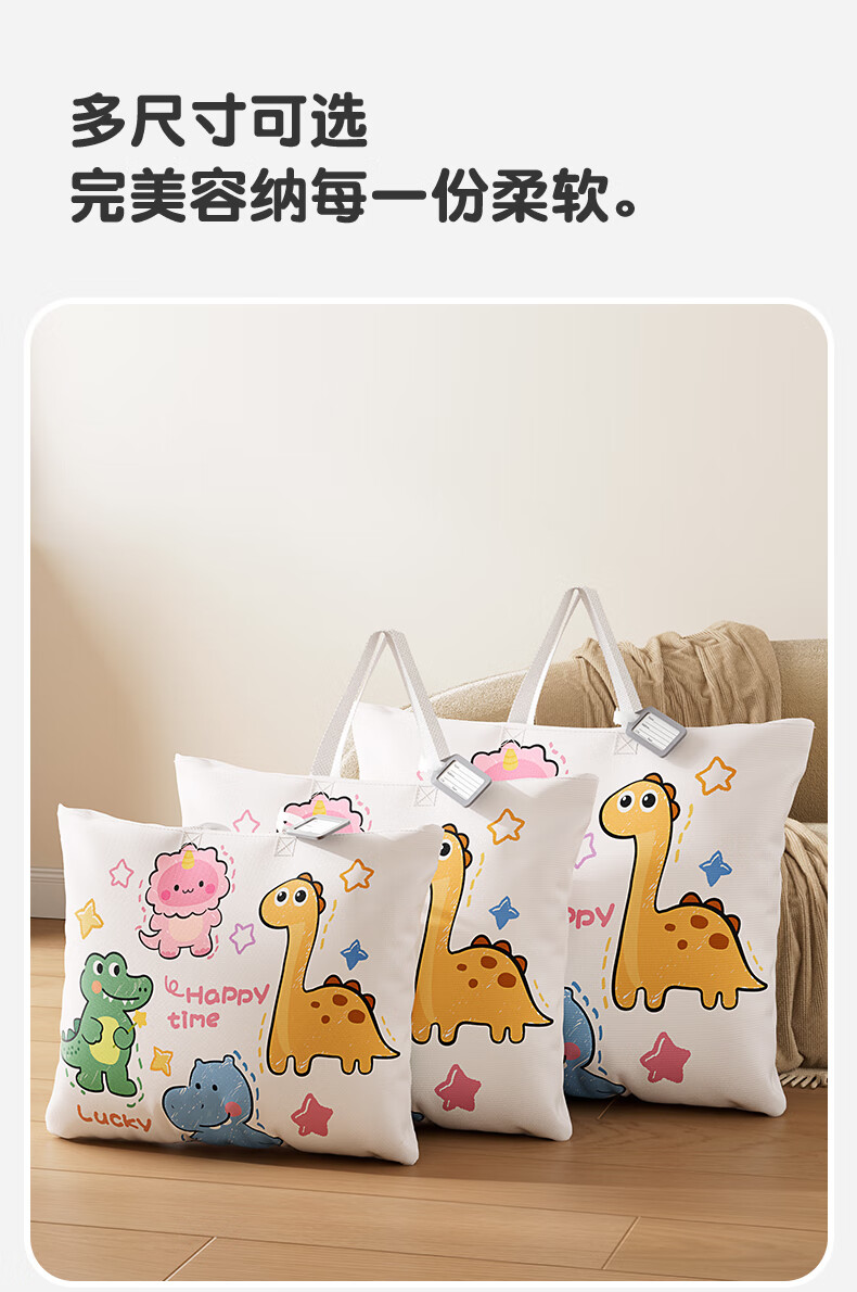 邦尼美家儿童收纳袋手提大容量轻便行李袋出差外出便携衣物被子整理旅行包 嗷哦恐龙-大号【长61宽40cm】 放心购(环保材质 亲肤无异味)