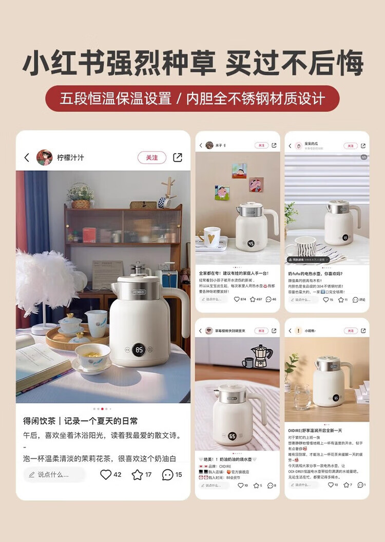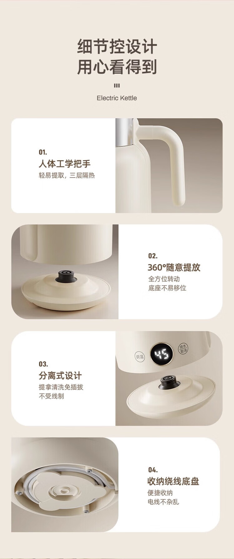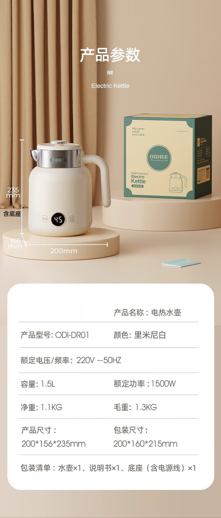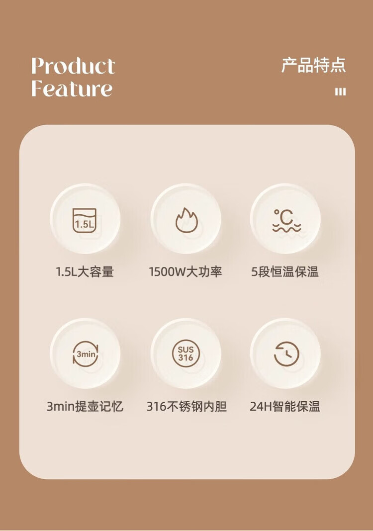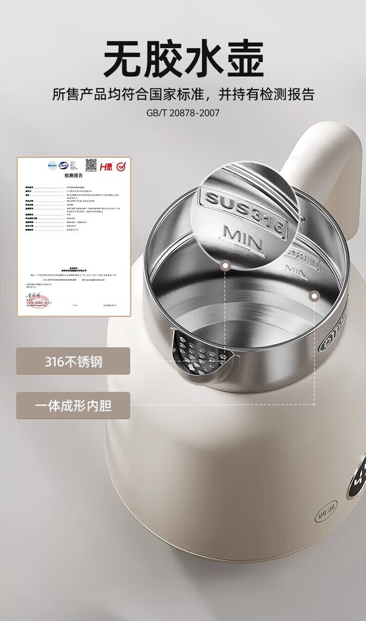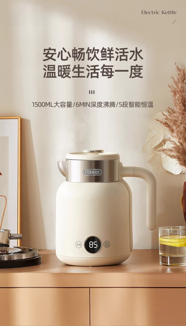 DEATKN德国316不锈钢烧水壶保温一体全自动恒温电热水壶家用智能热水壶 304款/24小时保温/无缝内胆 1.5L 1ml