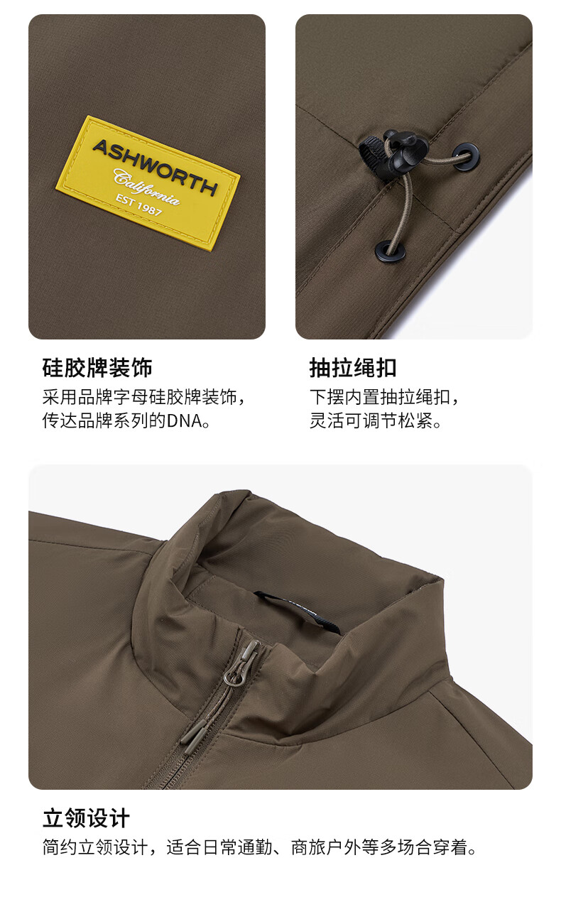 ASHWORTH【轻量运动】防风立领马甲男秋季时尚纯色轻盈保暖户外休闲背心 A0-黑色 M