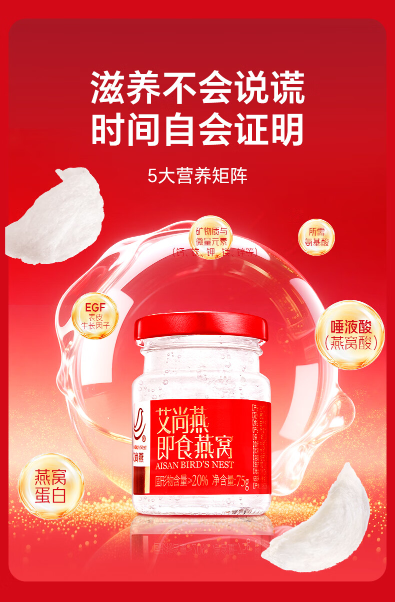 艾尚燕即食燕窝75g*15瓶礼盒 礼品送礼父母长辈 孕妇营养品补品生日礼物