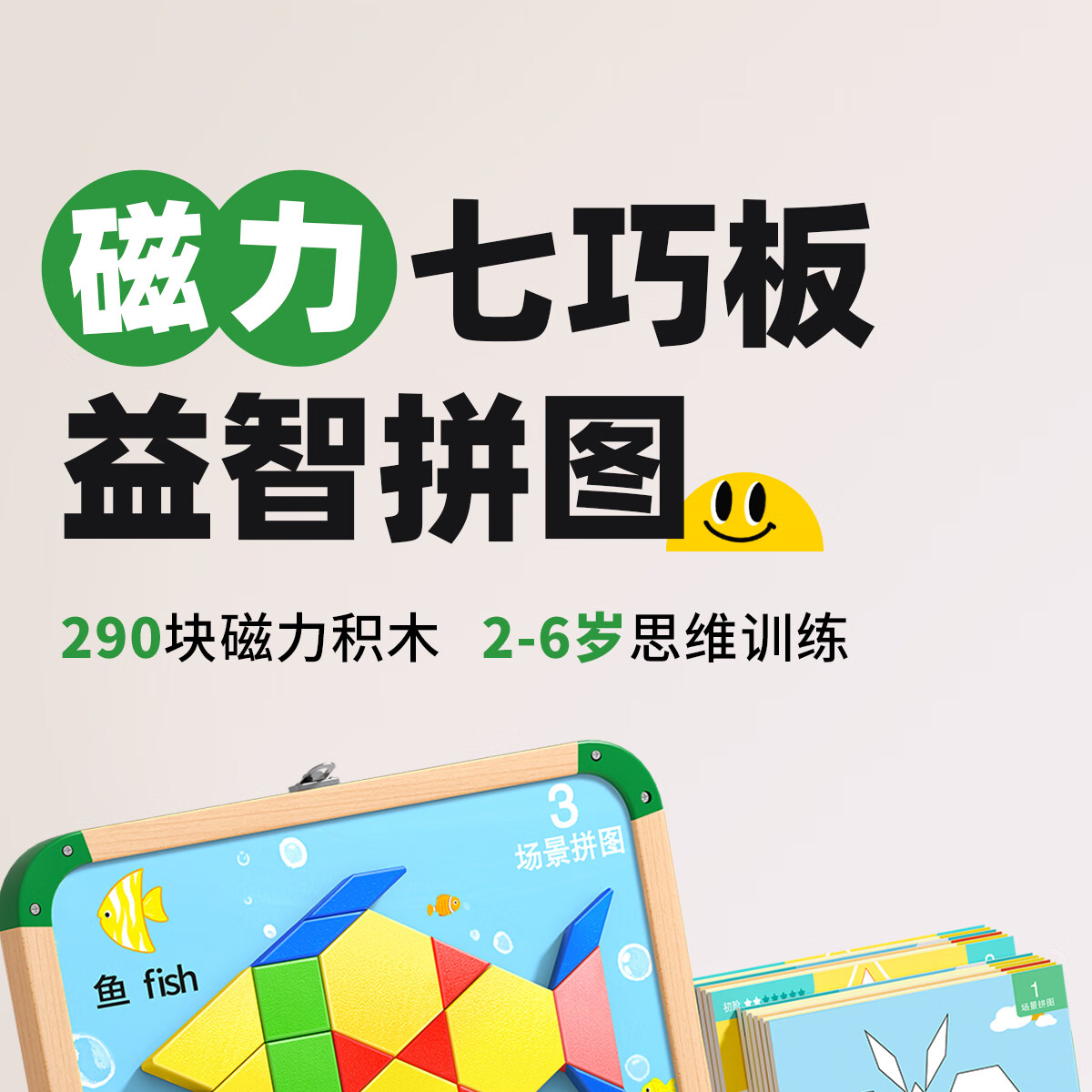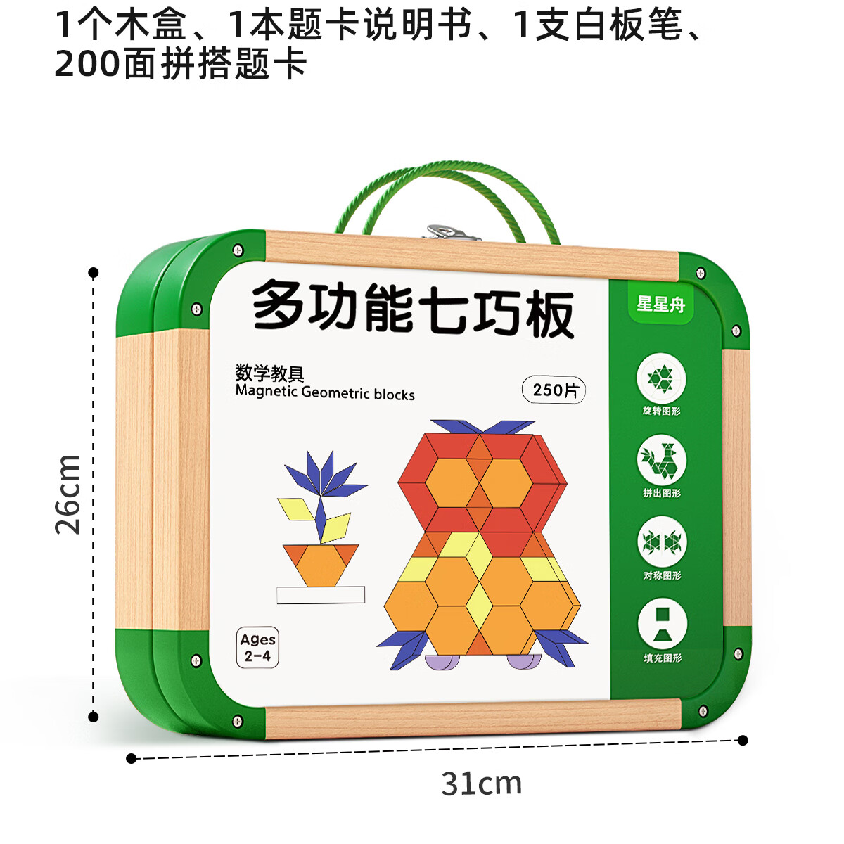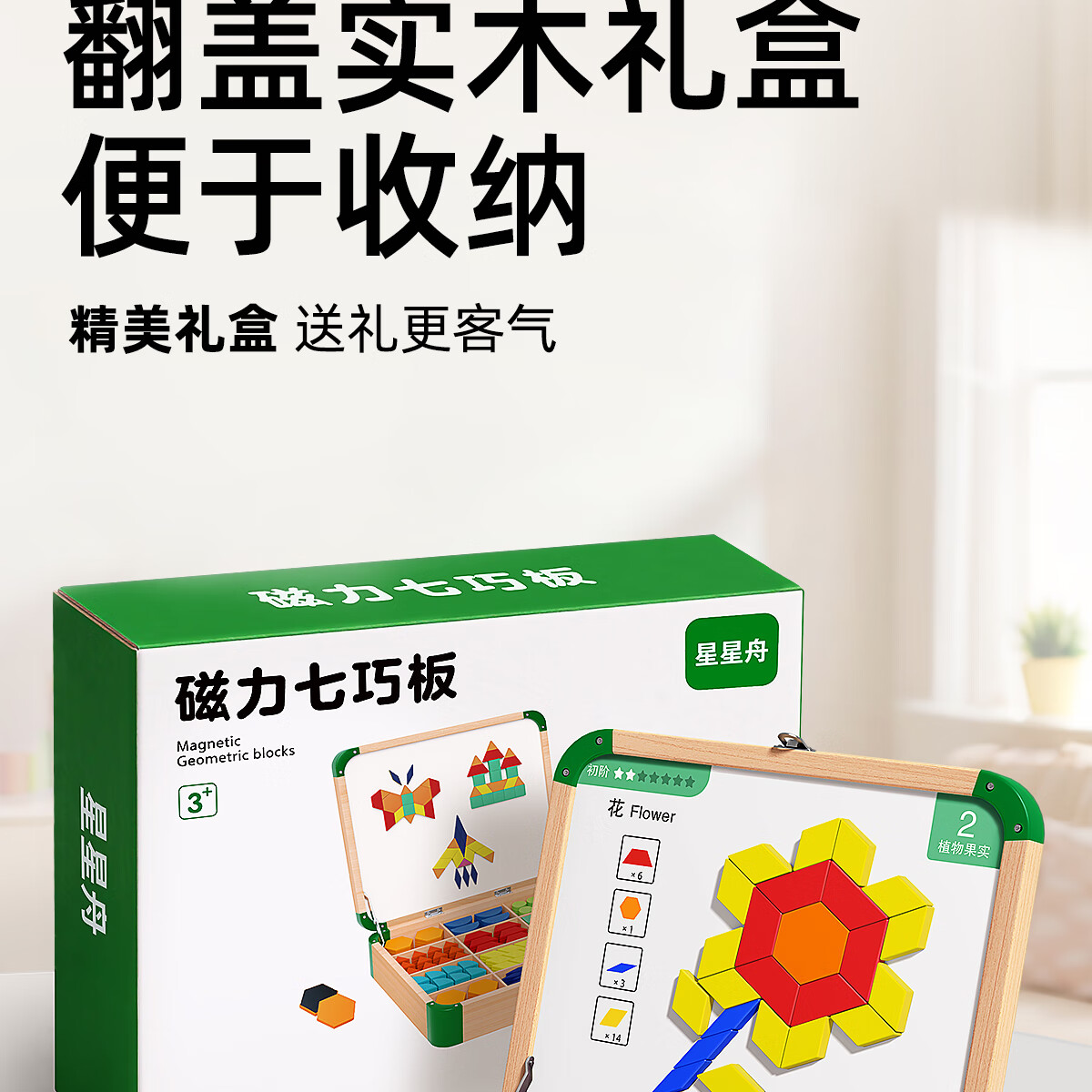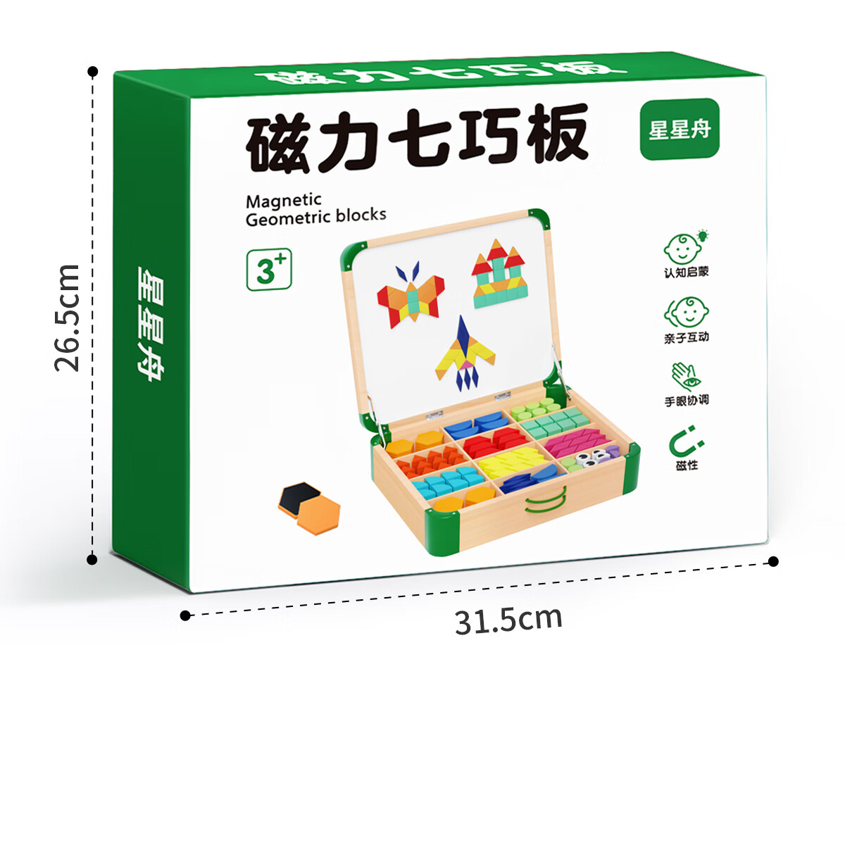 星星舟磁性拼图七巧板几何积木磁力益智儿童玩具宝宝2-6岁木质立体拼板 【大号-圆角手提木盒】290片