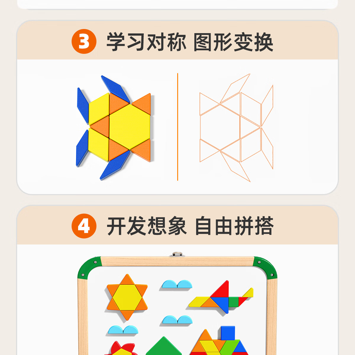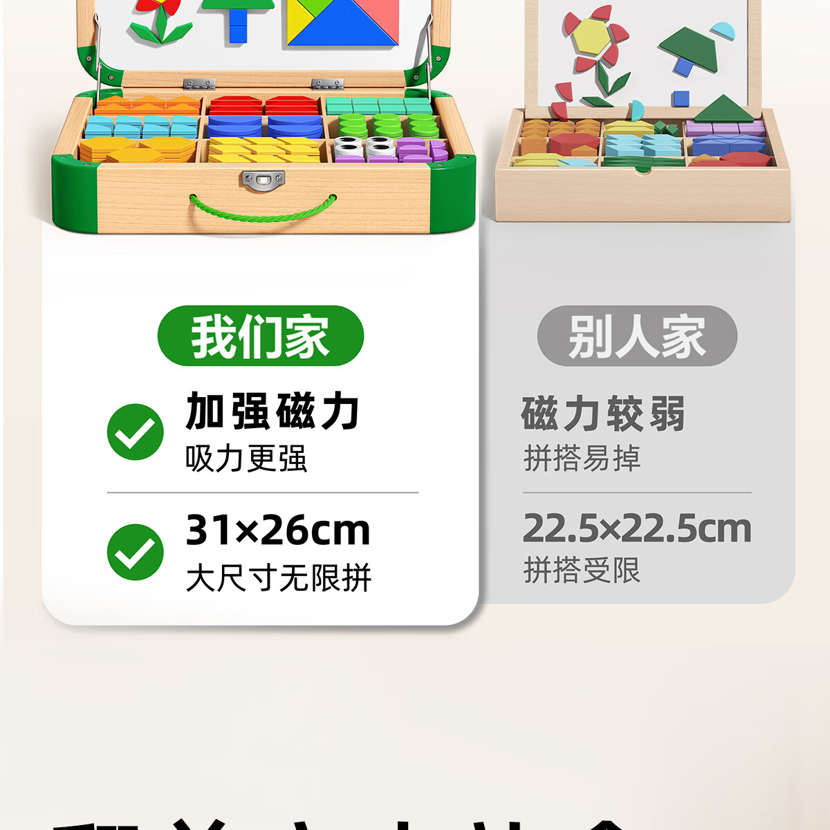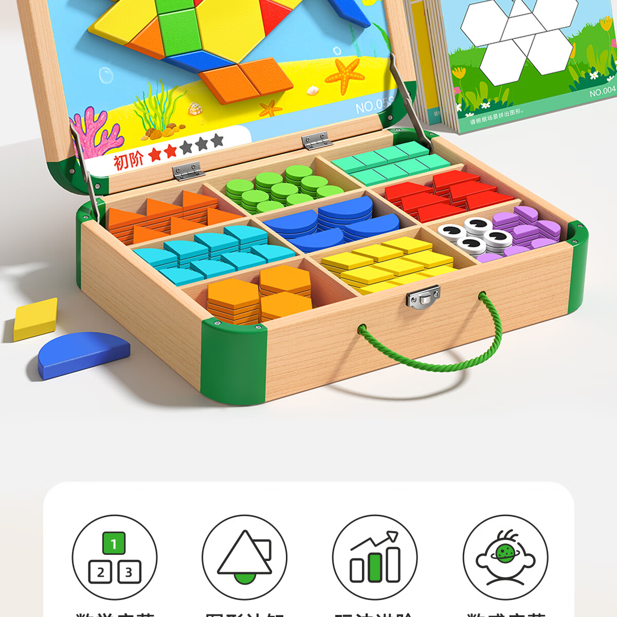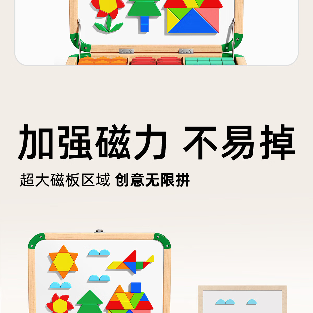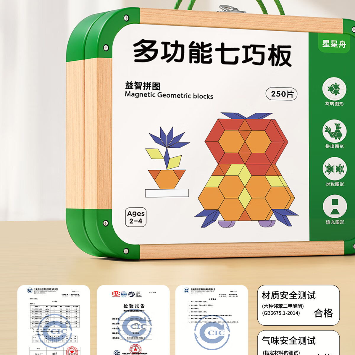 星星舟磁性拼图七巧板几何积木磁力益智儿童玩具宝宝2-6岁木质立体拼板 【大号-圆角手提木盒】290片