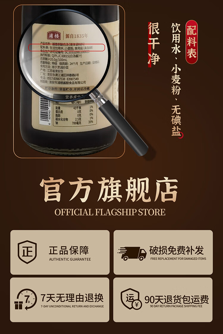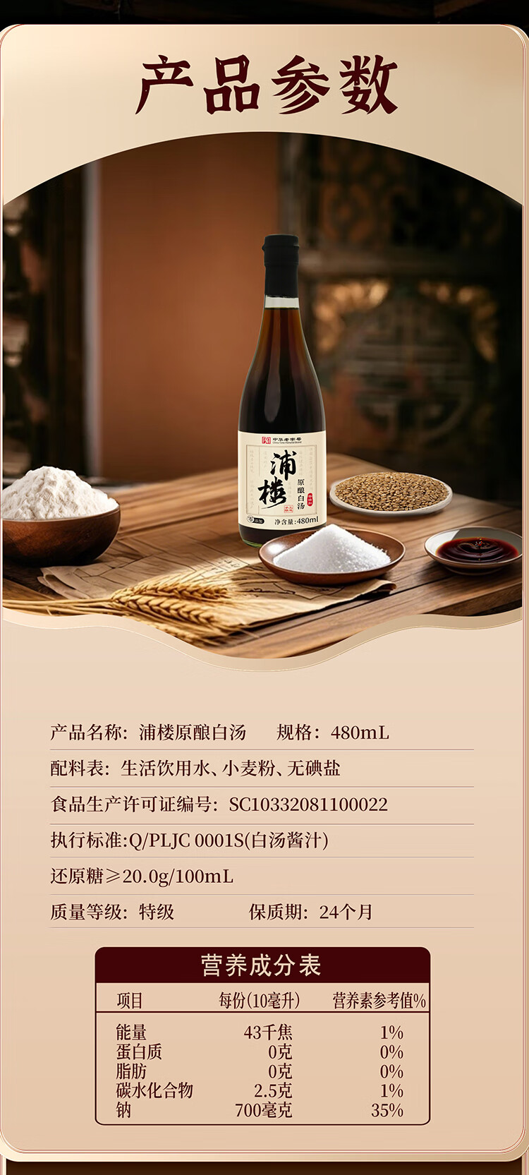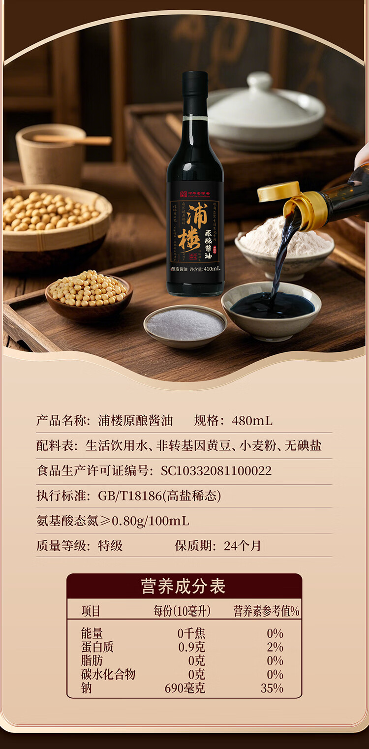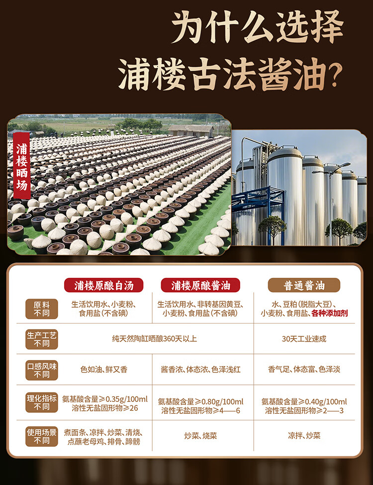 浦楼手工传统酿造古法0添加酱油白汤甜凉拌炒菜面条家用宴会无碘生抽