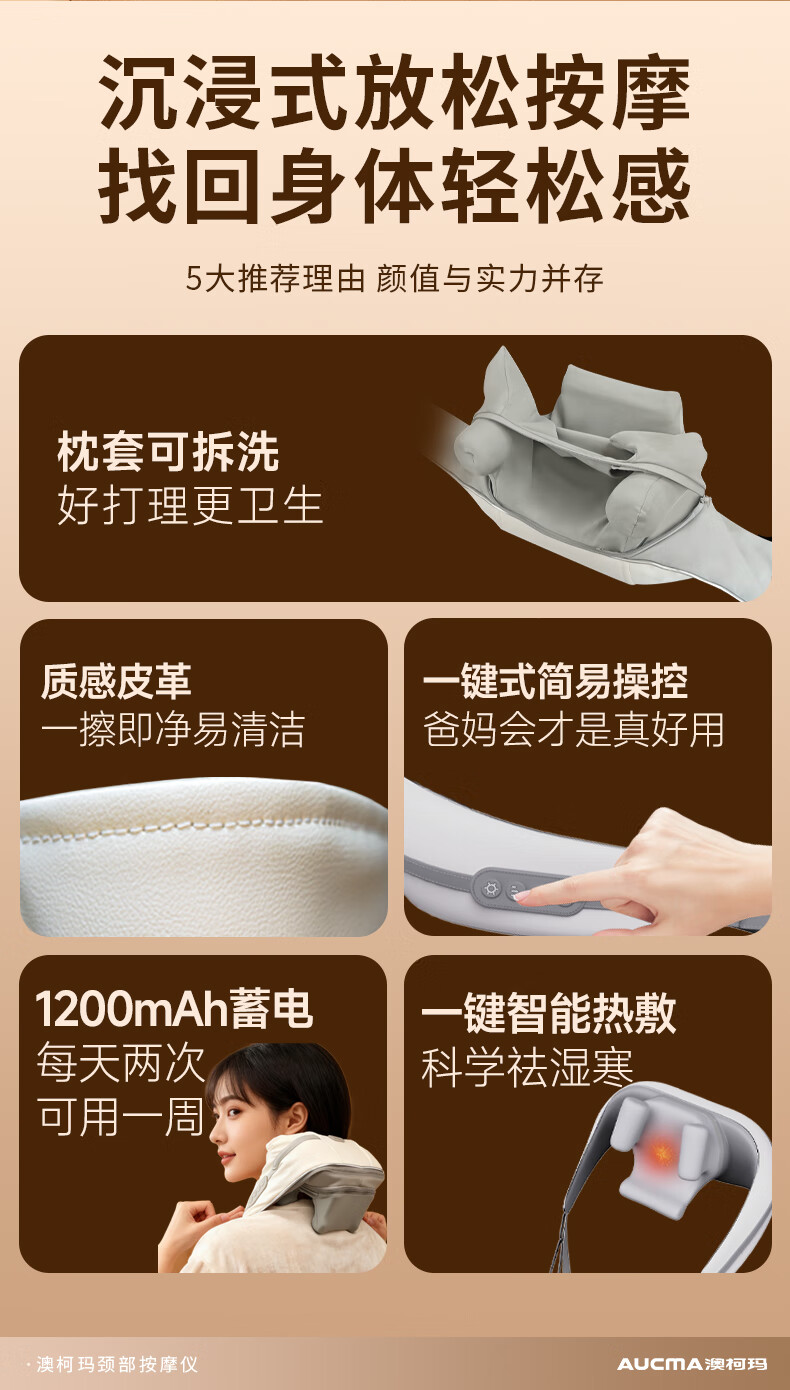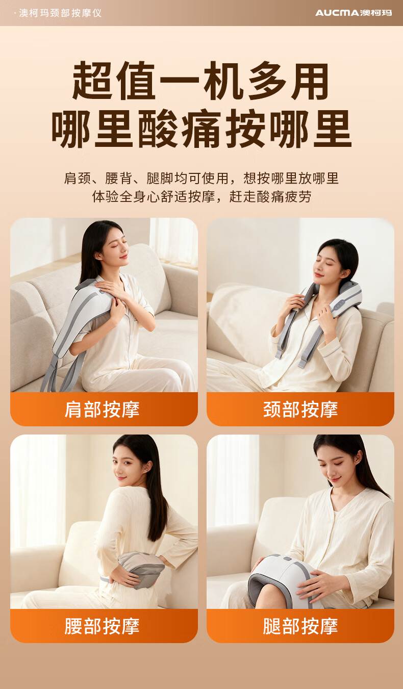 澳柯玛肩颈按摩器按摩披肩斜方肌颈椎按摩器肩颈背部按摩仪颈椎热敷揉捏颈椎按摩器送长辈生日礼物男女