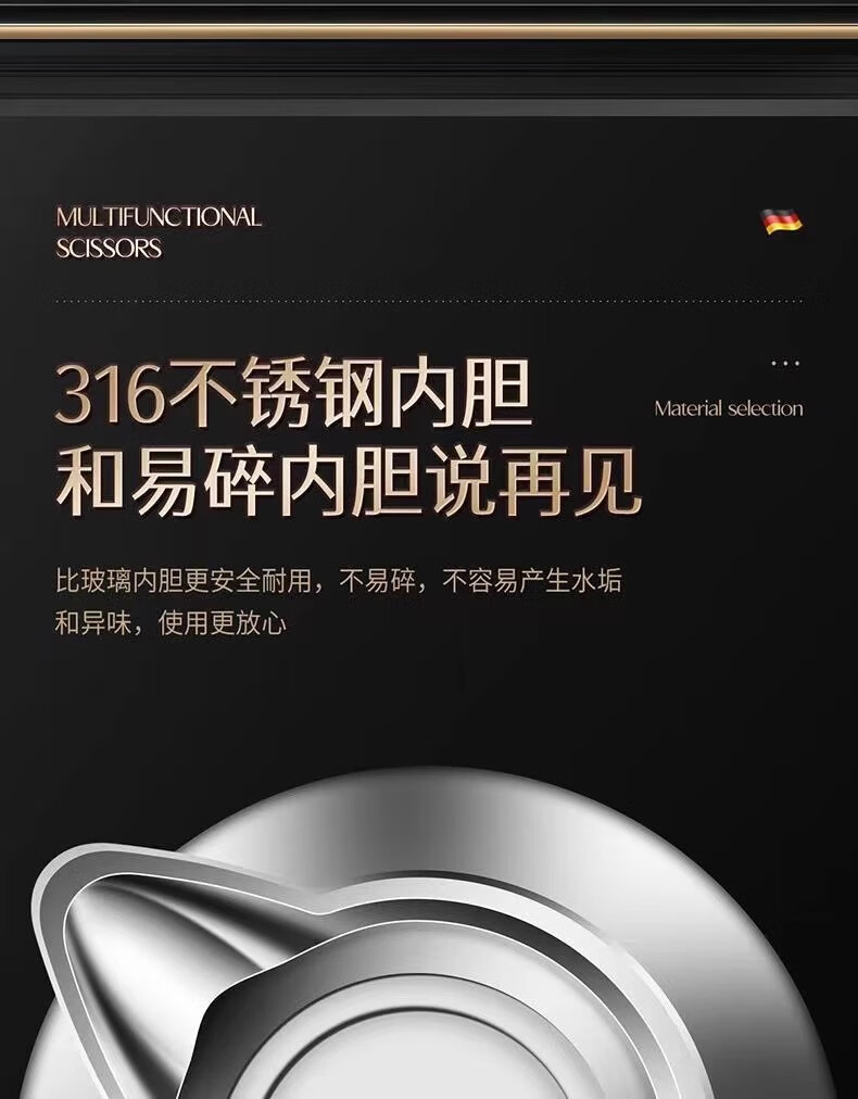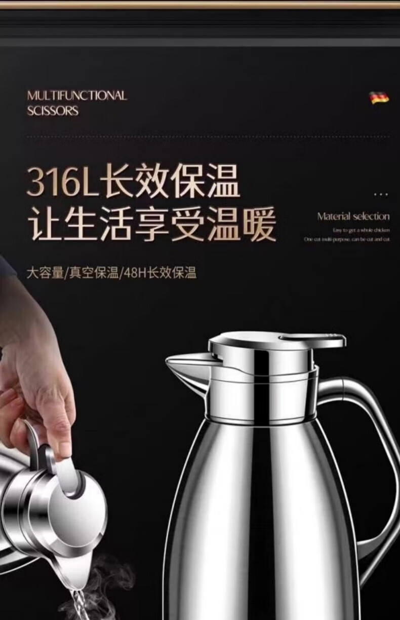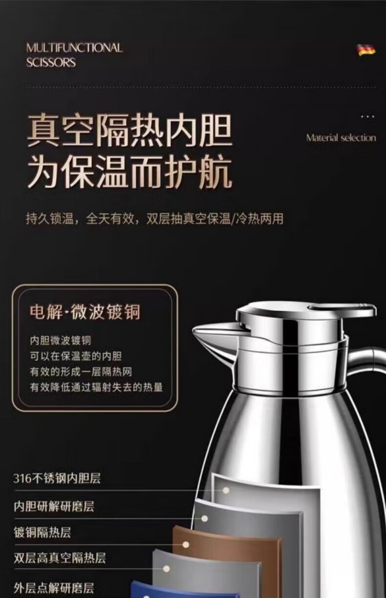DEATKN德国热水保温水壶不锈钢内胆暖水瓶2025新款家用大容量72小时长效 宝石红【316材质长效保温24-36小时】 2.3L