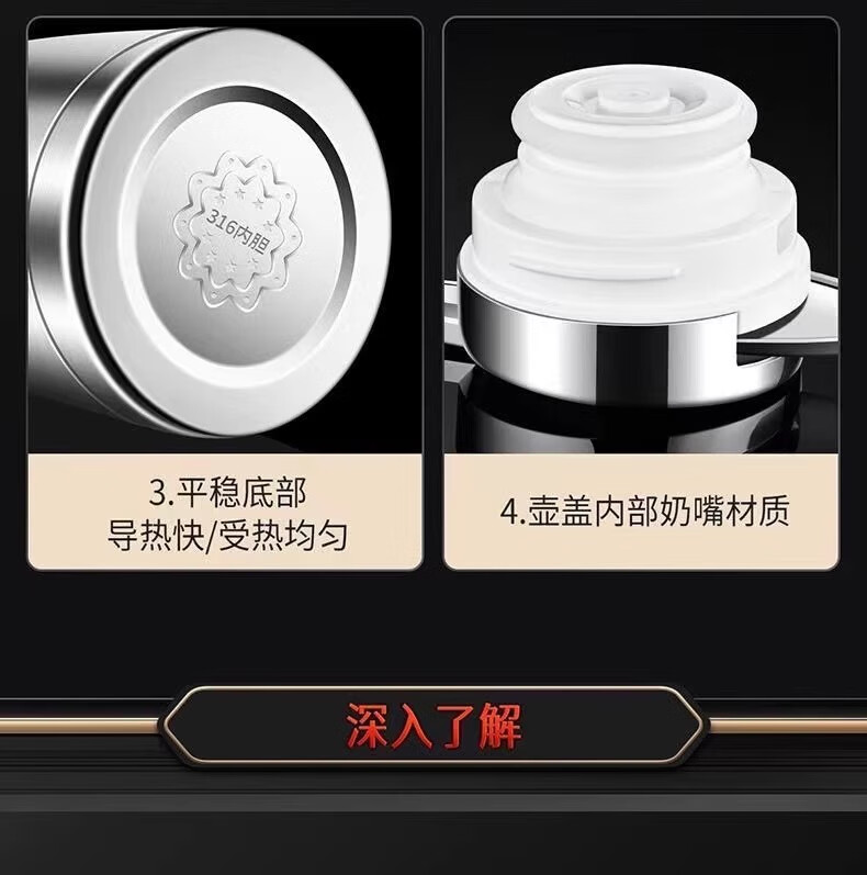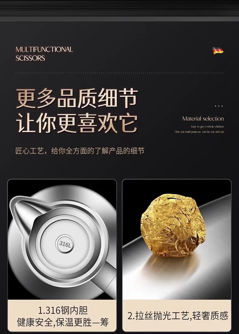 DEATKN德国保温杯长效72小时大号大容量316不锈钢男士户外旅行登 [黑色-约装2斤水]送提绳 1ml
