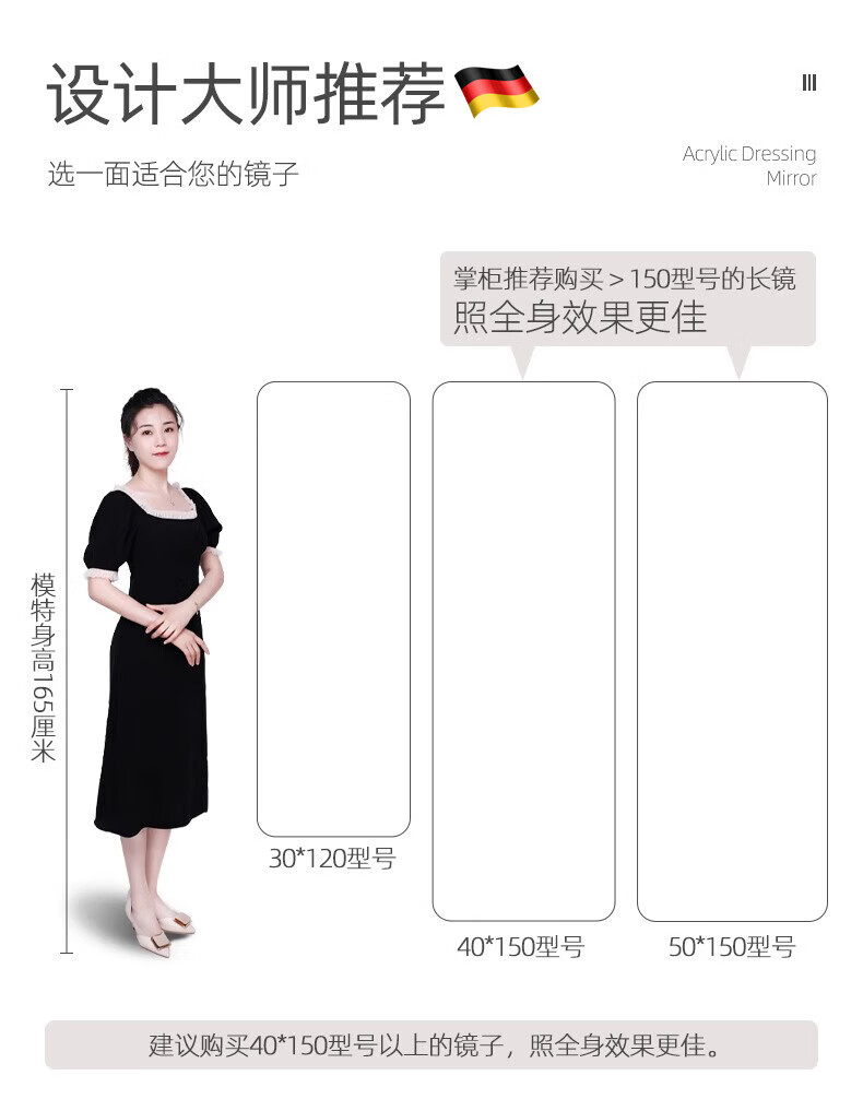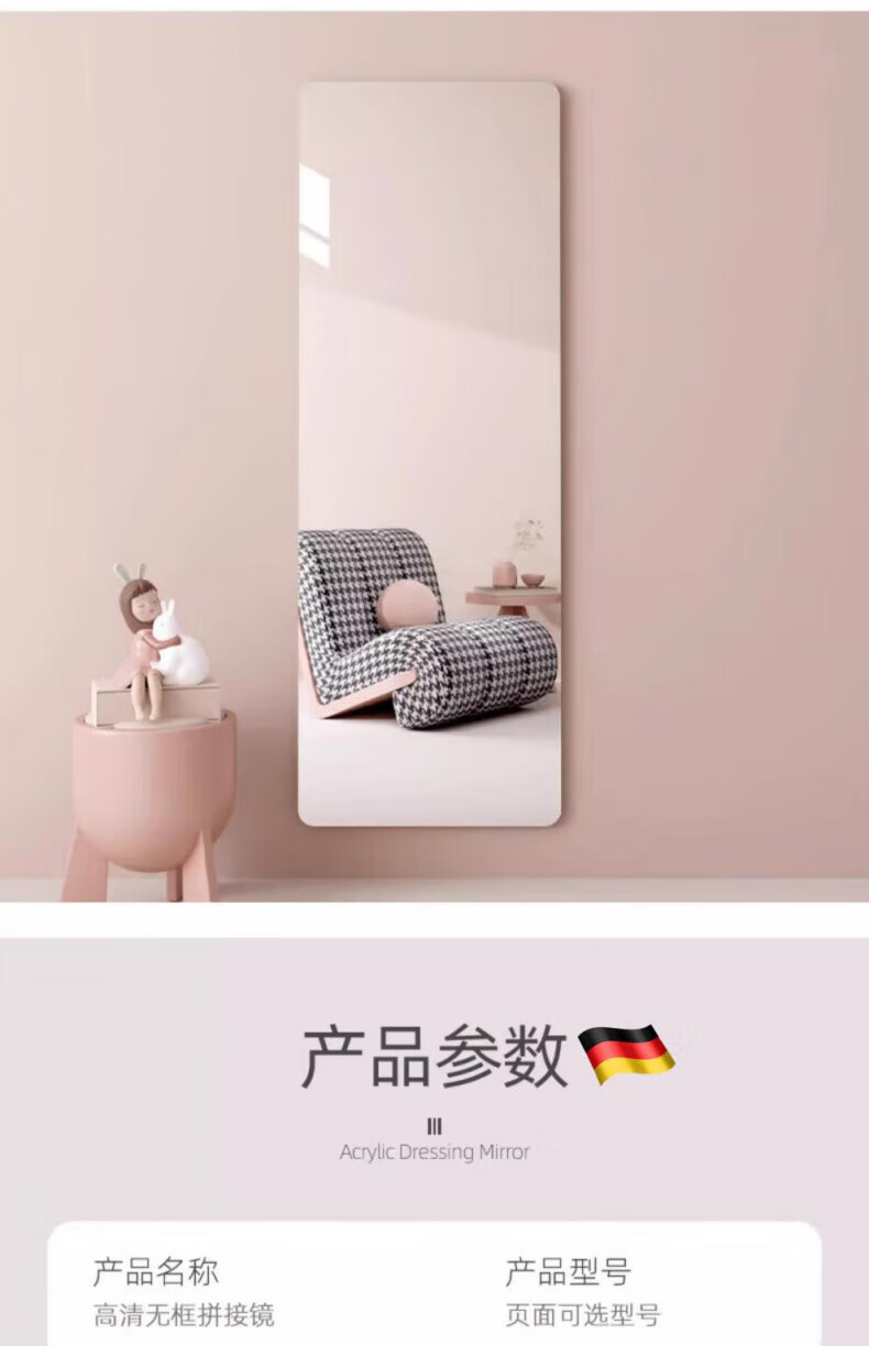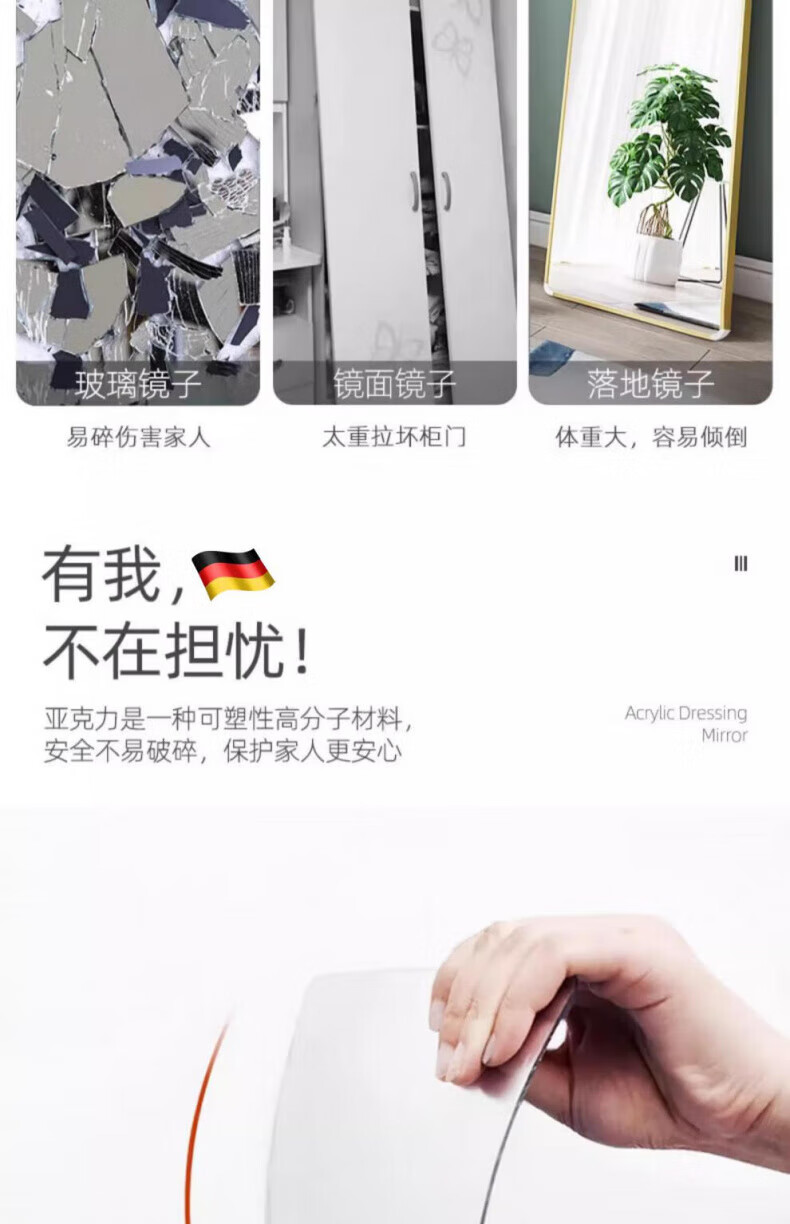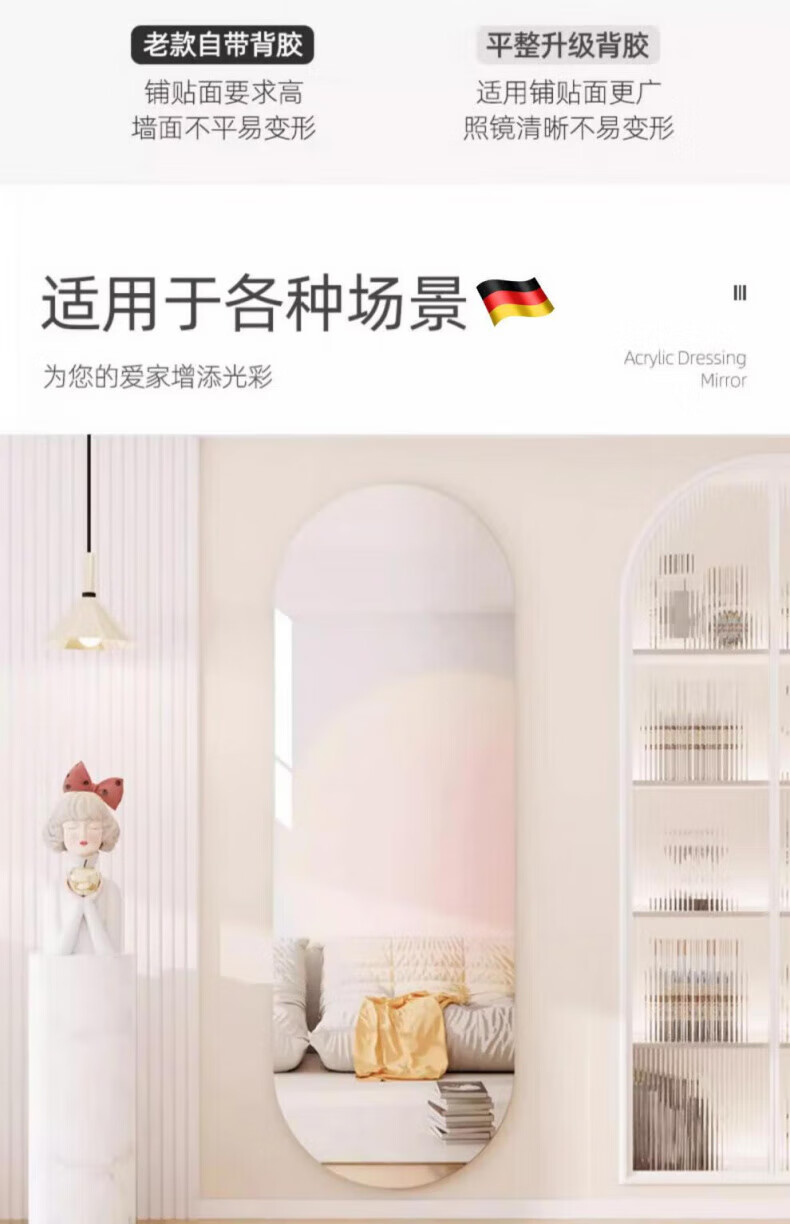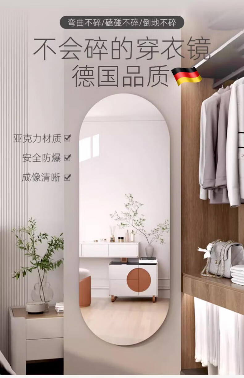 DEATKN德国衣柜贴墙自粘穿衣镜内装亚克力高清试衣镜子家用全身镜 [品牌]圆角款30*100