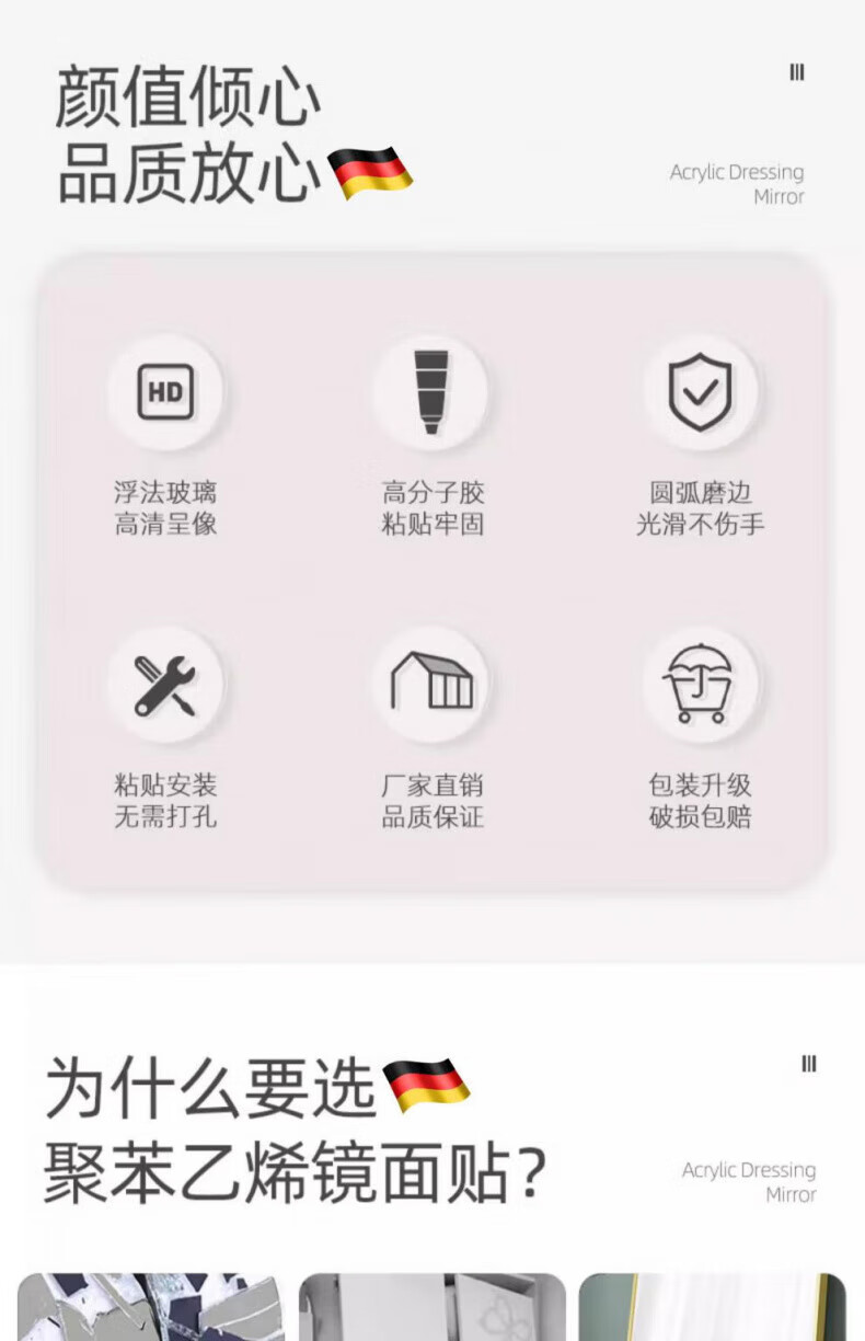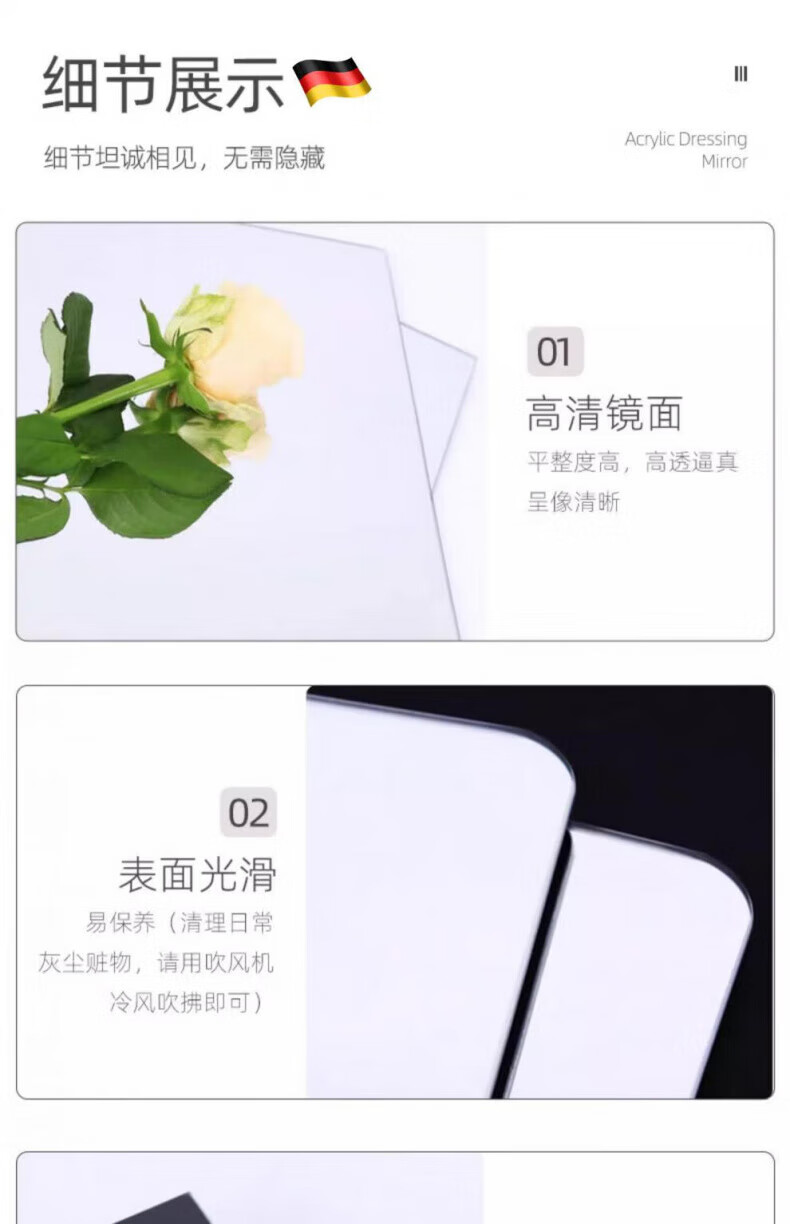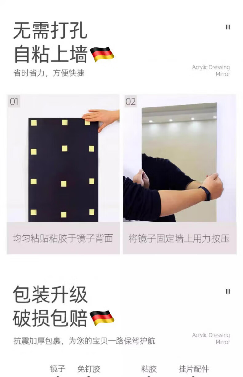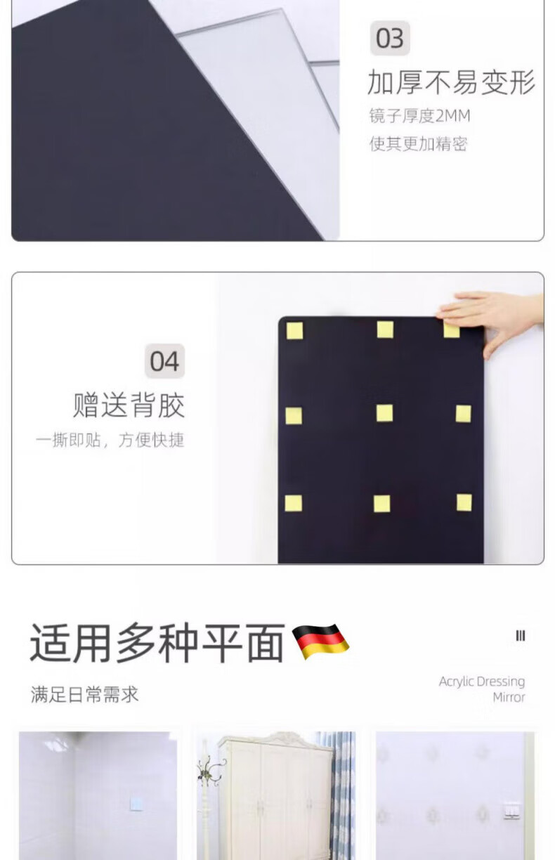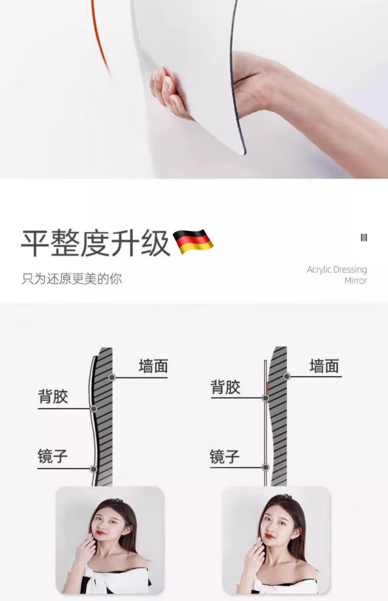 DEATKN德国衣柜贴墙自粘穿衣镜内装亚克力高清试衣镜子家用全身镜 [品牌]圆角款30*100