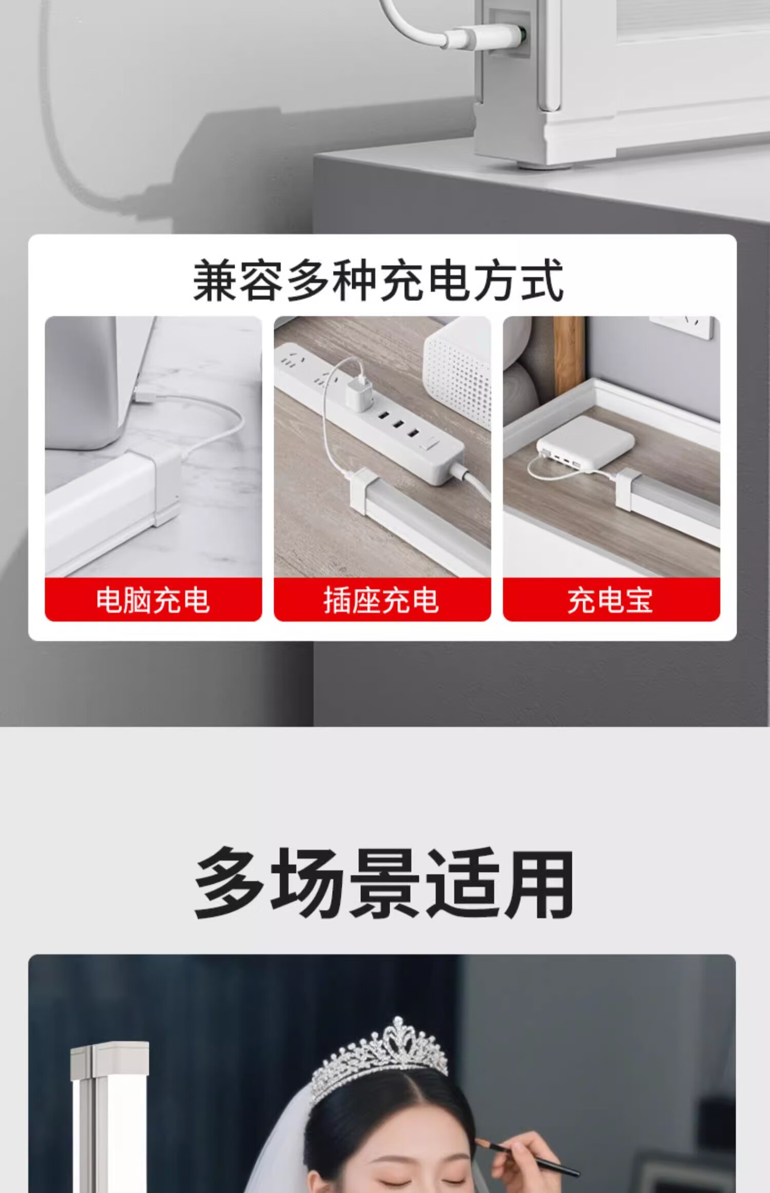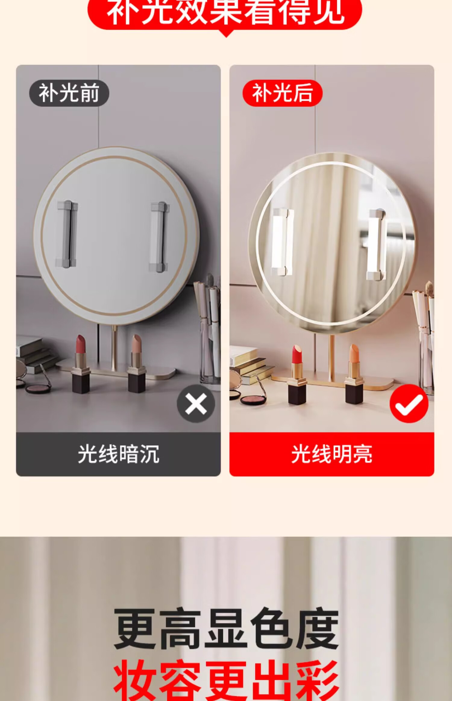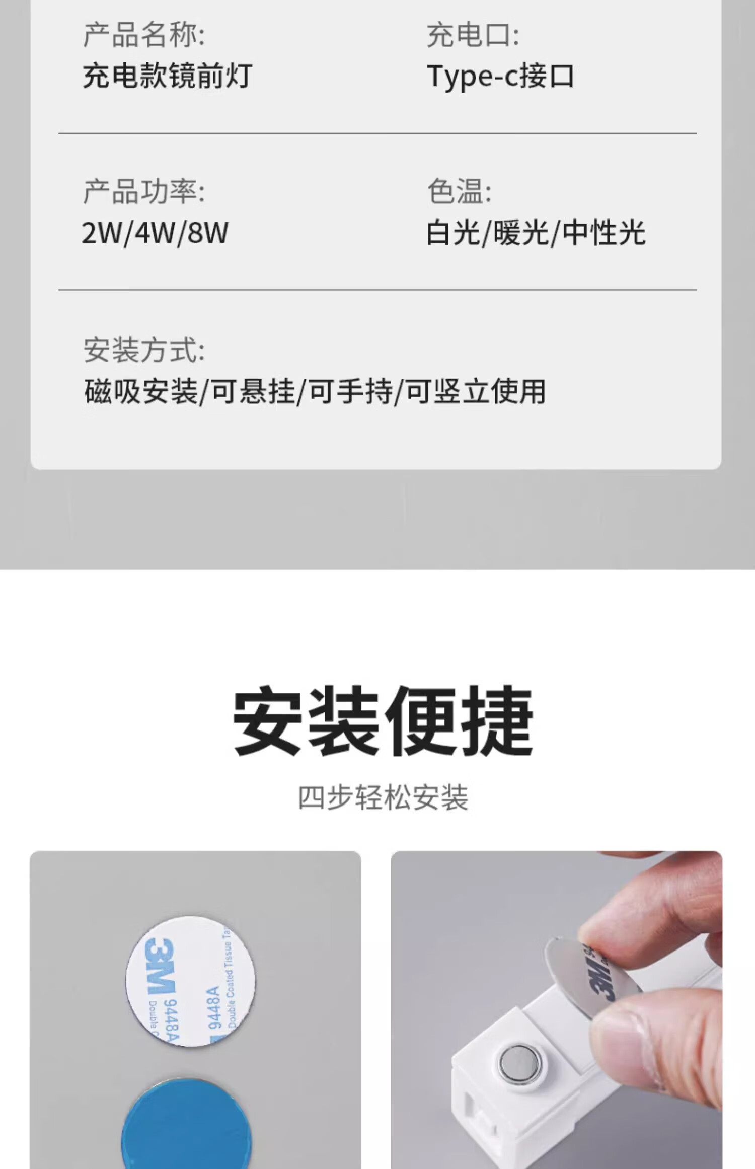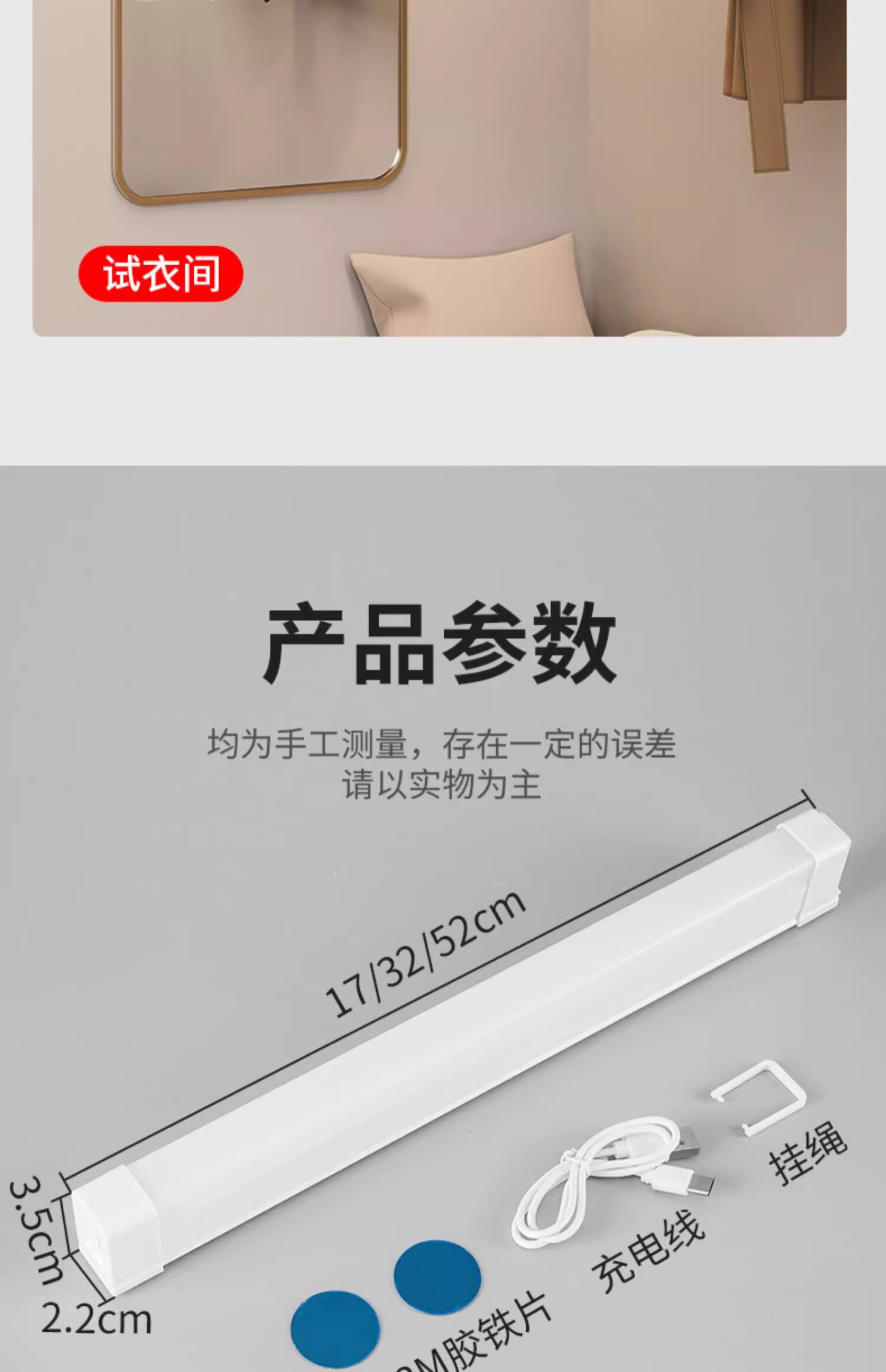 拉伯塔(LABOT)免打孔安装镜前灯充电磁吸卫生间卫浴柜洗脸盆镜子补光灯化妆照明 8W【磁吸充电款】6000K白光-长52cm