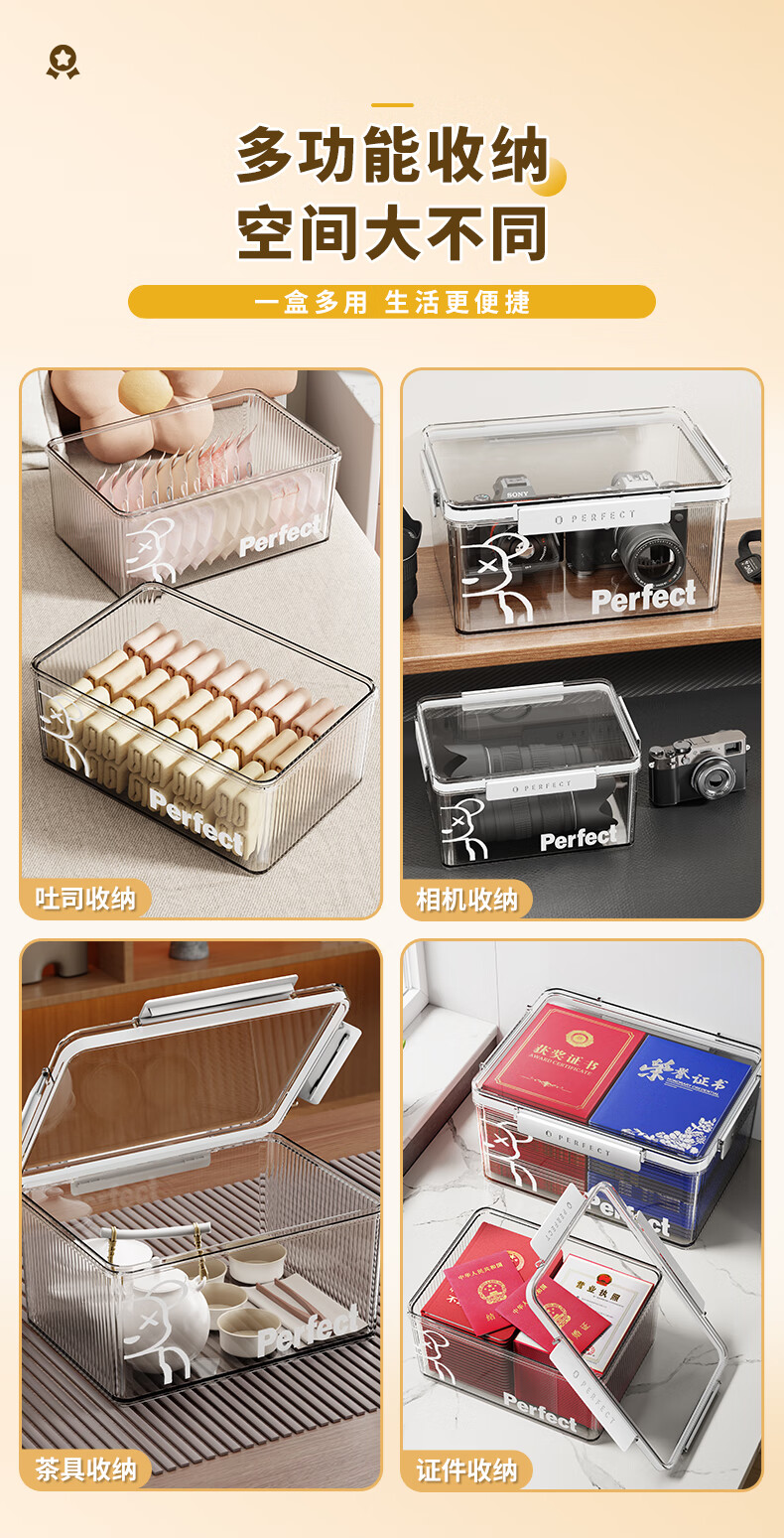 懒人空间【加厚品质】轻奢亚克力收纳柜加厚客厅厨房储物柜卧室衣物整理柜 50CM四层-全透黑色系