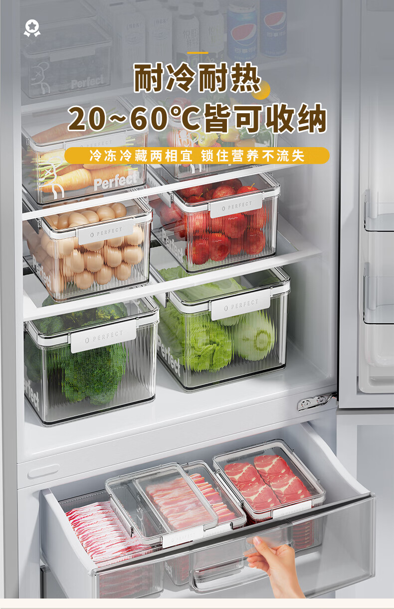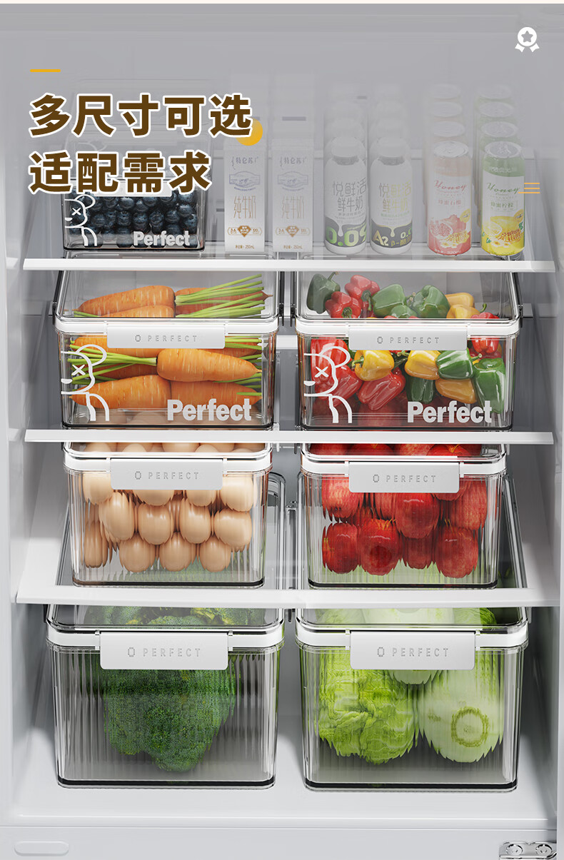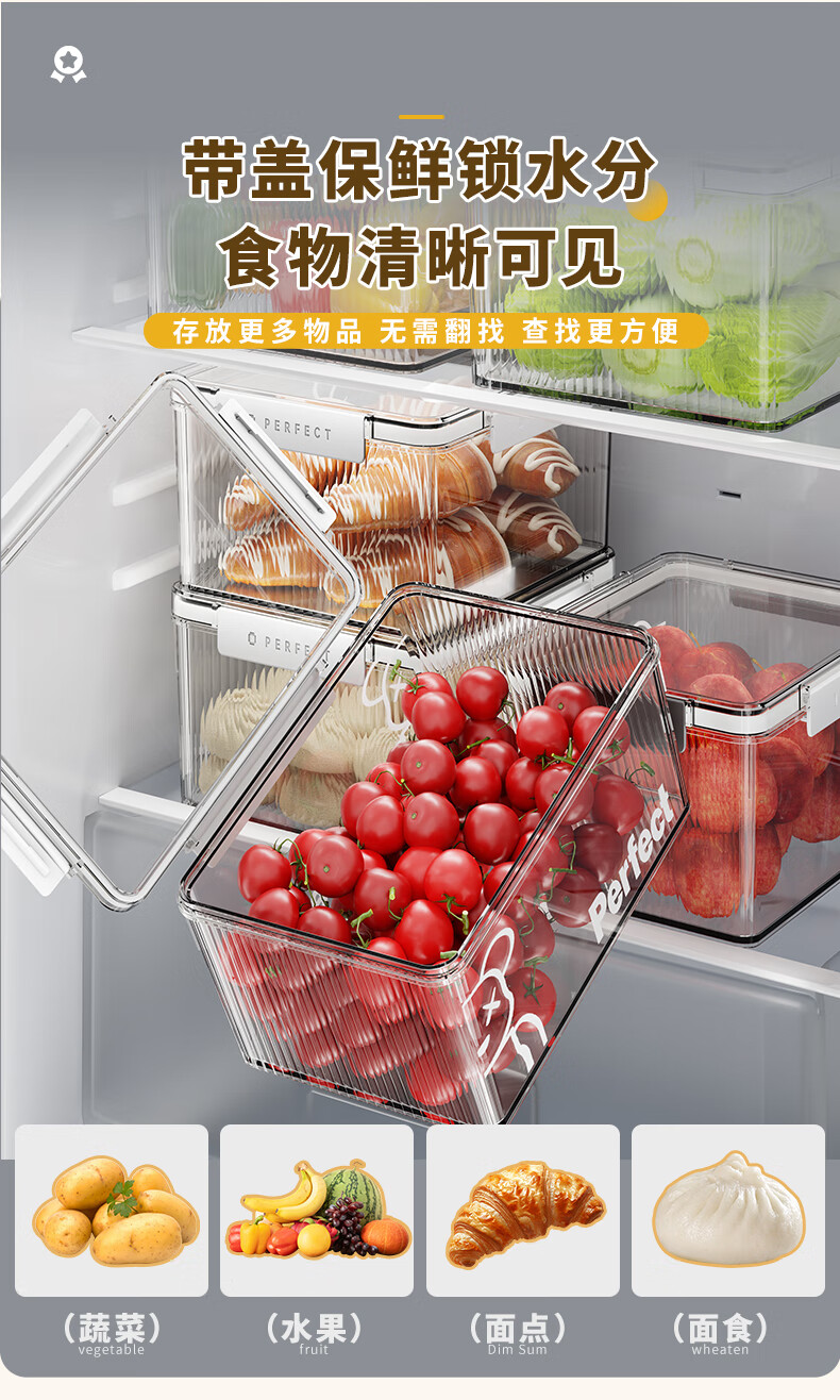 希维思(SIVASS)冰箱收纳盒食品级专用透明保鲜盒带盖密封厨房收纳筐抽屉式储物盒 珍珠白-中号【2000ML】加厚加高/食品级材质