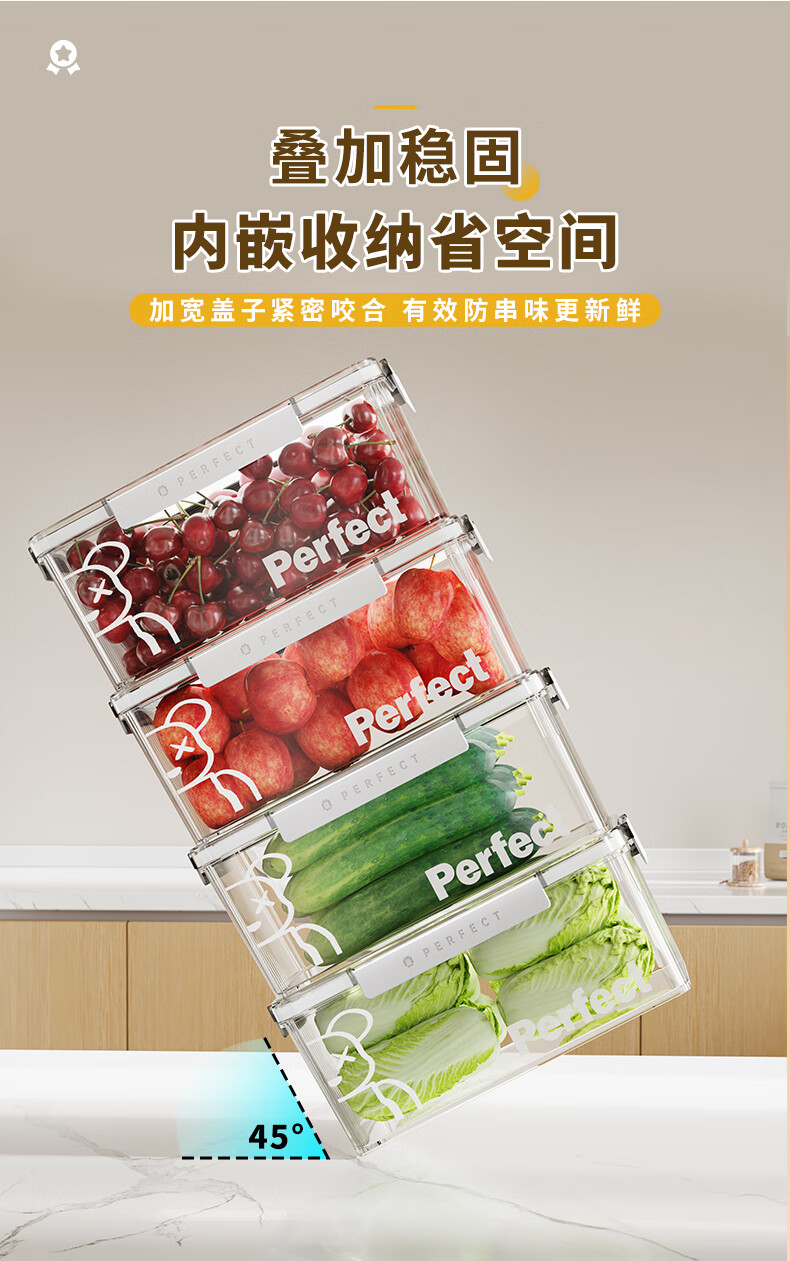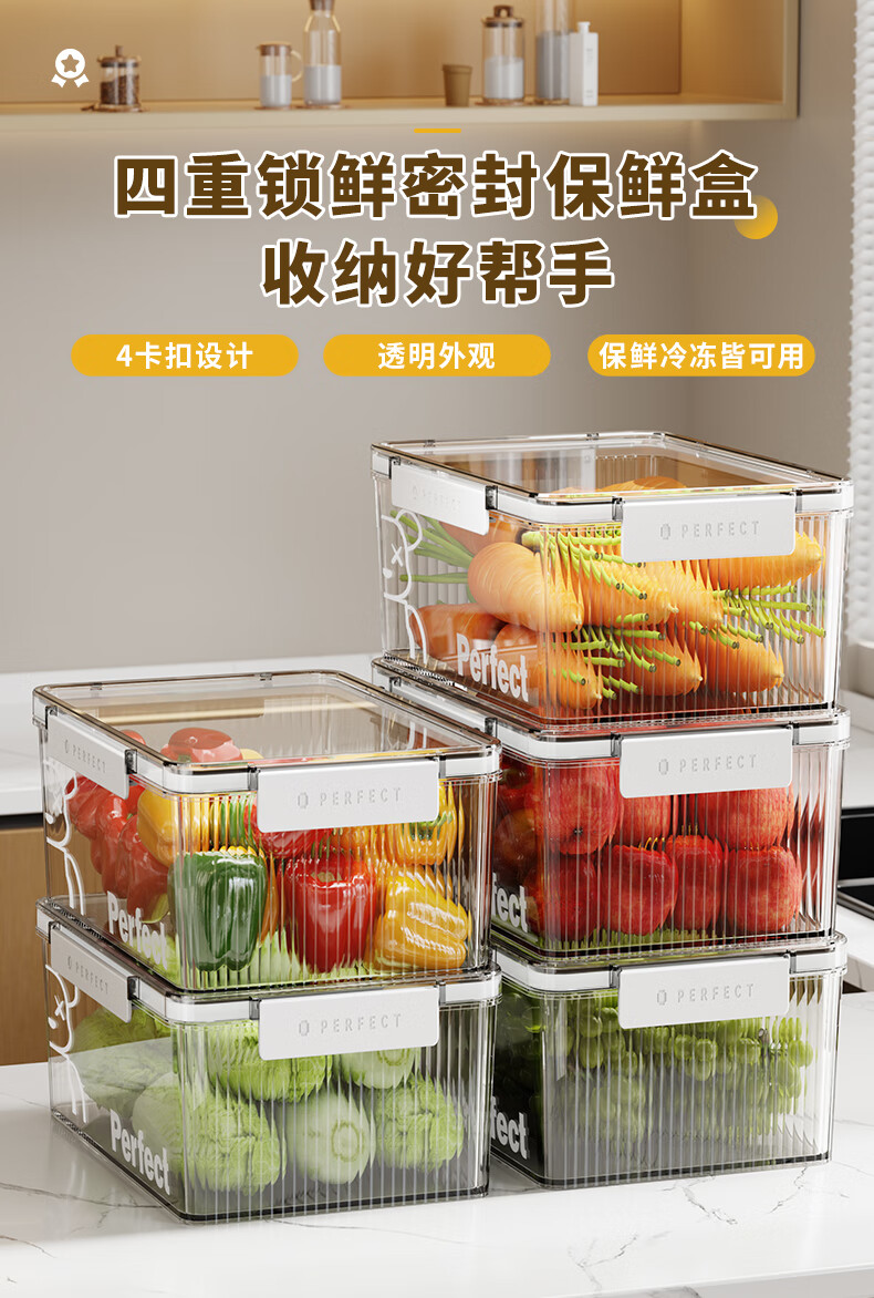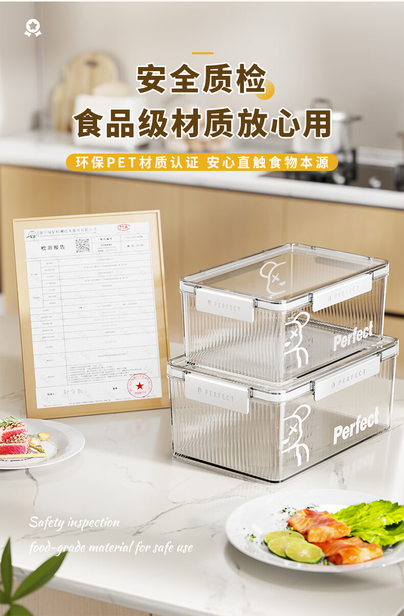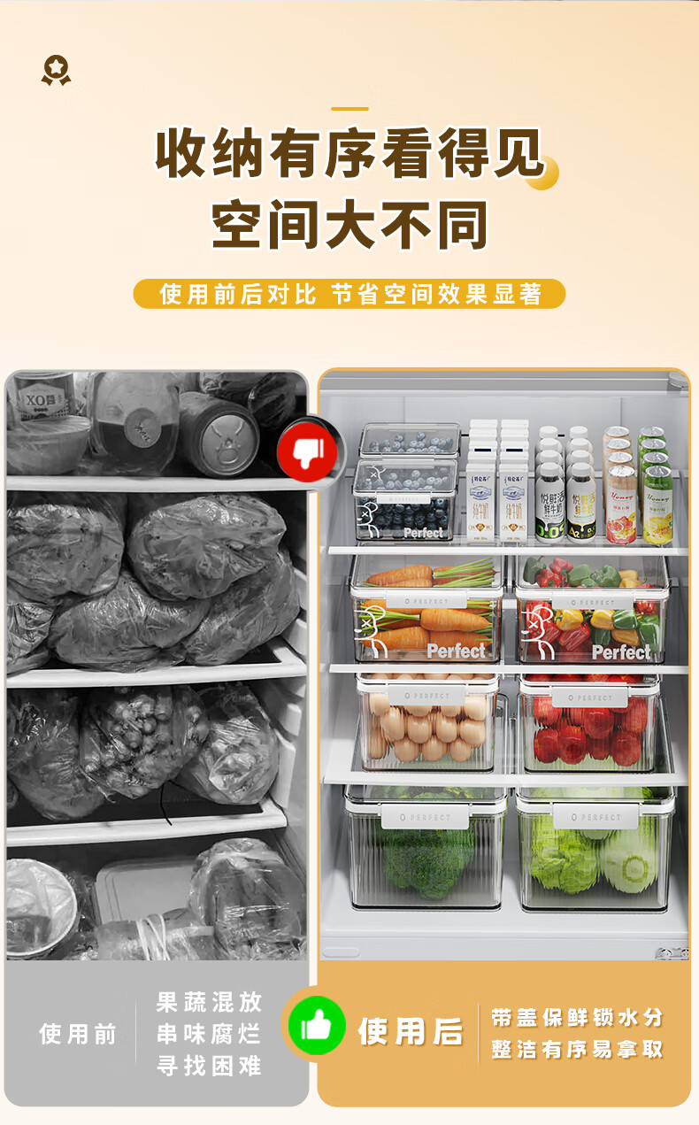 希维思(SIVASS)冰箱收纳盒食品级专用透明保鲜盒带盖密封厨房收纳筐抽屉式储物盒 珍珠白-中号【2000ML】加厚加高/食品级材质