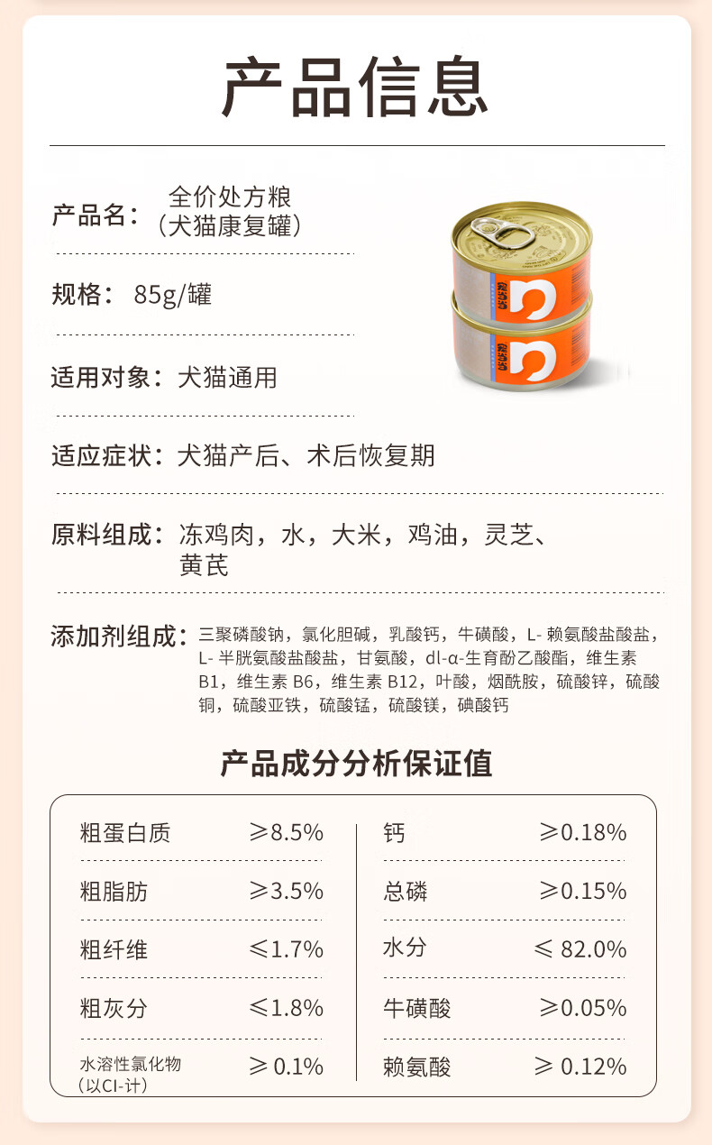 宠当当犬猫康复处方罐康复护理产后术后绝育营养补充主食湿粮罐85g
