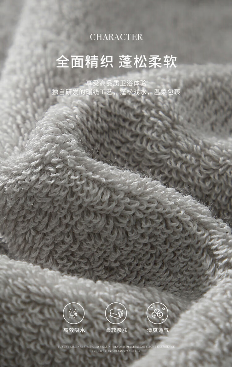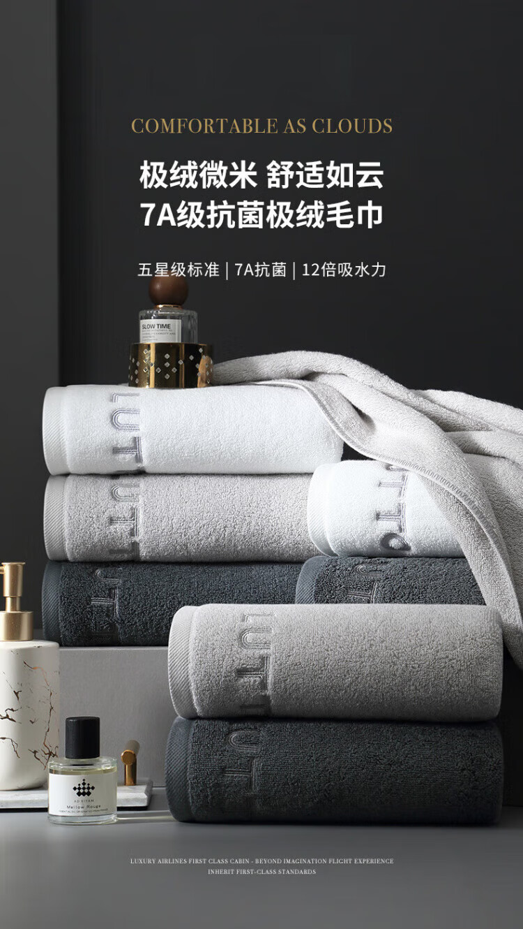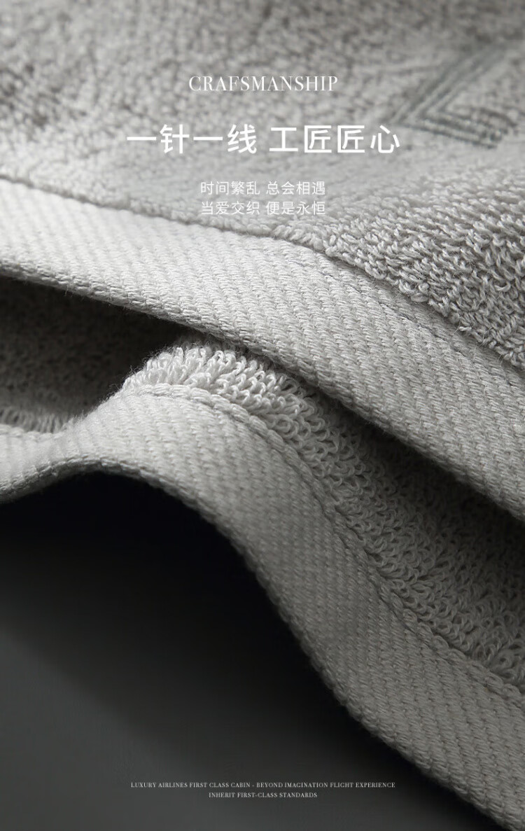 WCZ德国7A毛巾纯棉全棉洗脸洗澡家用成人男女不掉毛吸水加厚面巾 毛巾2件装:浅灰色【升级】 2条 74cm*34cm
