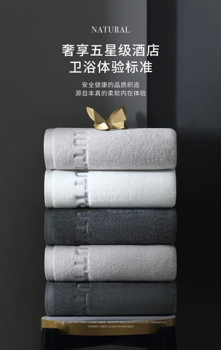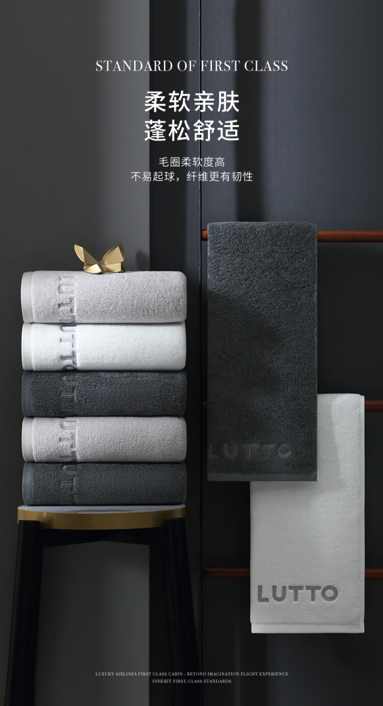 DEATKN德国高级五星酒店毛巾洗脸家用女男大人洗澡擦头发手纯棉吸水速干 毛巾2条装:米白色+深灰色 1条