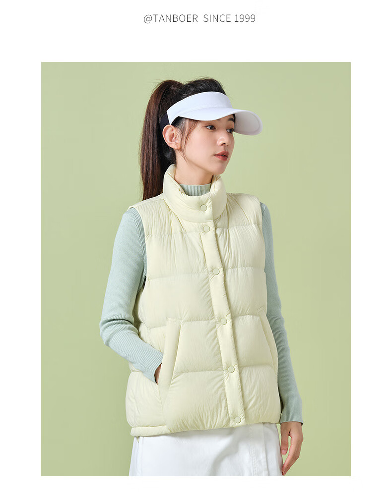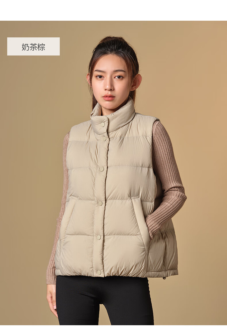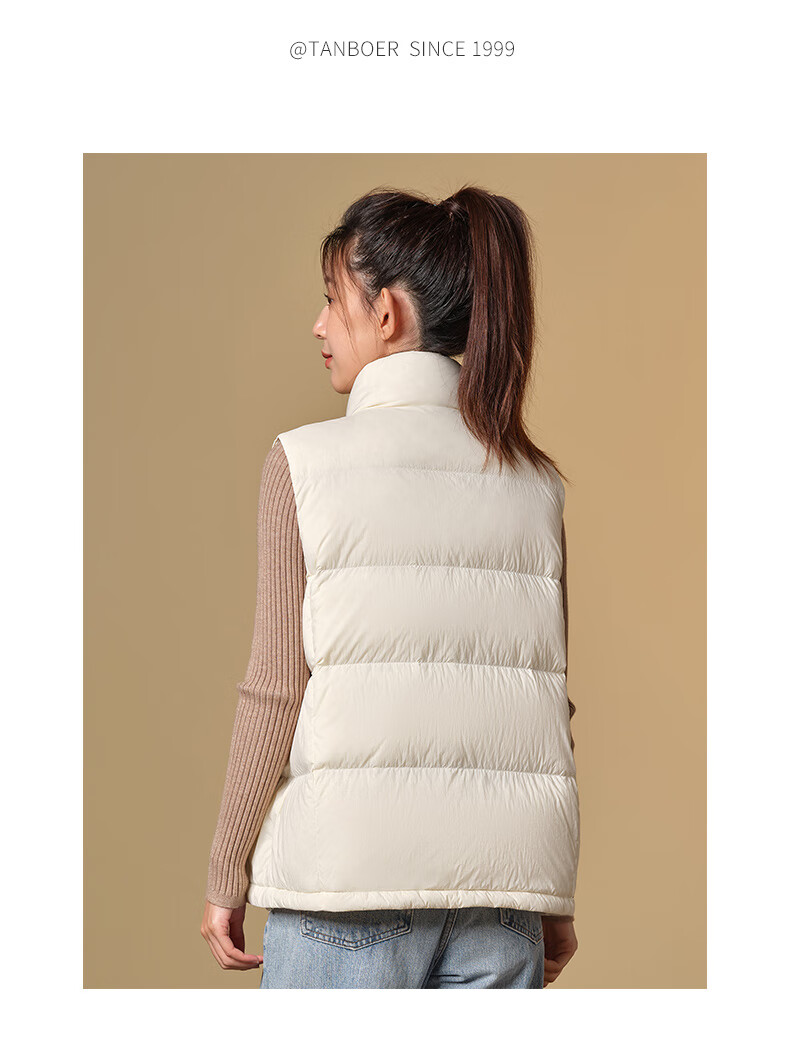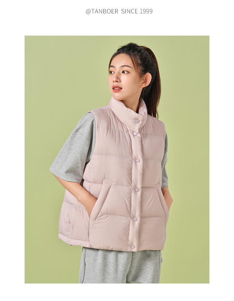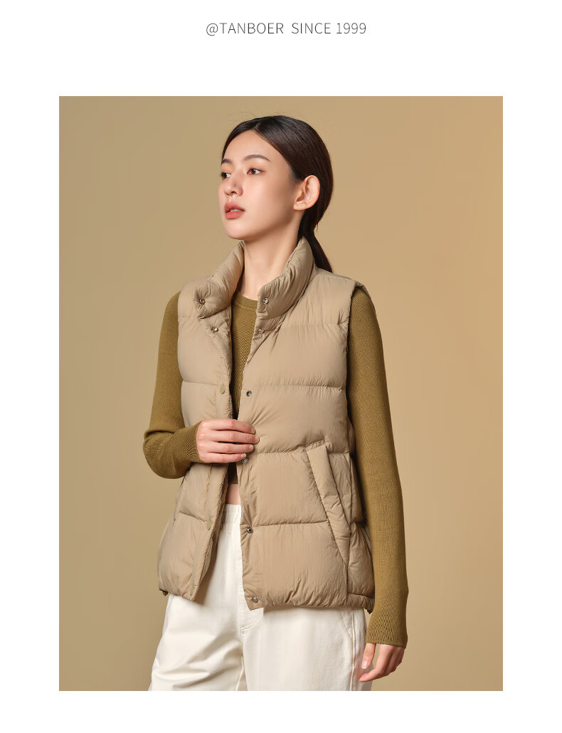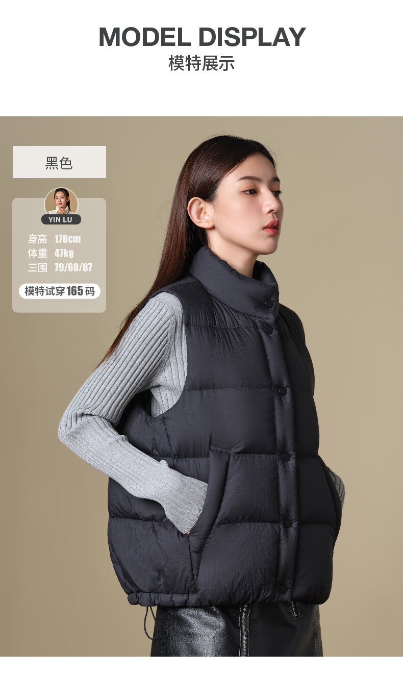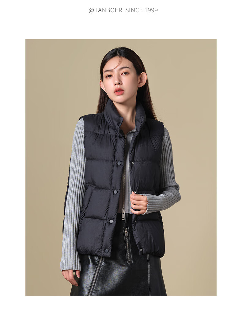 坦博尔羽绒服马甲女立领宽松短款外搭羽绒背心外套TD336006 黑色 175
