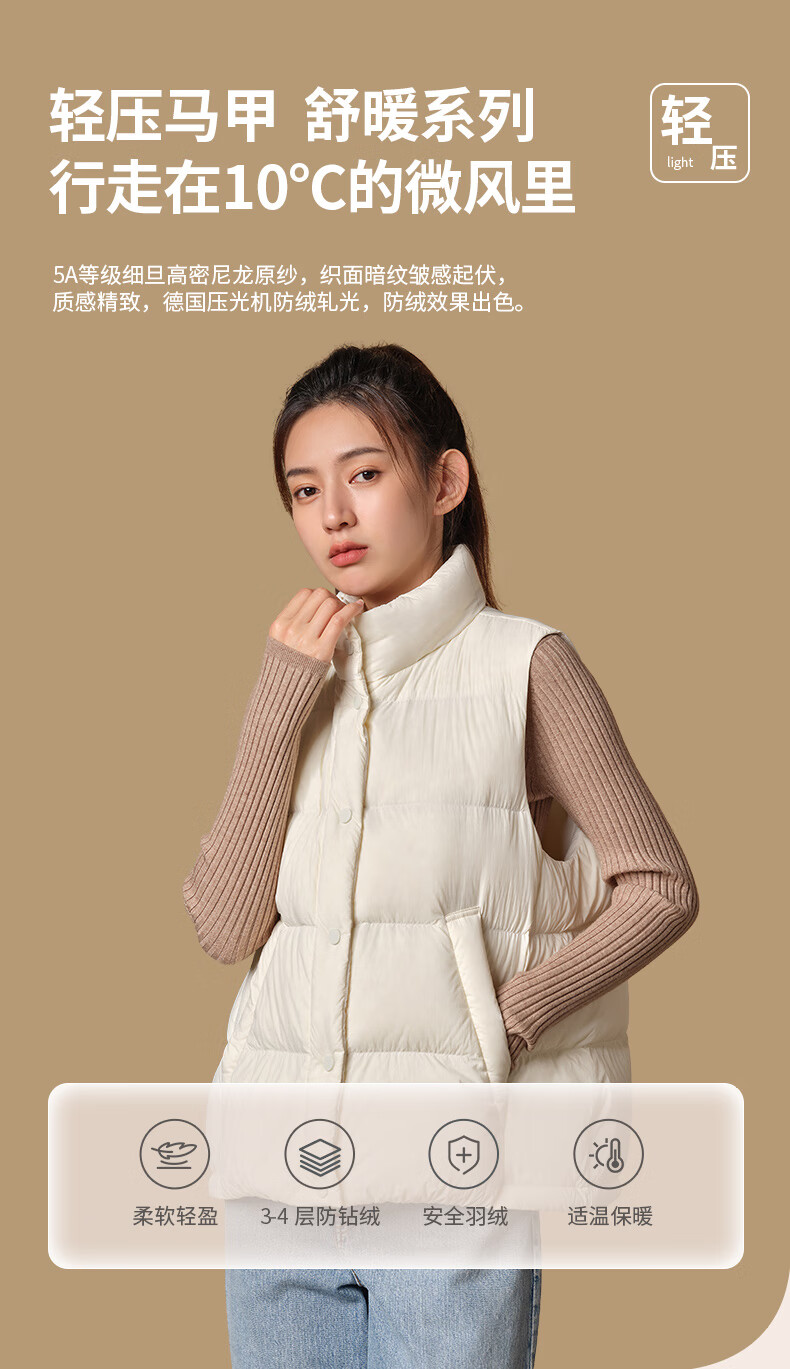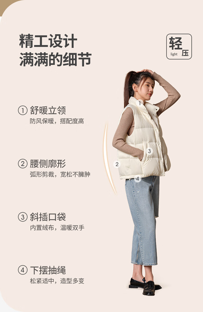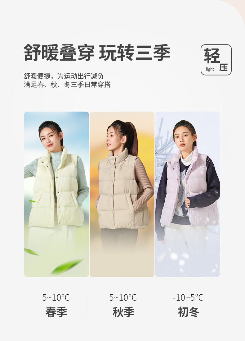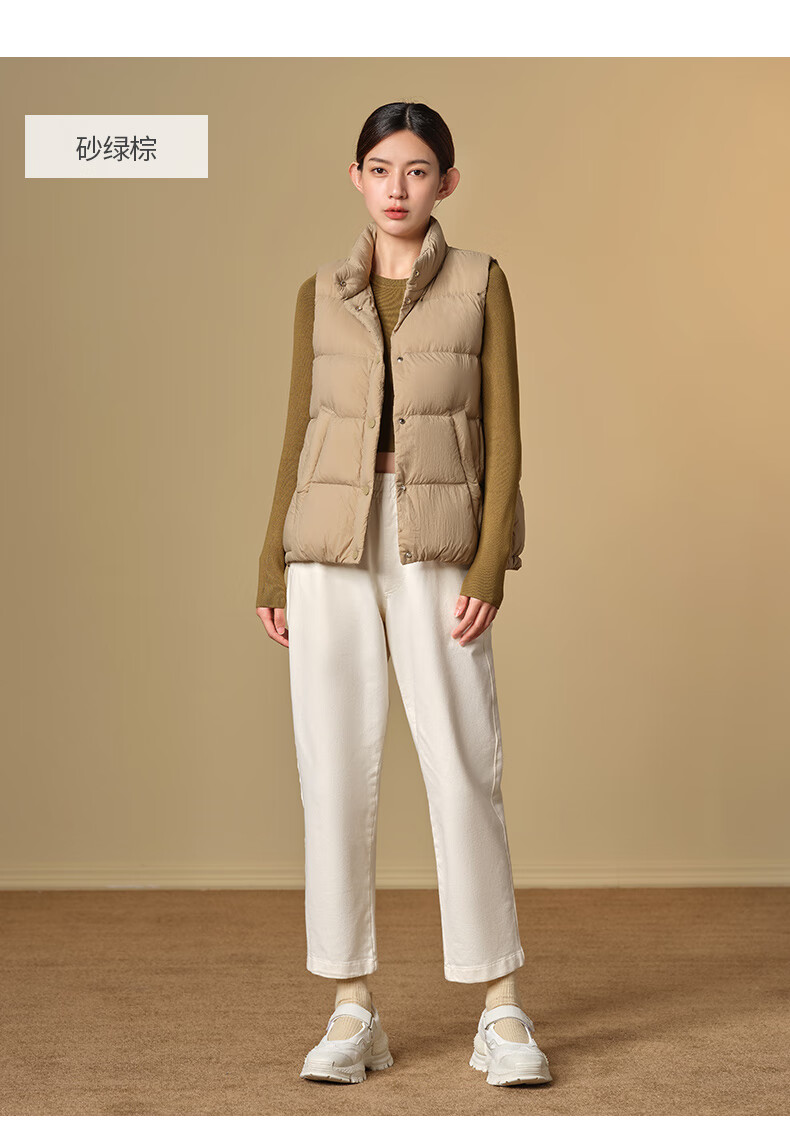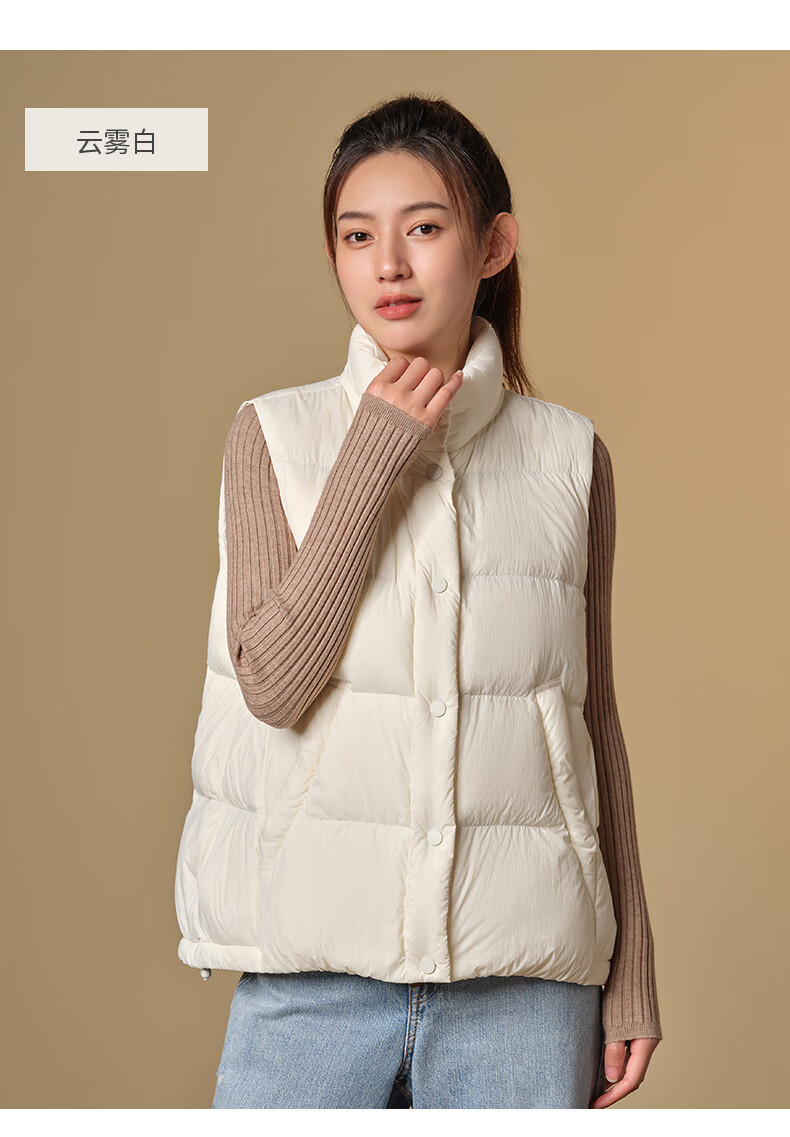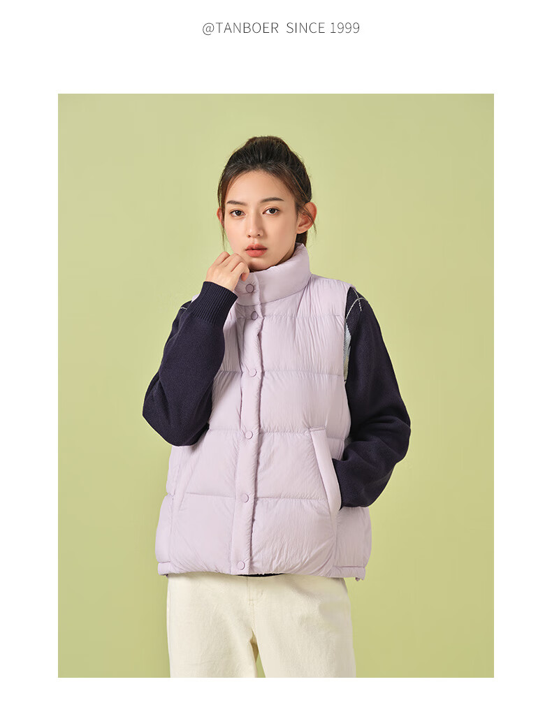 坦博尔羽绒服马甲女立领宽松短款外搭羽绒背心外套TD336006 黑色 175