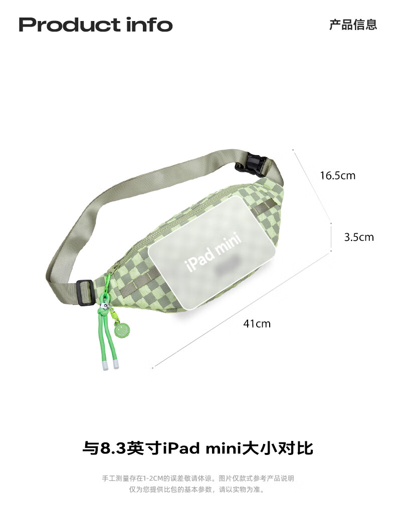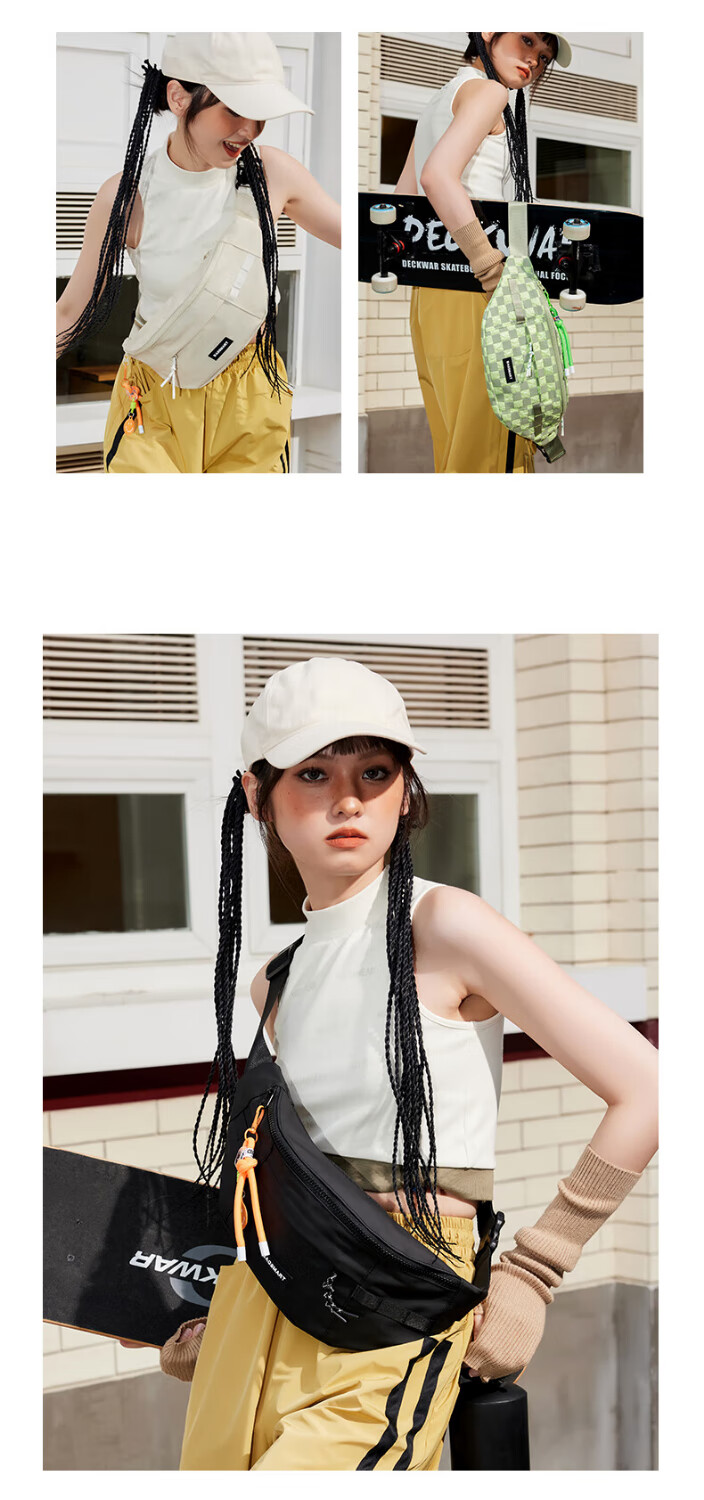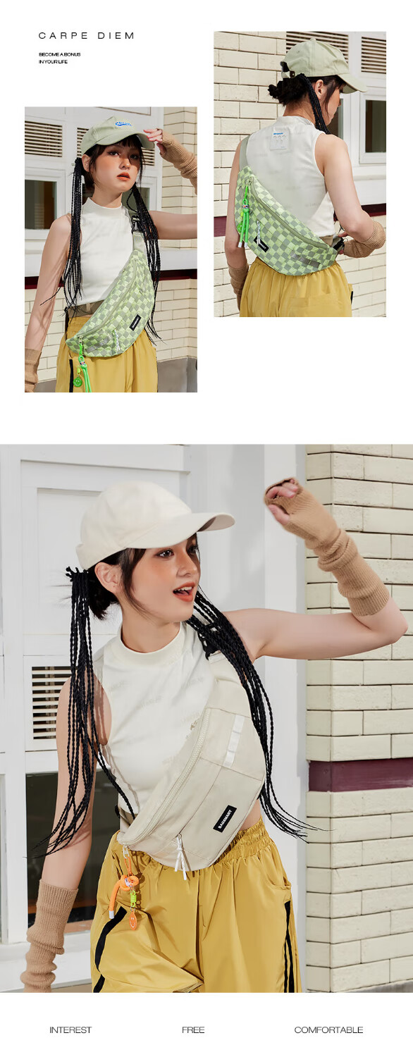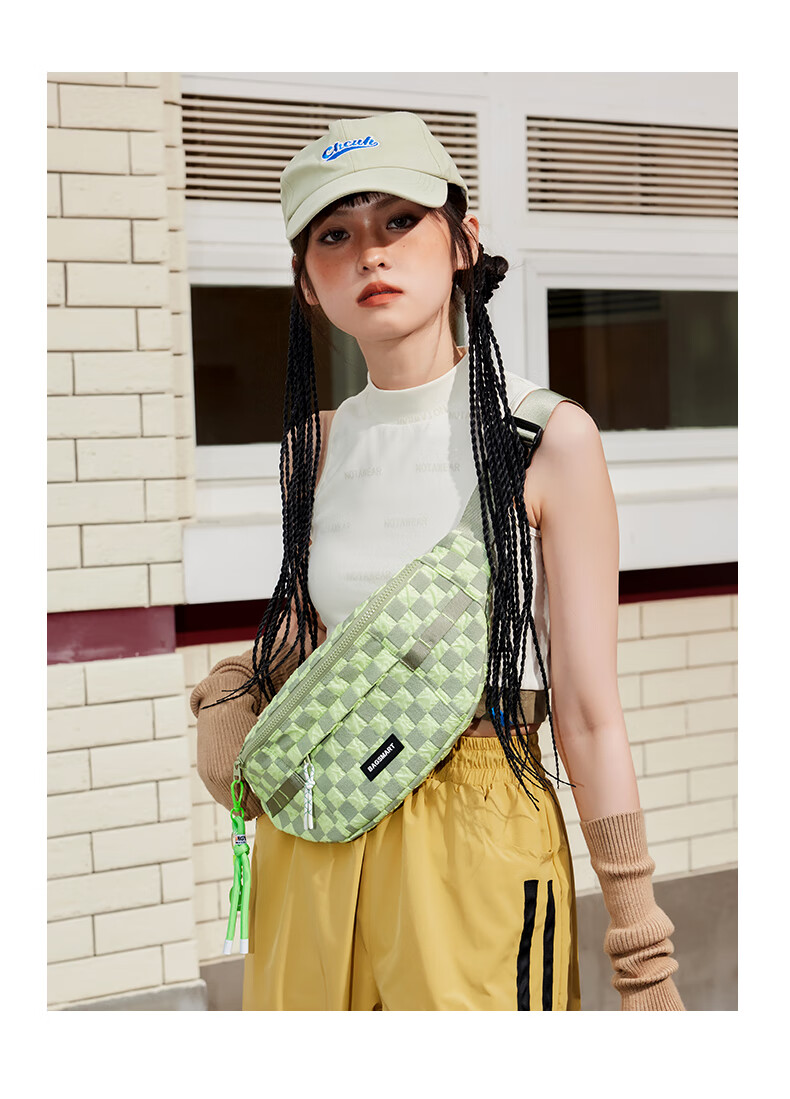 BAGSMART斜挎包男款运动胸包女背包潮牌男生单肩包休闲大容量男包送女朋友 棋盘格绿