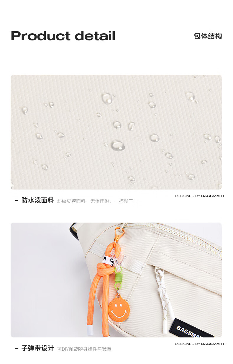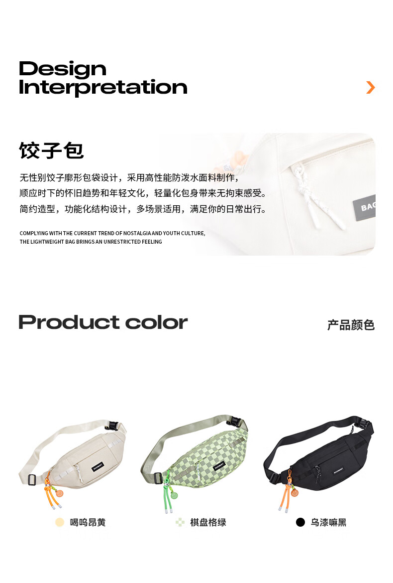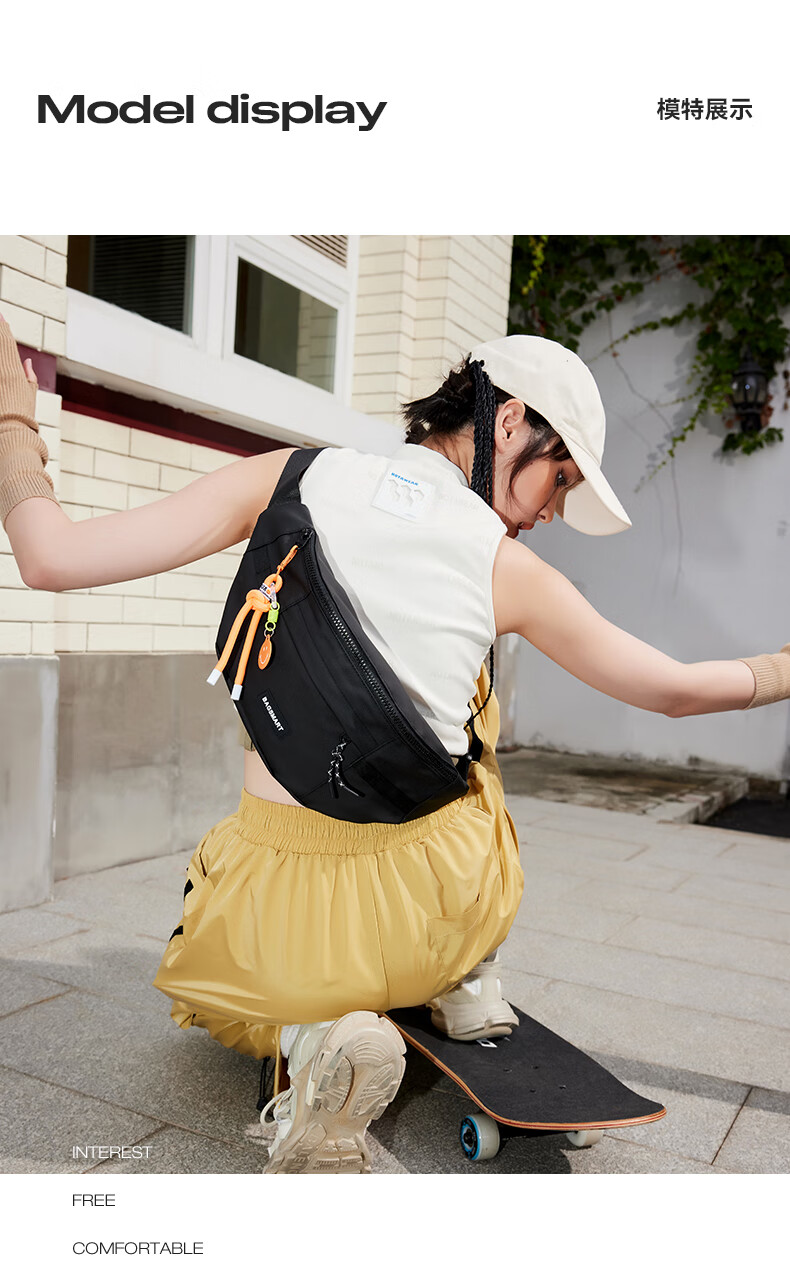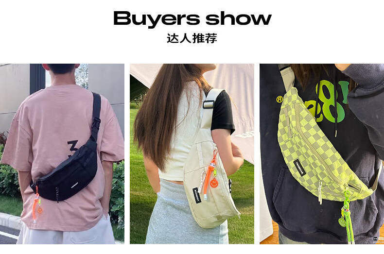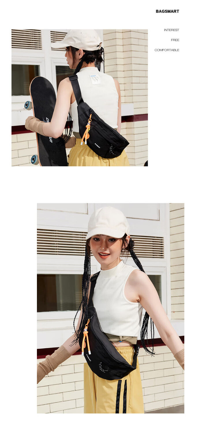 BAGSMART斜挎包男款运动胸包女背包潮牌男生单肩包休闲大容量男包送女朋友 棋盘格绿