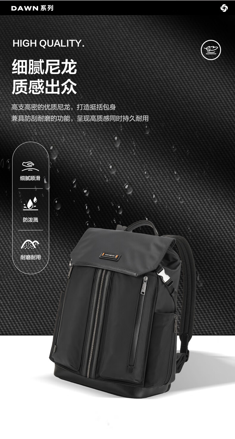 新秀丽(Samsonite)男士轻奢双肩包大容量电脑包时尚复古轻便旅行背包男士礼物NS1