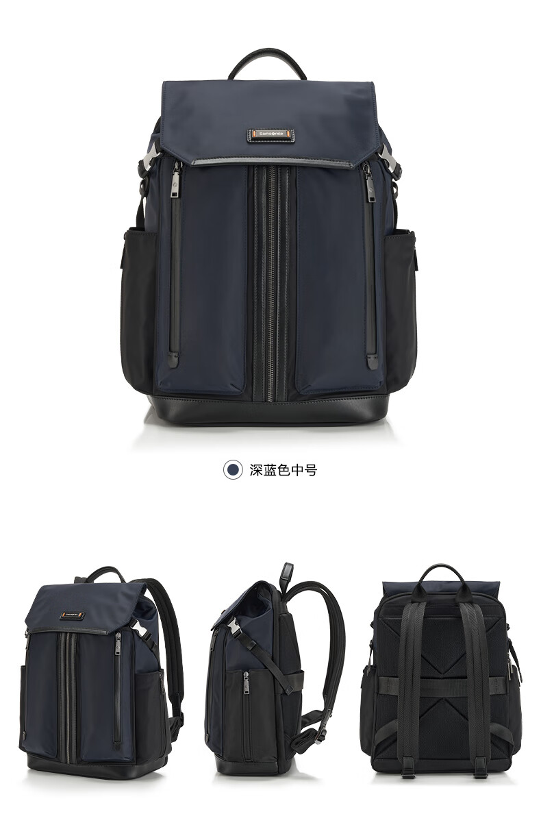 新秀丽(Samsonite)大容量双肩包男士商务通勤背包15.6英寸电脑包NY1 深蓝色