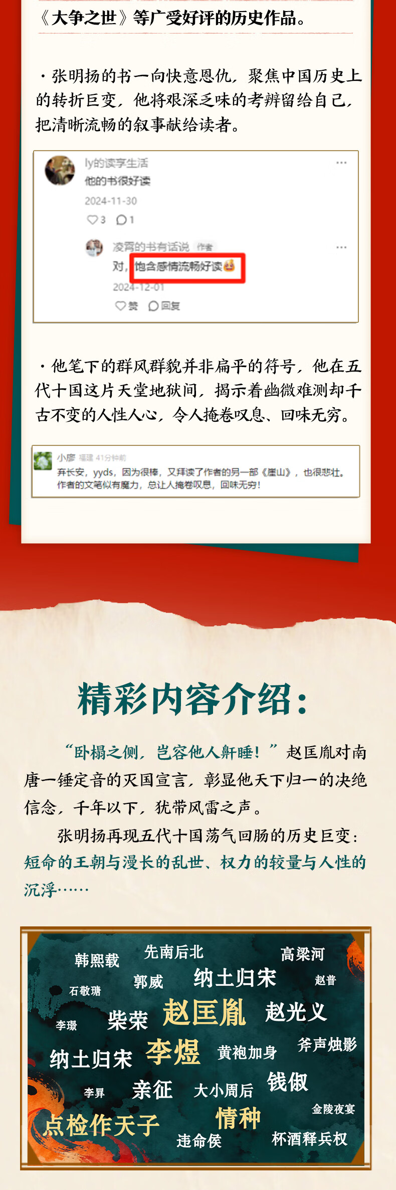 卧榻之侧 赵匡胤 李煜和他们的时代 弃长安作者张明扬快意恩仇新作 五代乱世人人都想一统天下 却只有赵匡胤一个赢家