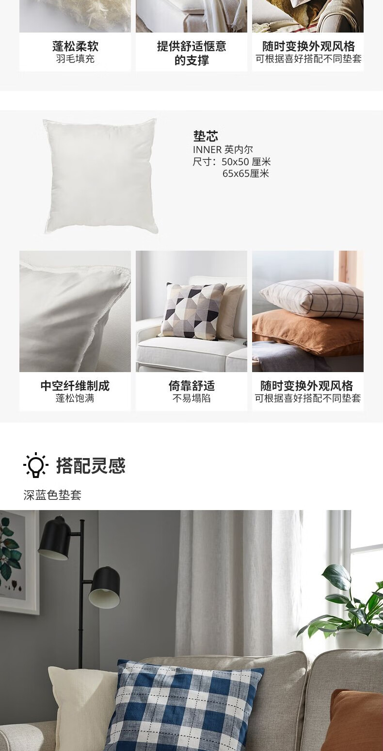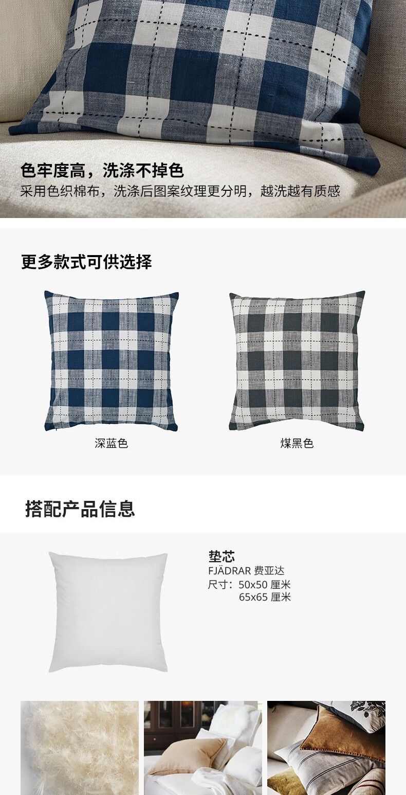 宜家(IKEA)【新品】SVAMPFLY斯温夫莱垫套抱枕沙发客厅卧室靠垫 【新品】深蓝色垫套+羽毛垫芯