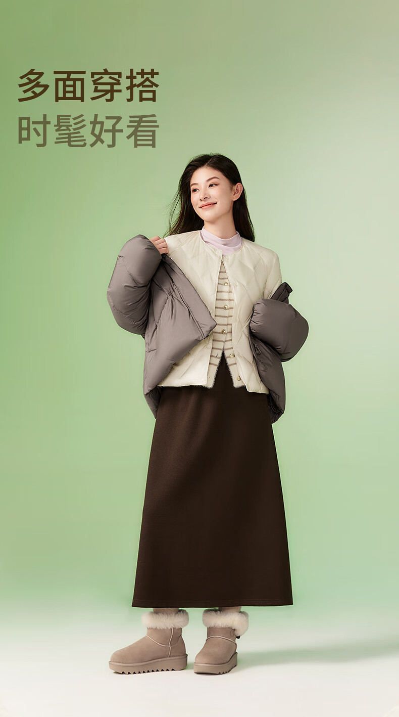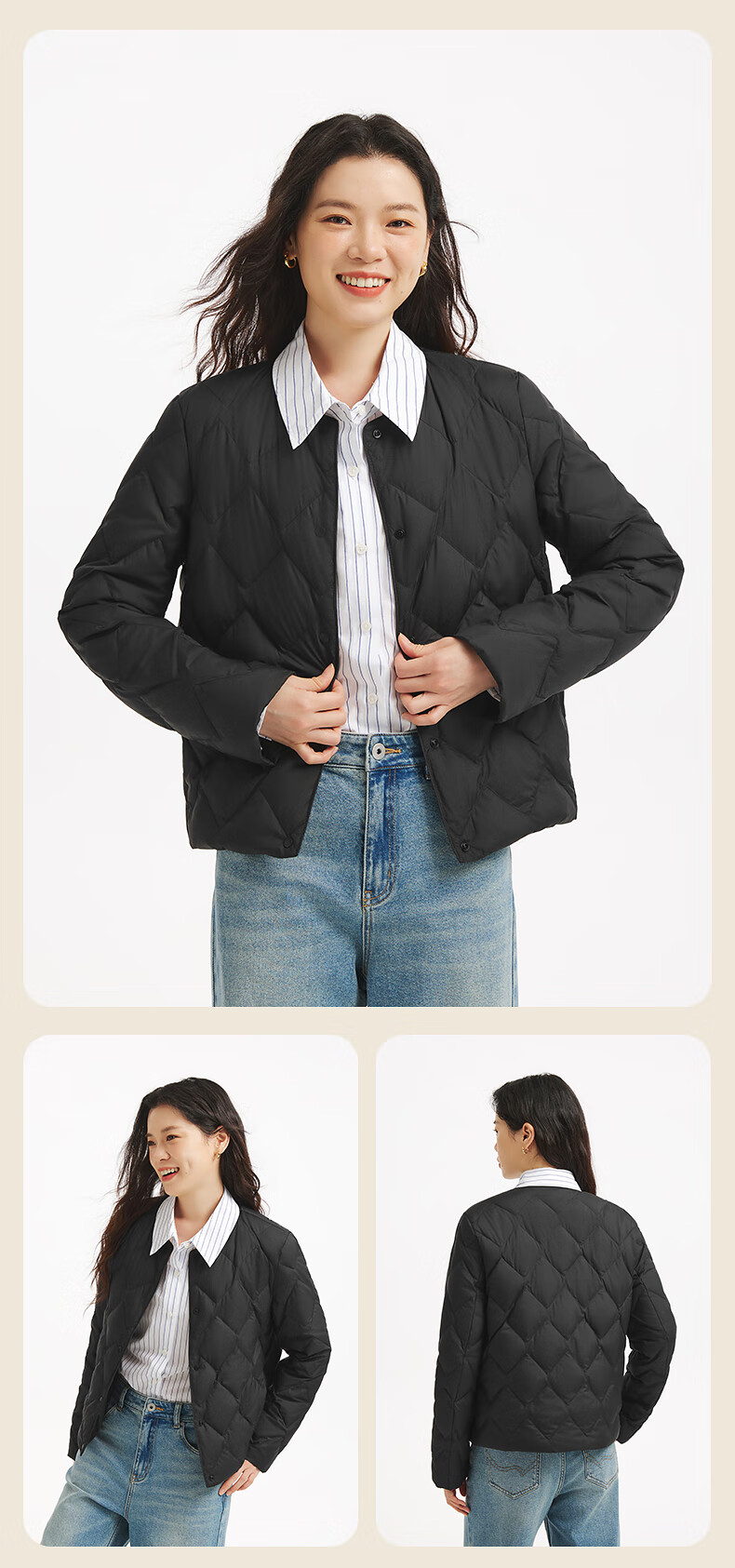 热风(Hotwind)女士轻薄羽绒服2025年冬季新款简约圆领叠穿短款羽绒内胆内搭外套 01黑色 M