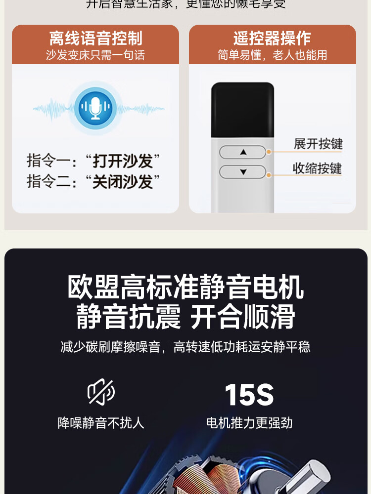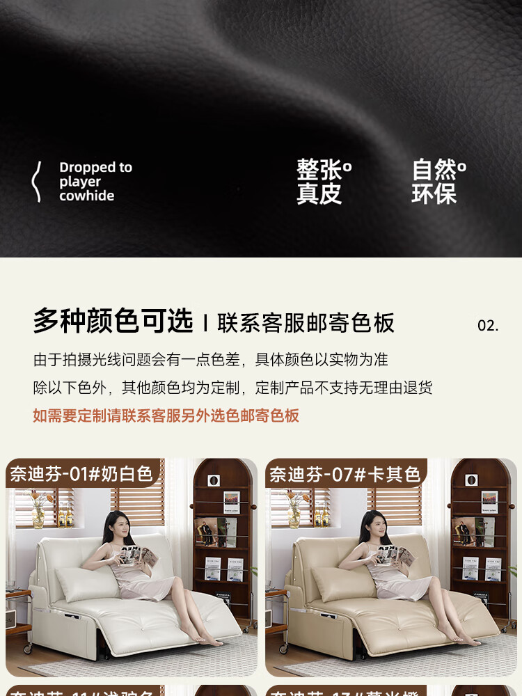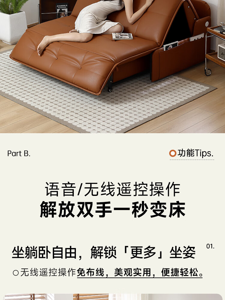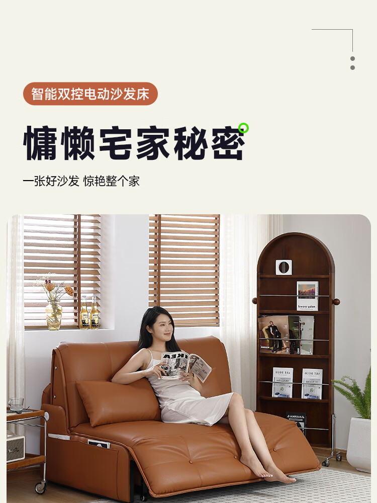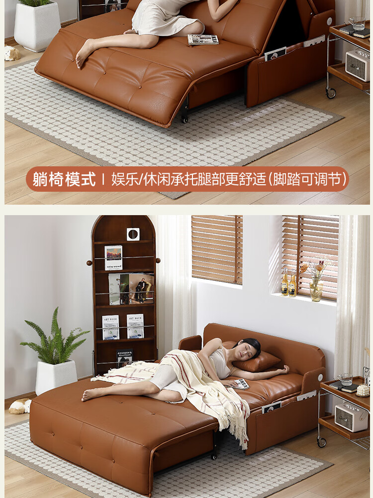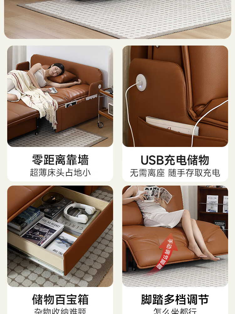 美朵朵可折叠智能电动沙发床一体两用小户型客厅多功能语音遥控真皮沙发 外宽:0.85m(加厚S+级油蜡皮) 45D无粉海绵款(无储物)+语音遥控